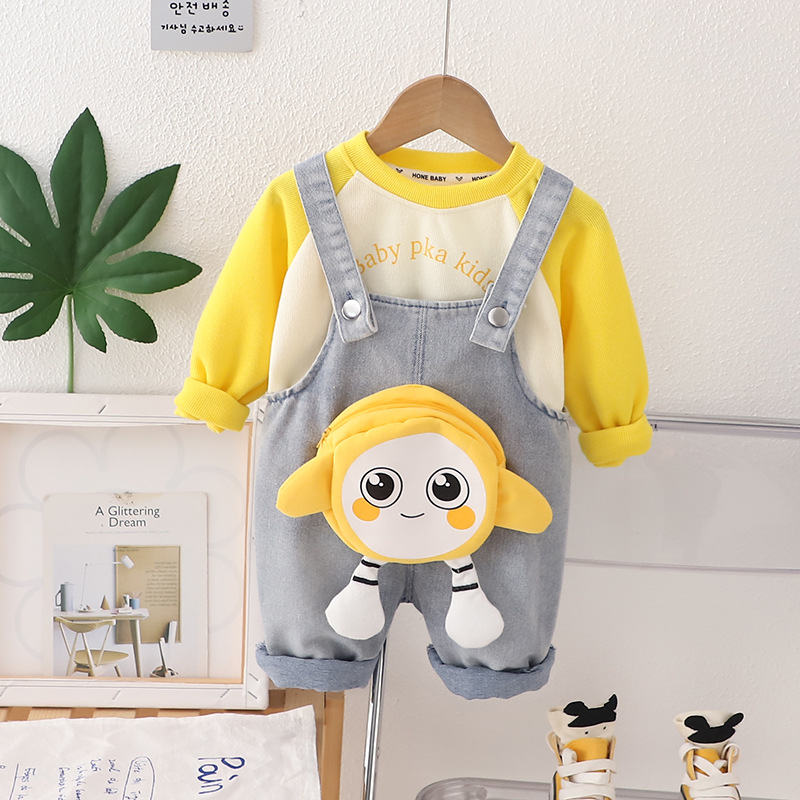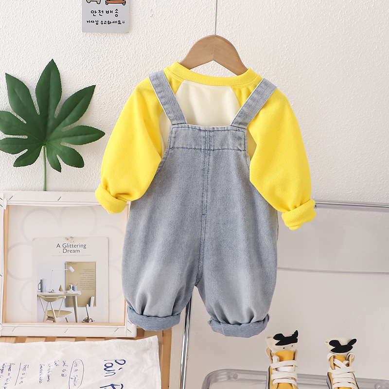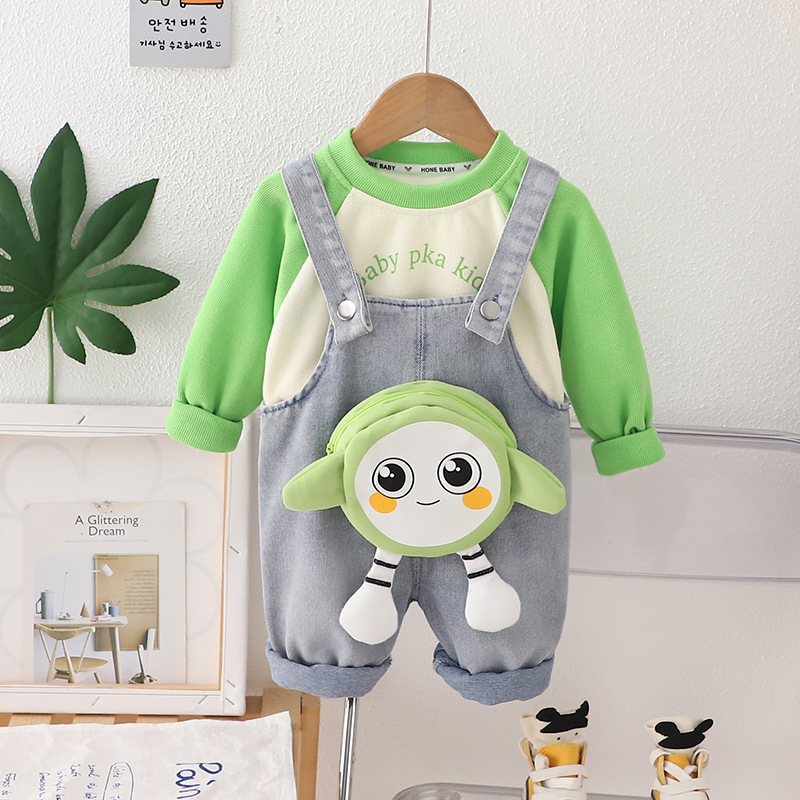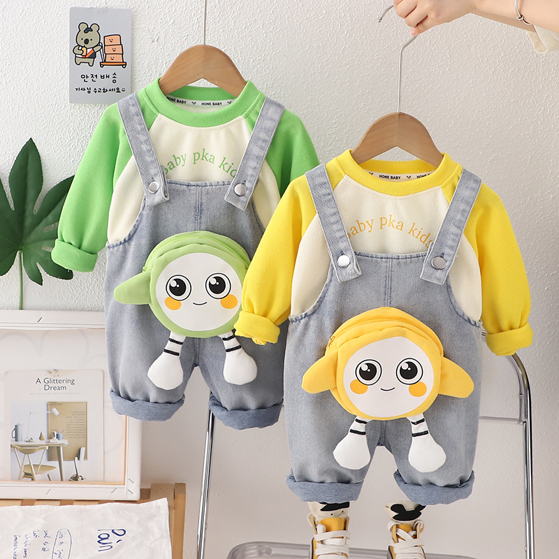 아기 소년 가을 의류 세트, 새로운 스타일의 소년 봄 가을 의류, 귀여운 만화 작업복, 캐주얼 투피스 세트스토어 가기