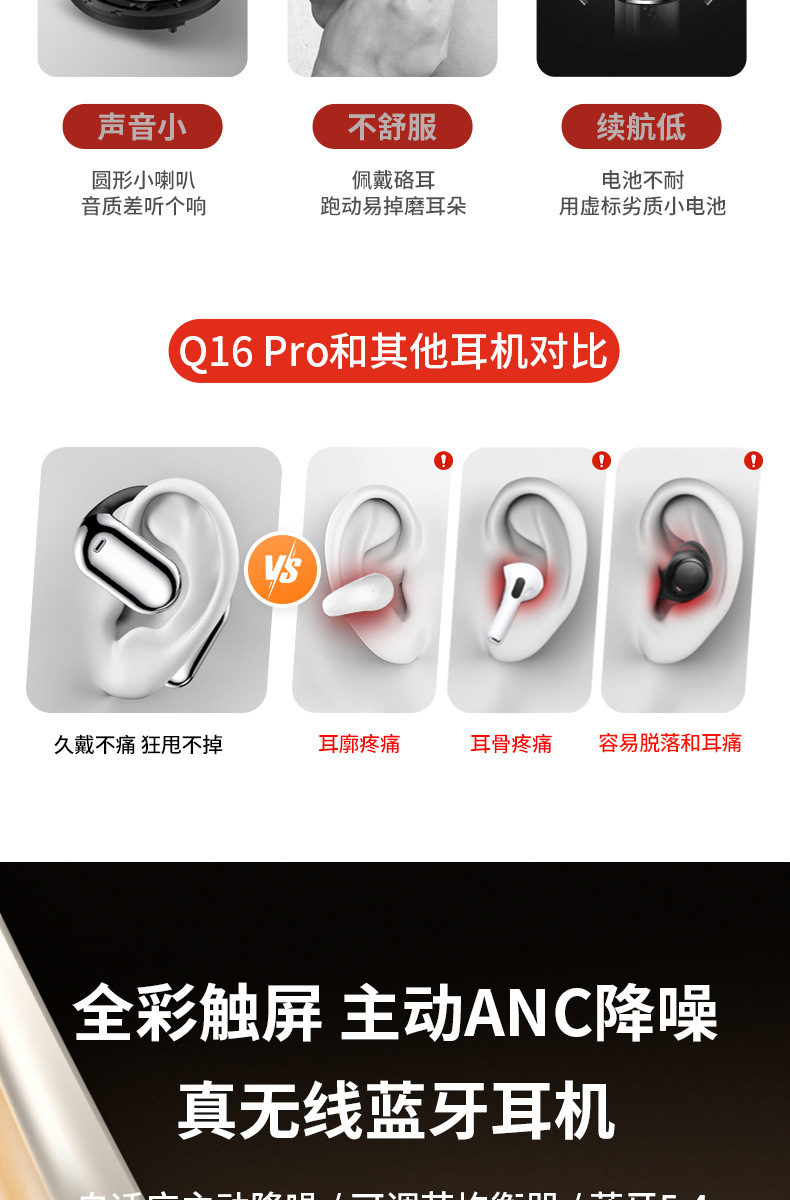 Douyin 새로운 Q16Pro 지능형 매직 터치 스크린 오픈 블루투스 헤드셋 무선 귀 스포츠 헤드셋