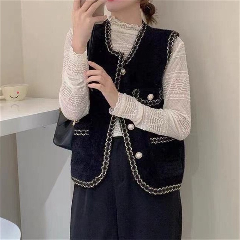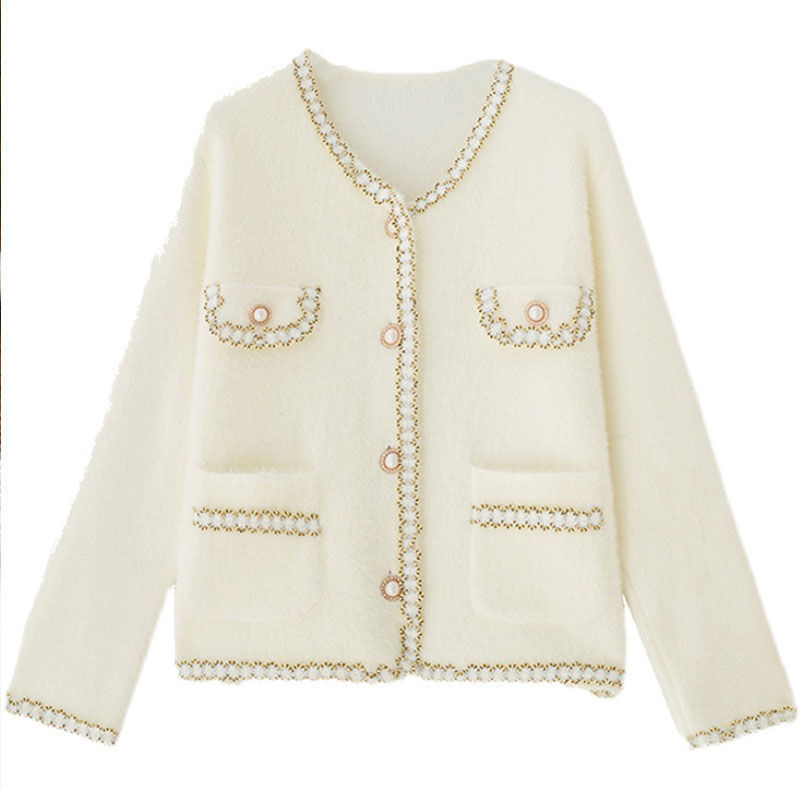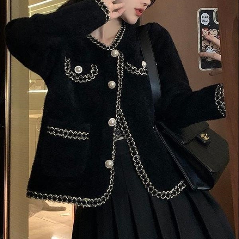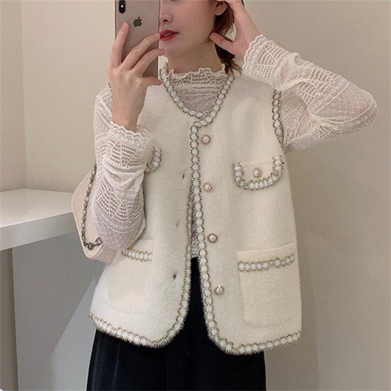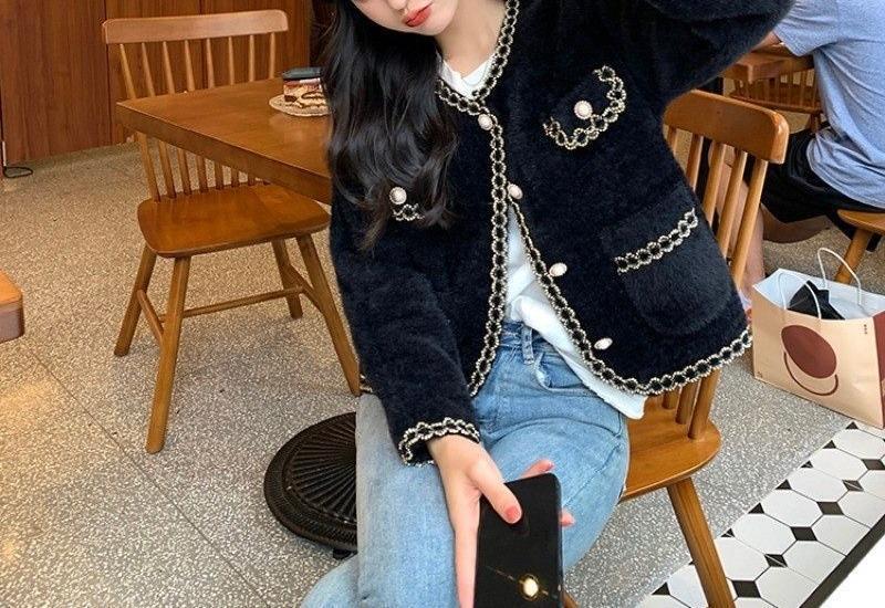 프랑스 스타일 샤넬 스타일 코트 새로운 스타일 연예인 우아한 모방 밍크 벨벳 니트 카디건 여성 가을 겨울 하이 엔드 패션 웨스턴 스타일