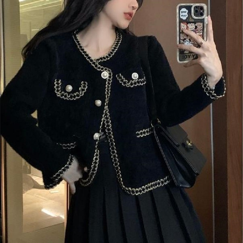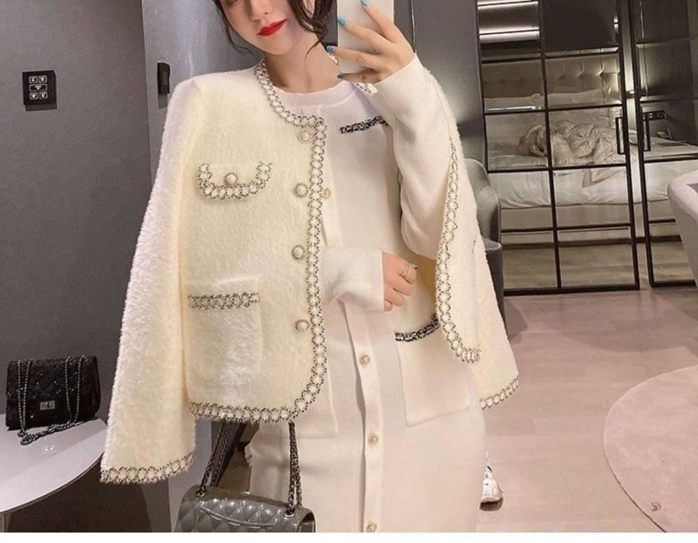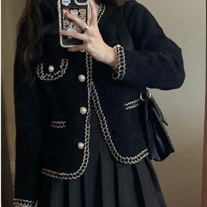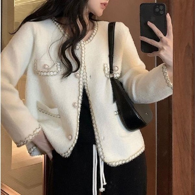 프랑스 스타일 샤넬 스타일 코트 새로운 스타일 연예인 우아한 모방 밍크 벨벳 니트 카디건 여성 가을 겨울 하이 엔드 패션 웨스턴 스타일스토어 가기