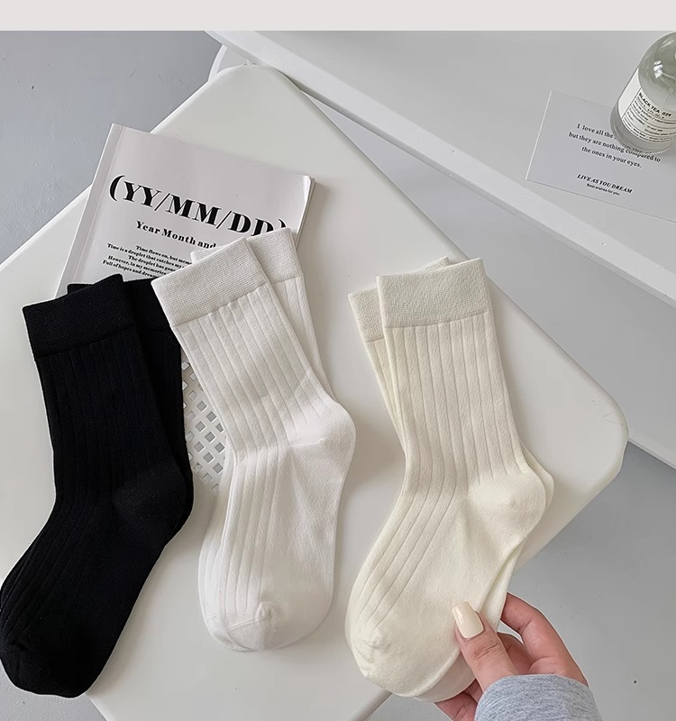 수직 스트라이프 양말 여성용 Ins 트렌디 한 올매치 하이 컬러 값 모리 스타일 양말 가을 학생 학교 필요한 포장 양말스토어 가기