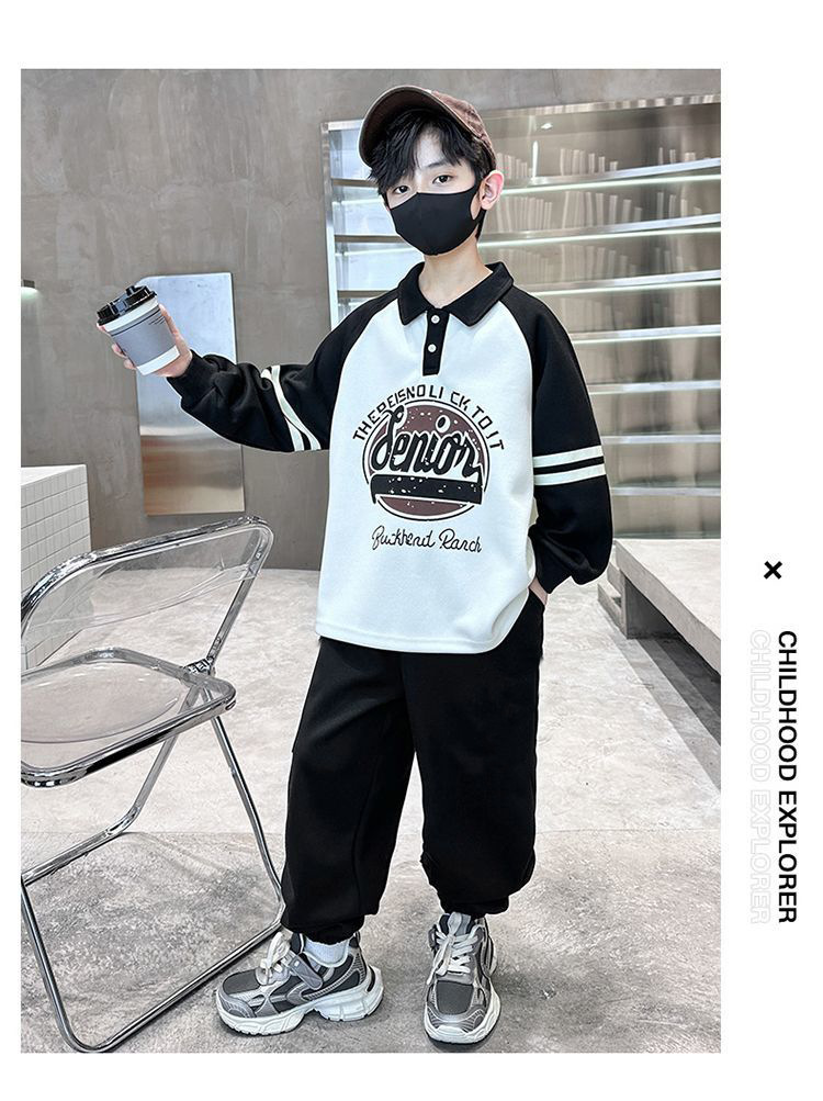 2026년 신상 큰아동용 남아 스포츠 후드티 세트, 봄옷, 남아용 봄가을 스타일, 멋지고 패셔너블하며 쿨한 디자인스토어 가기