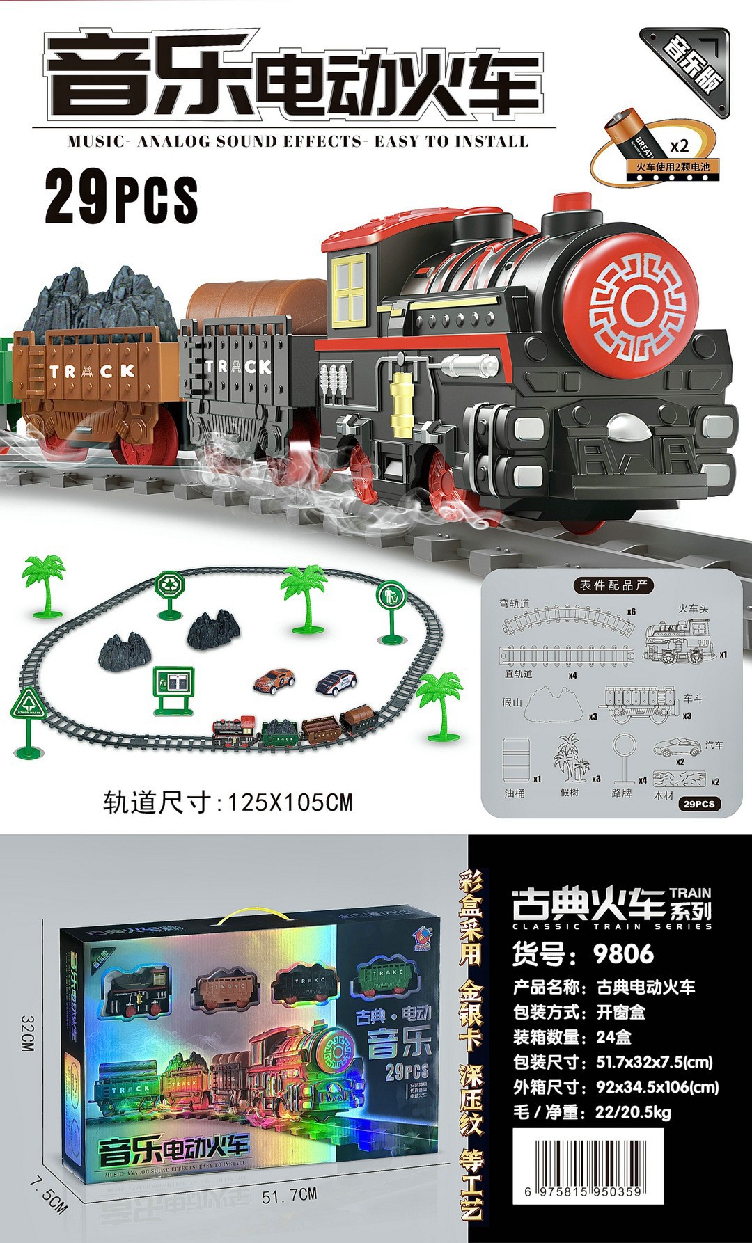 시뮬레이션 클래식 기차 트랙 모델 장난감 자동차 복고풍 전기 음악 작은 기차 어린이 교육 장난감 도매