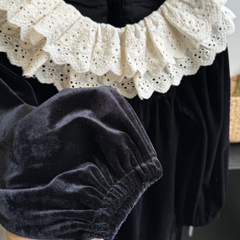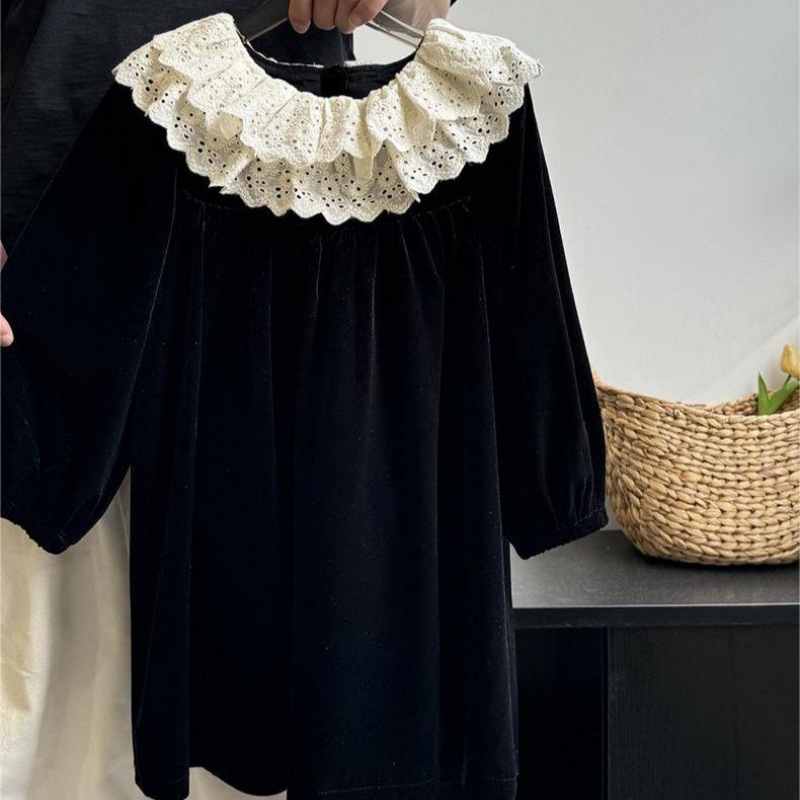 스위트 리틀 걸즈 가을 신상 레이스 트림 솔리드 컬러 라펠 원피스 여아용 한국 스타일 패션 원피스스토어 가기