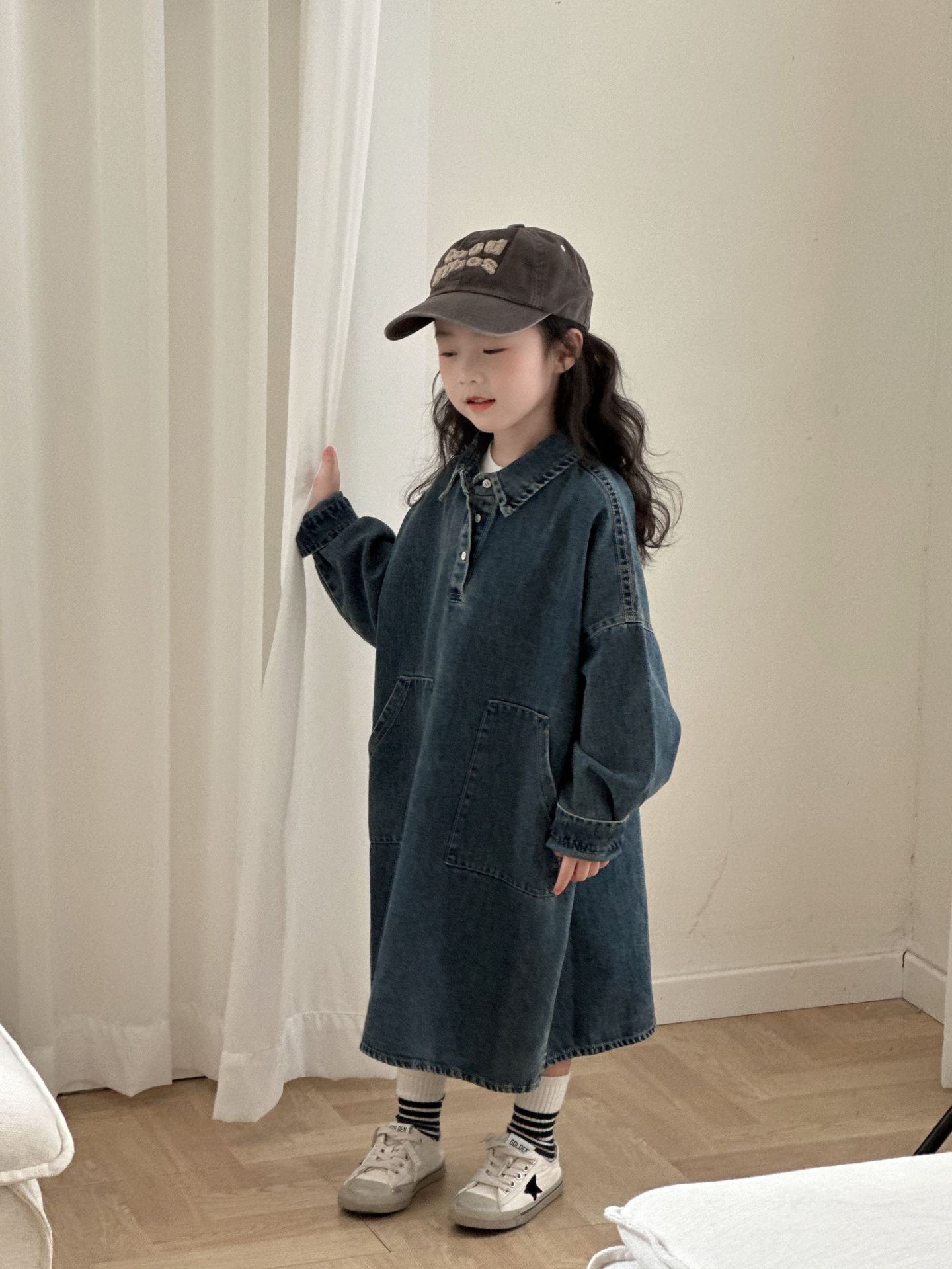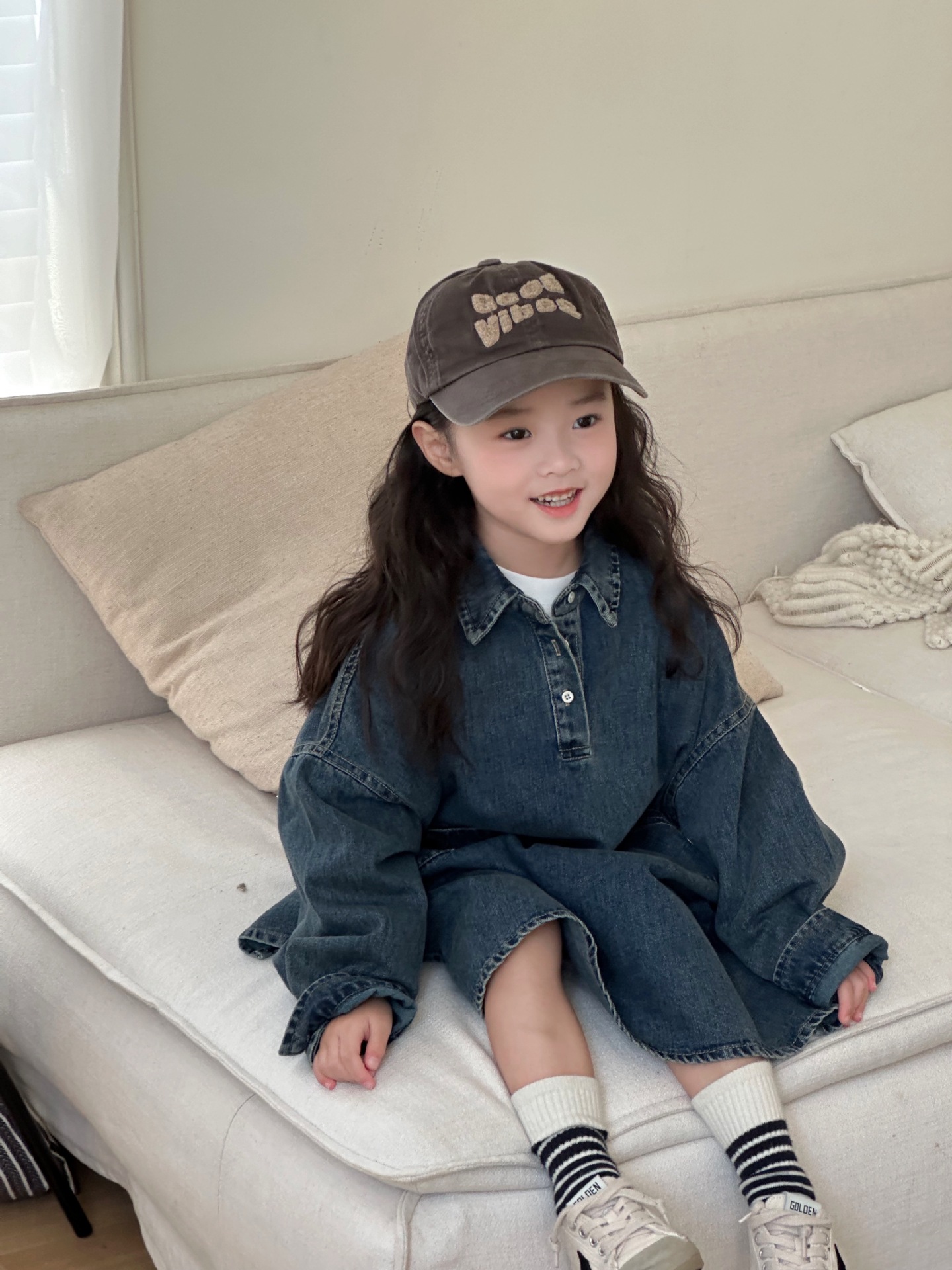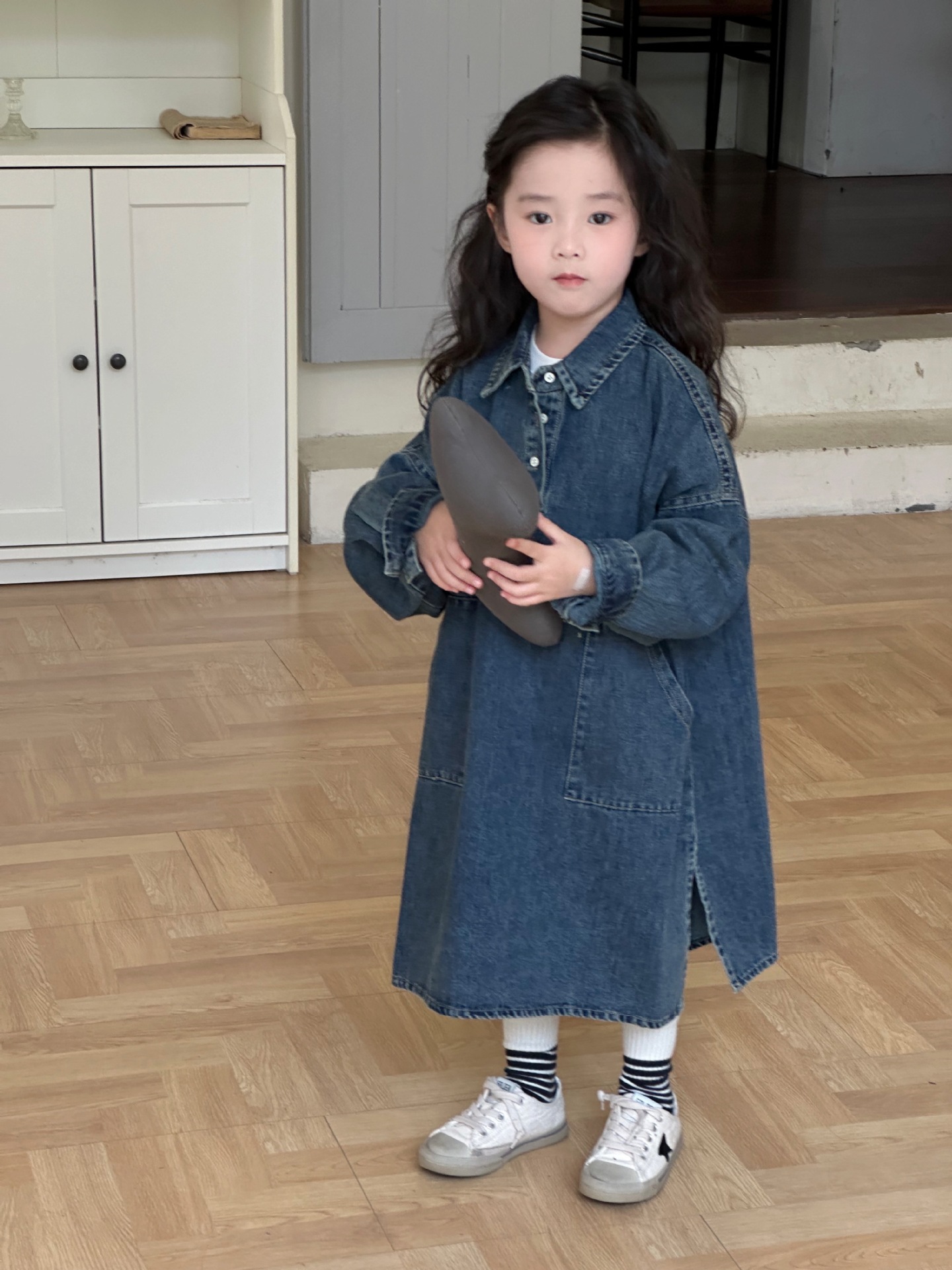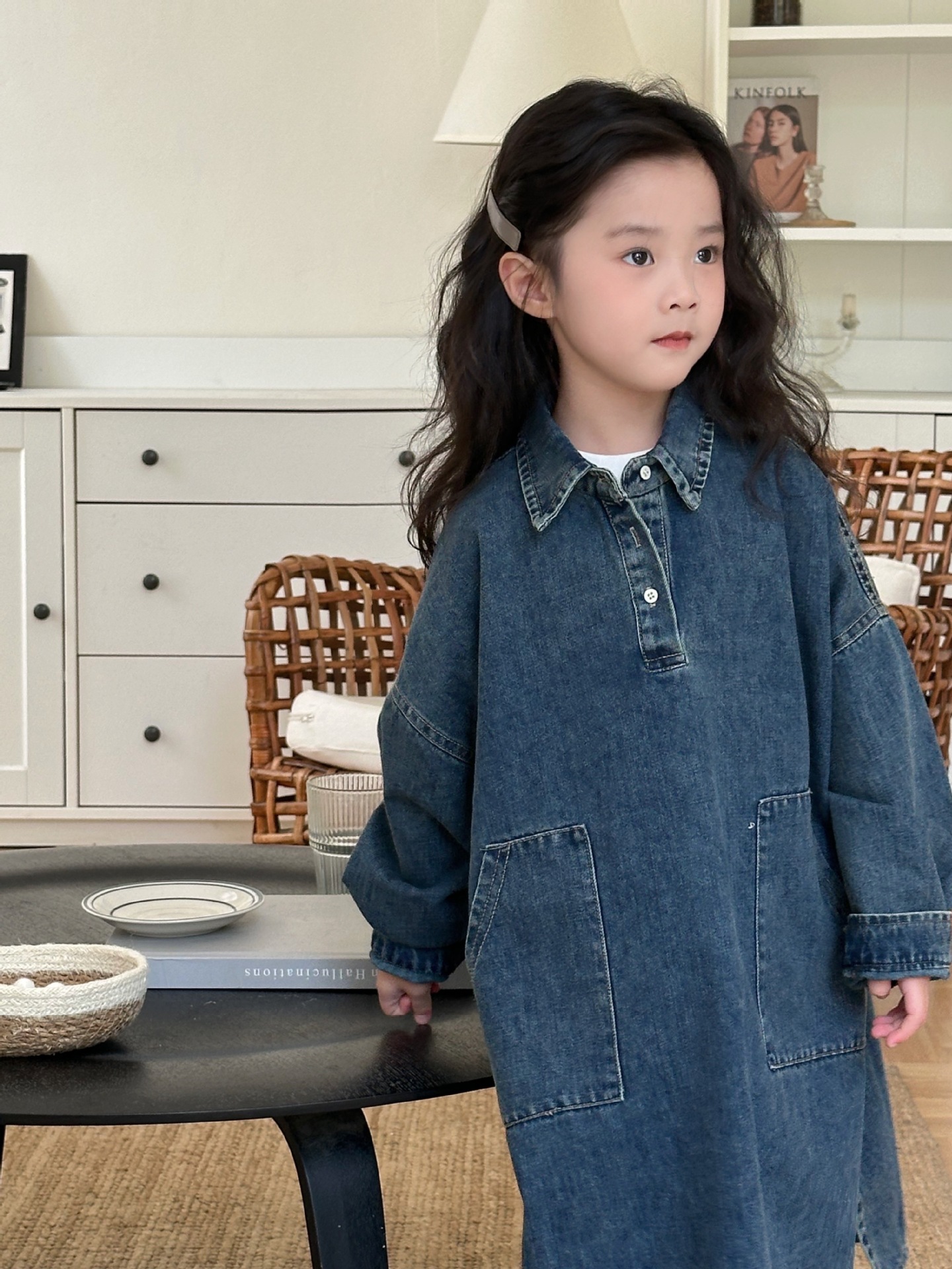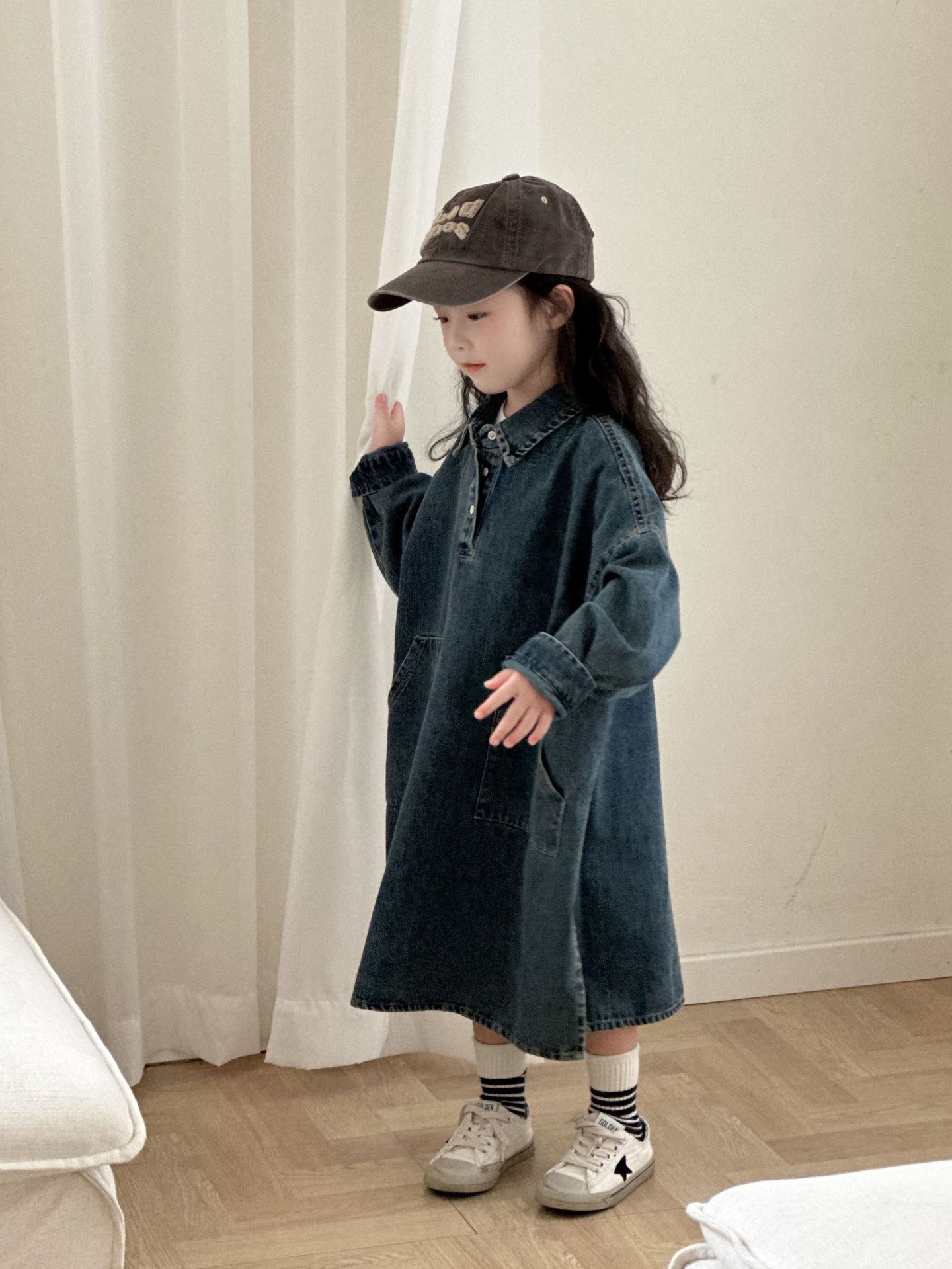 가을 새로운 소녀 빈티지 데님 원피스 한국 어린이 착용 아기 유행 옷깃 긴 소매 원피스 셔츠 원피스스토어 가기