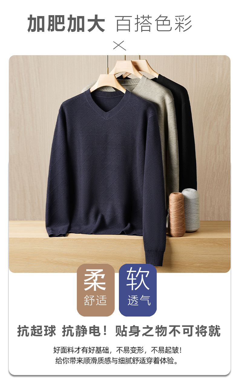 남자 V 넥 긴팔 스웨터 가을과 겨울 뉴 플러스 사이즈 라이트 럭셔리 하이 엔드 안티 필링 남성용 따뜻한 스웨터 베이스스토어 가기