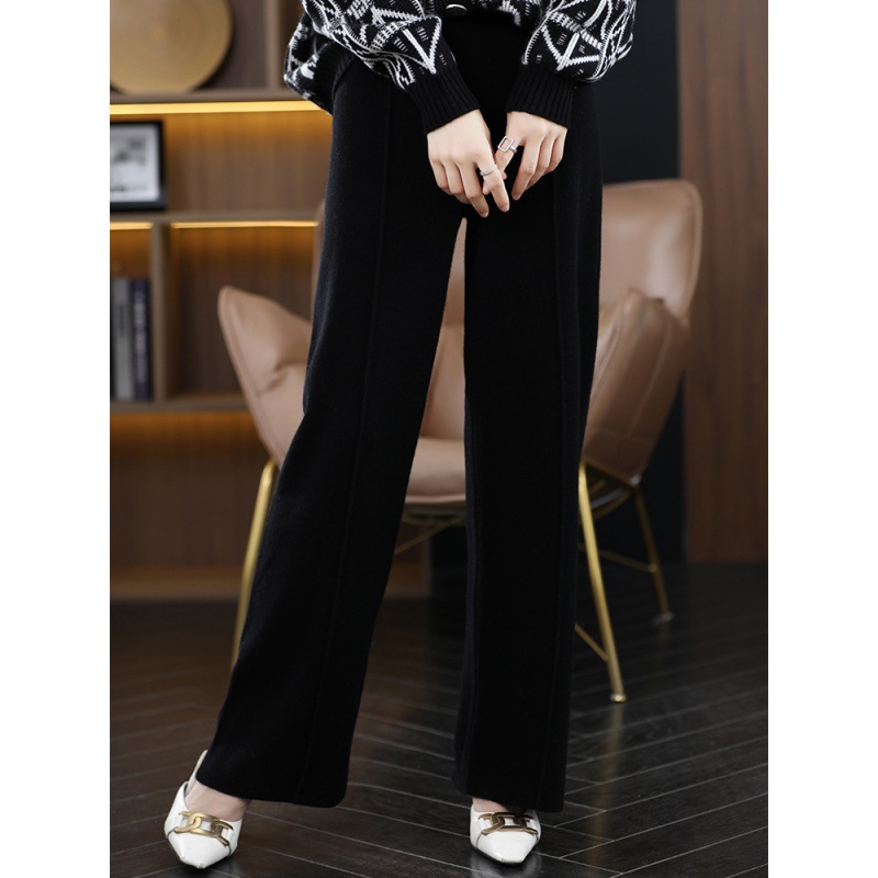 고급 니트 하이웨이스트 와이드 팬츠 여성용 2025 가을 겨울 신상 루즈핏 캐주얼 스트레이트 롱 팬츠 트렌디스토어 가기