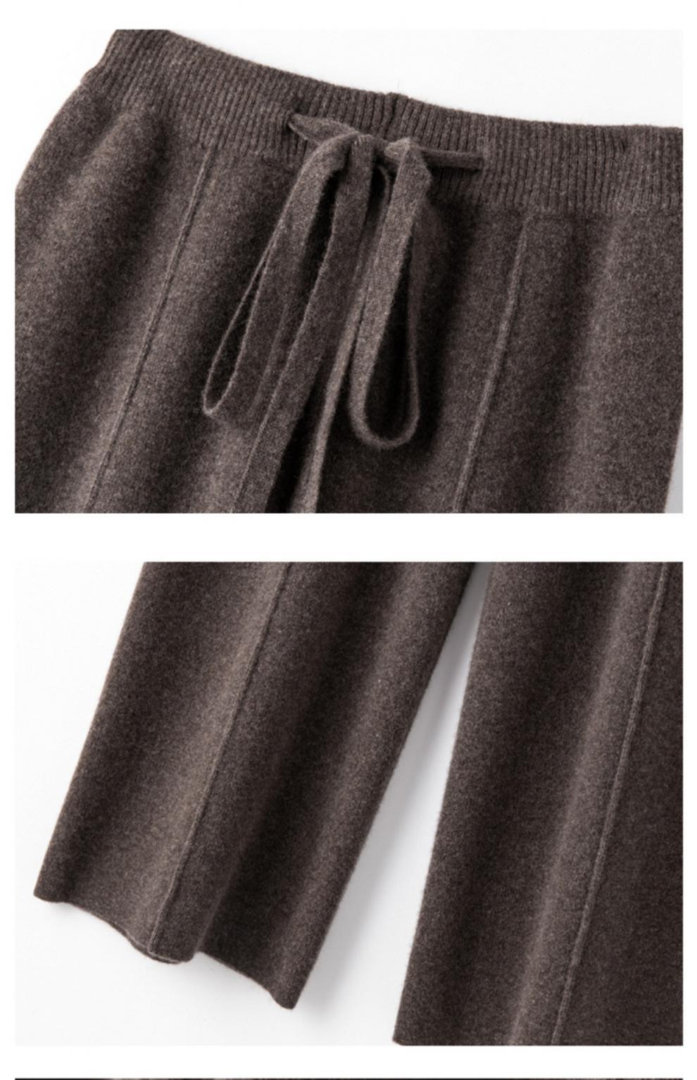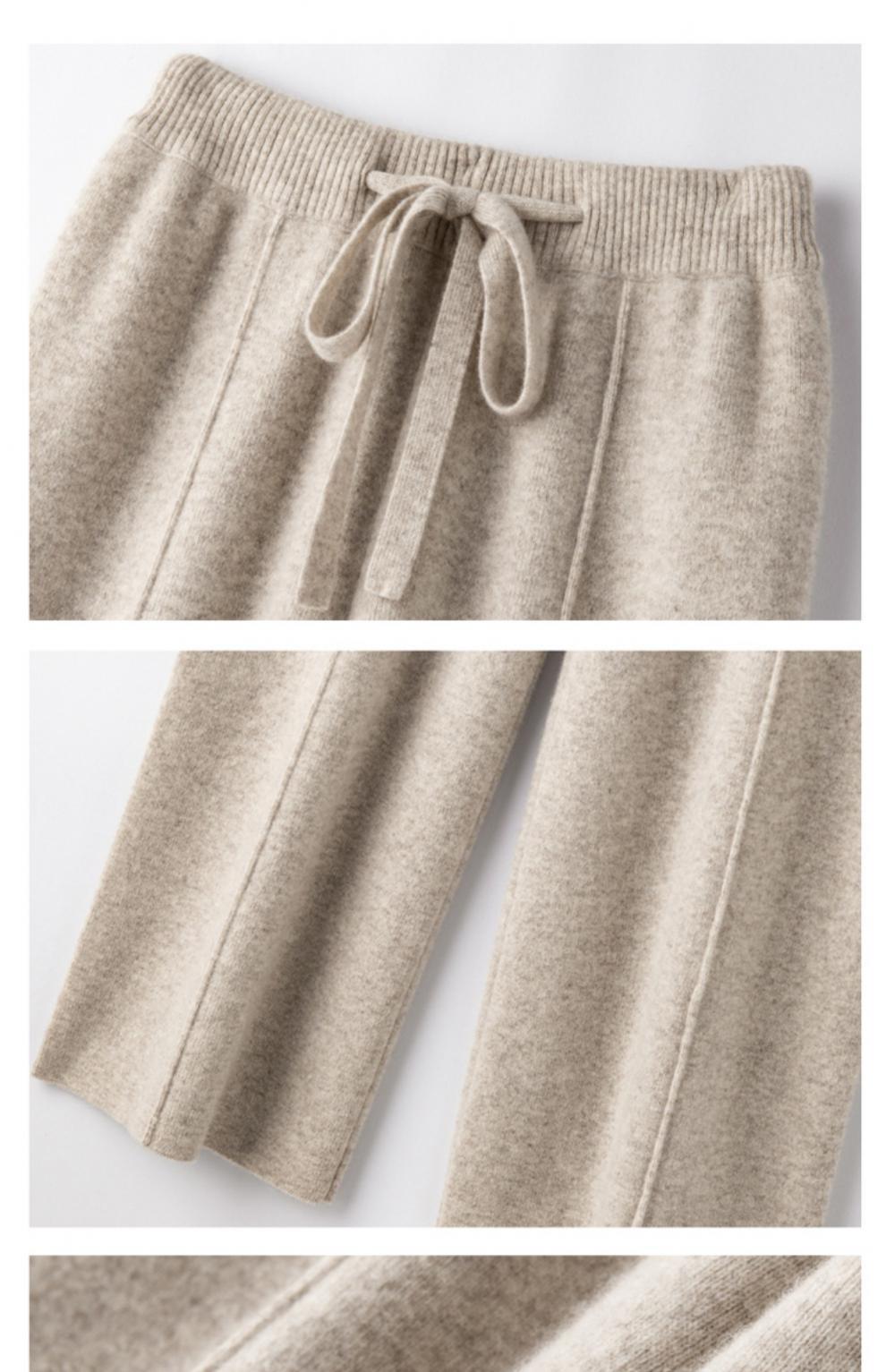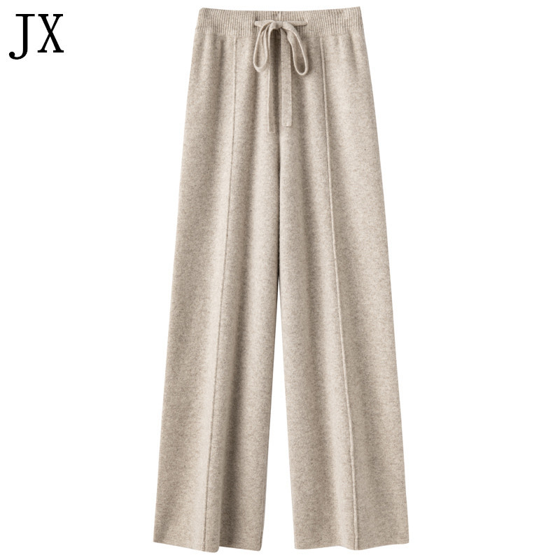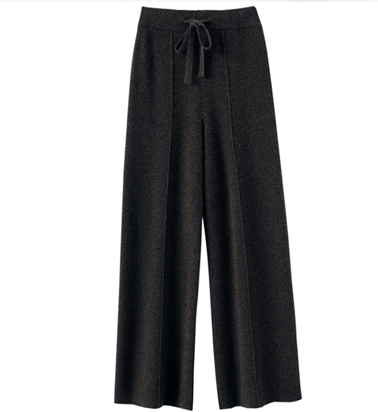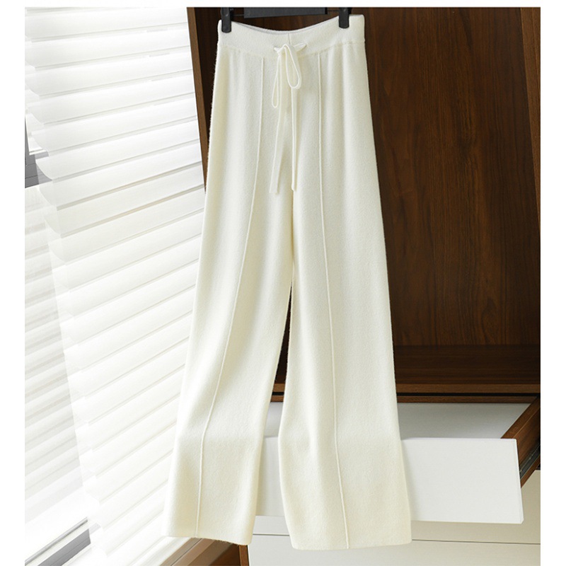 고급 니트 하이웨이스트 와이드 팬츠 여성용 2025 가을 겨울 신상 루즈핏 캐주얼 스트레이트 롱 팬츠 트렌디