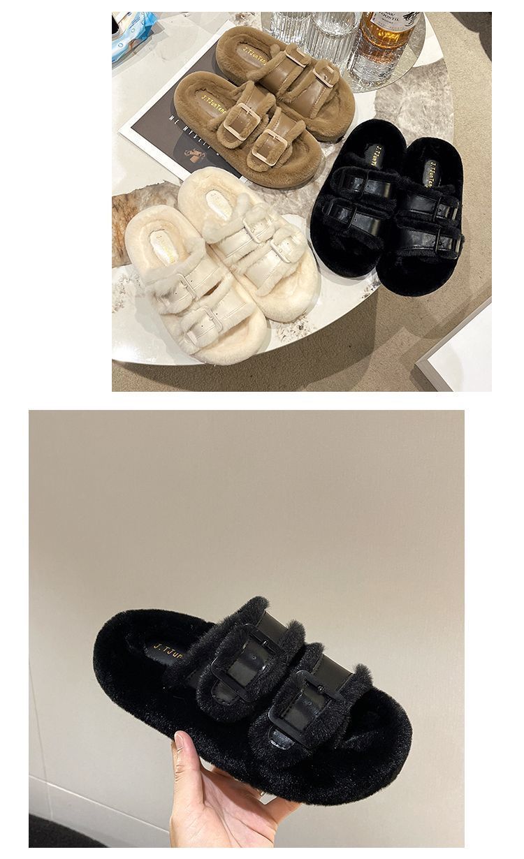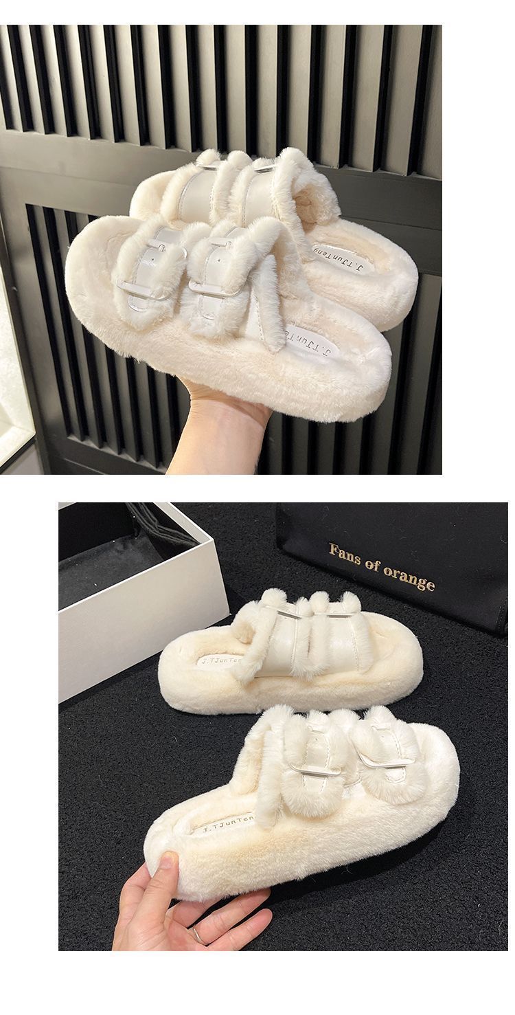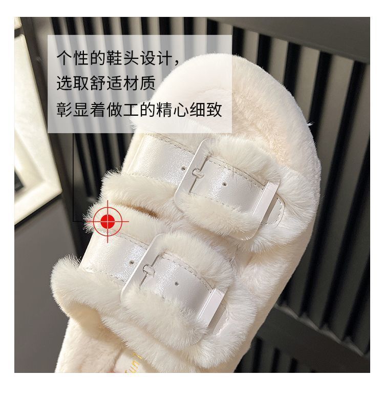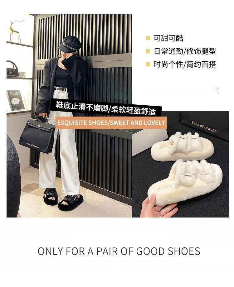 2024 샤넬 스타일 기모 편안한 코튼 슬리퍼 두꺼운 바닥 흰색 마오 마오 슬리퍼 여성 의상 플랫폼 신발 여성의 새로운 스타일스토어 가기