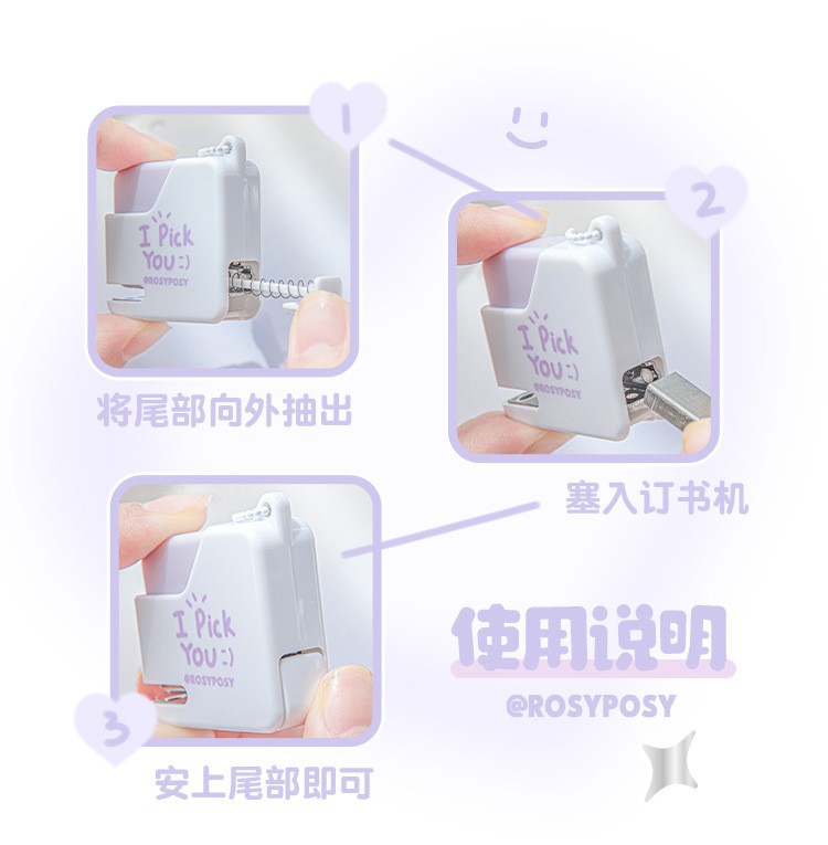 장미 빛 포시 설탕 미니 스테이플러 휴대용 인치 작은 신선한 스타일 10 스테이플러 사무실 홈 문구