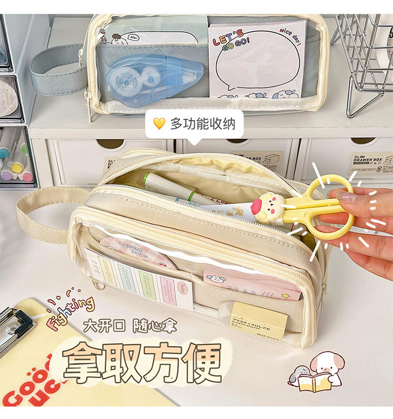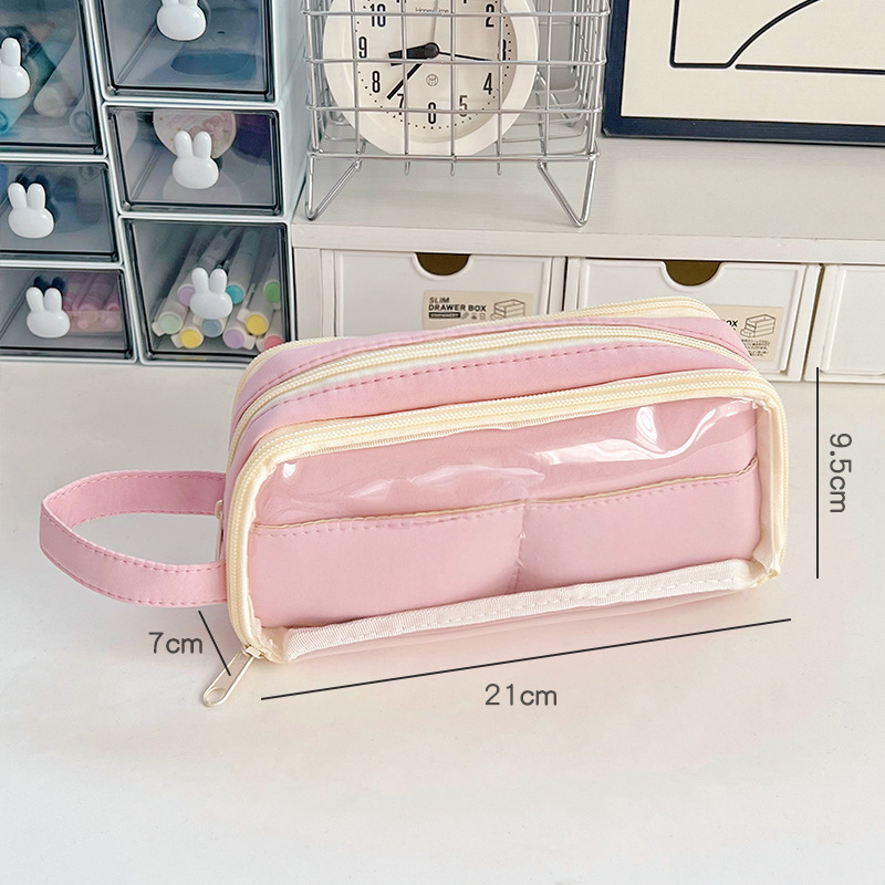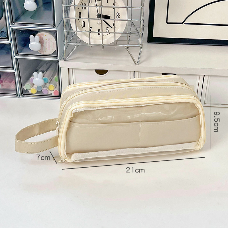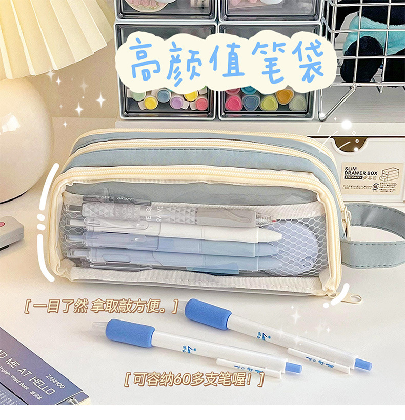 간단한 투명 대용량 연필 가방 간단한 학생 문구 상자 높은 색 가치 연필 케이스 여자를위한 중학교 학생 문구 가방스토어 가기