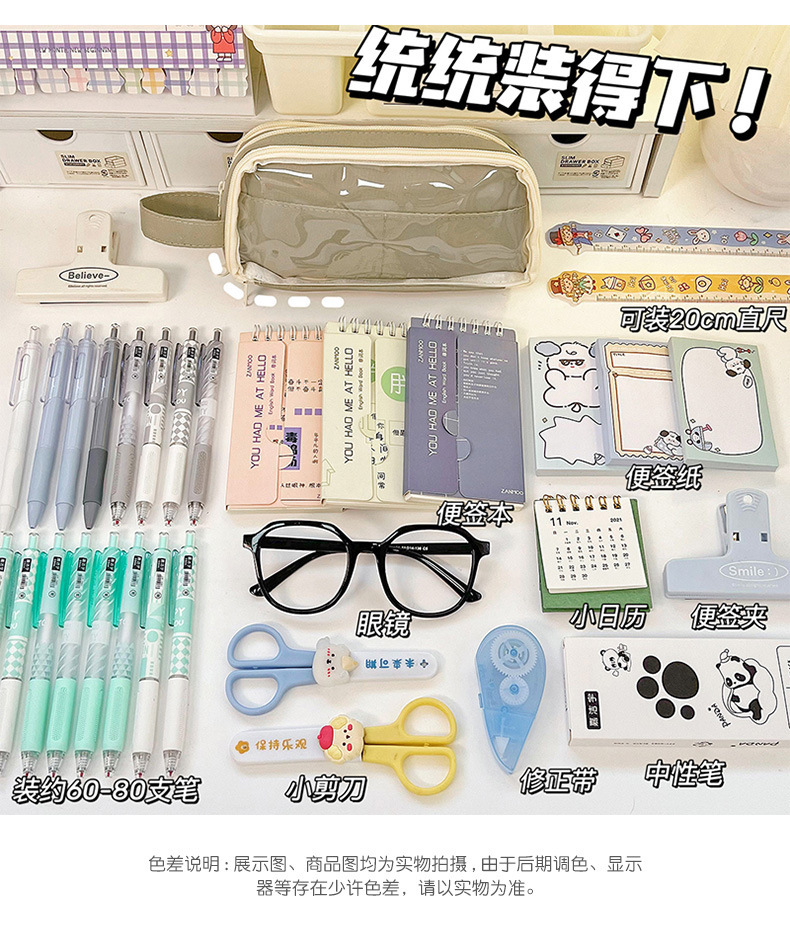 간단한 투명 대용량 연필 가방 간단한 학생 문구 상자 높은 색 가치 연필 케이스 여자를위한 중학교 학생 문구 가방