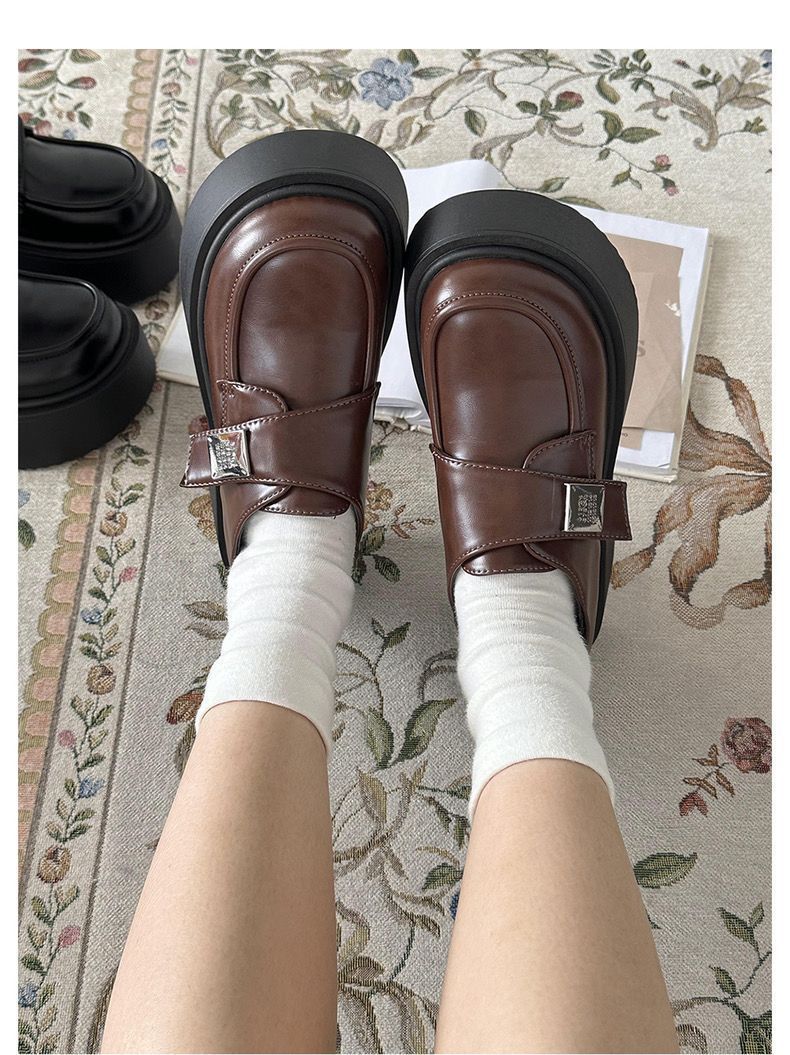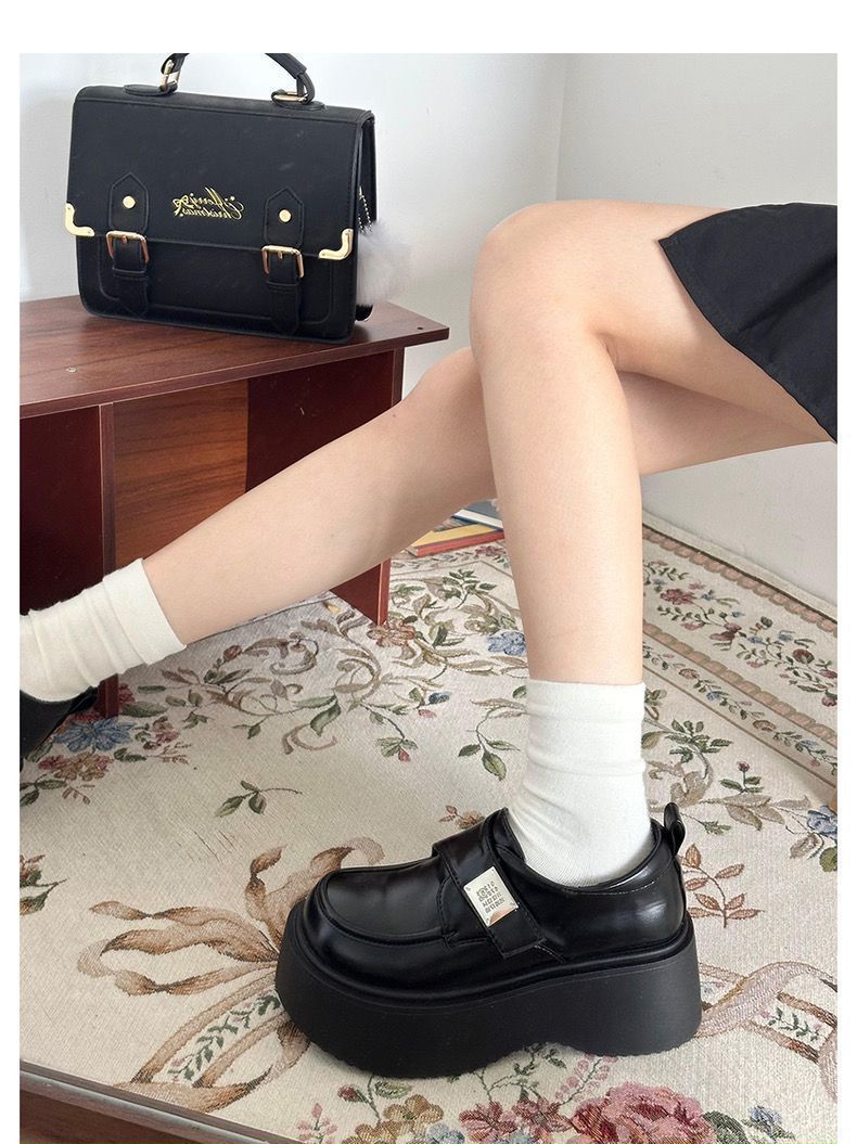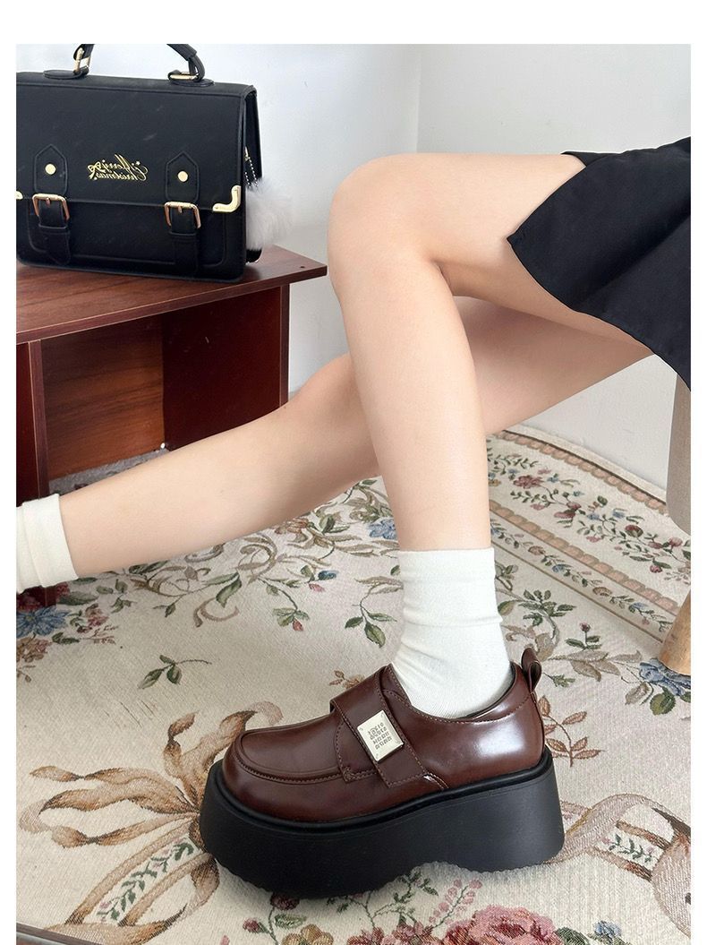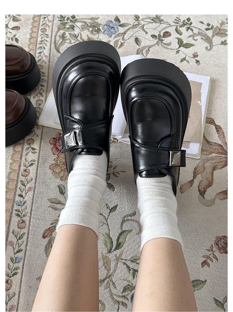 올 매치 여성용 작은 머핀 두꺼운 밑창 LeFo 신발 2024 여름 새로운 패션 간단한 복고풍 작은 가죽 신발스토어 가기
