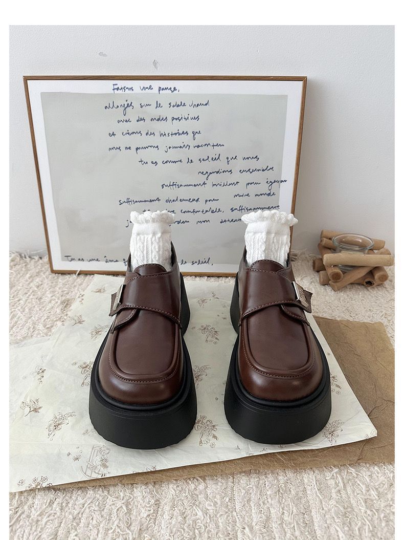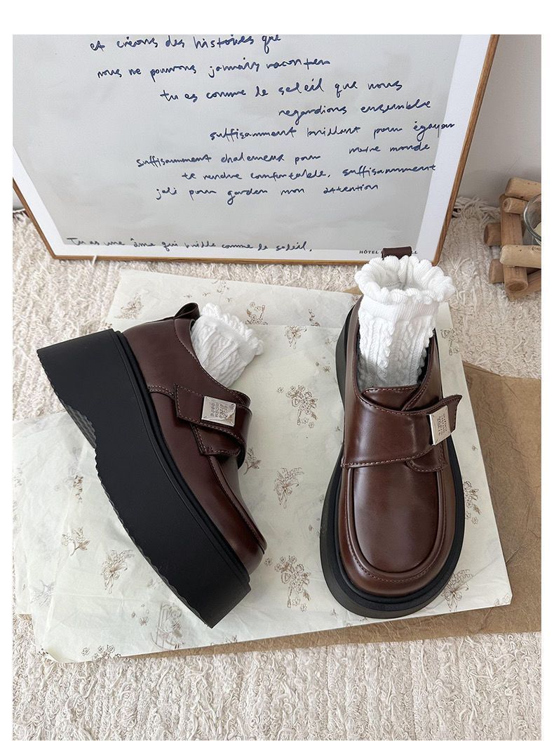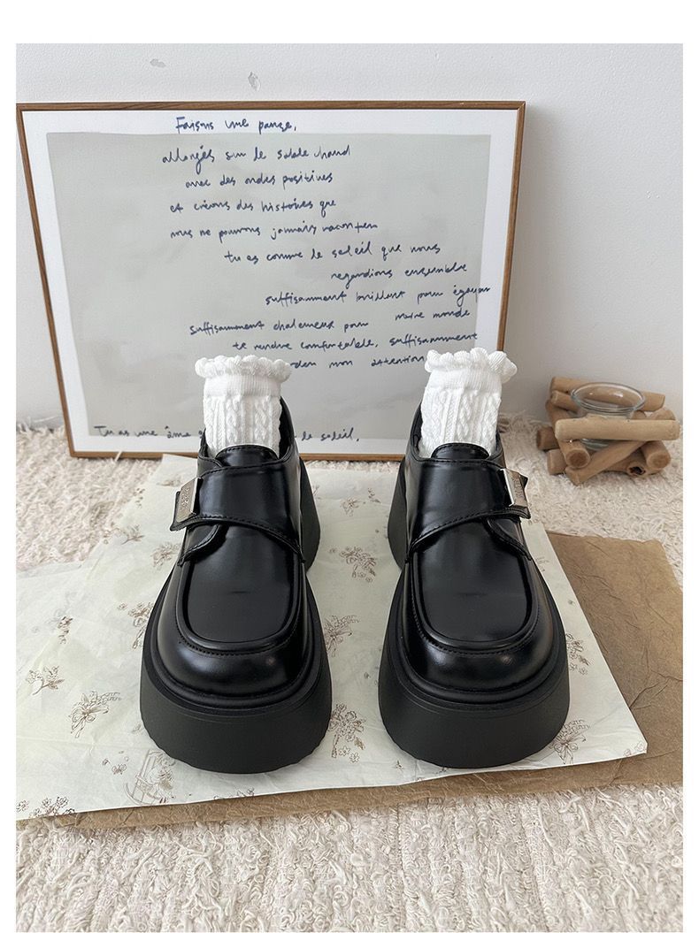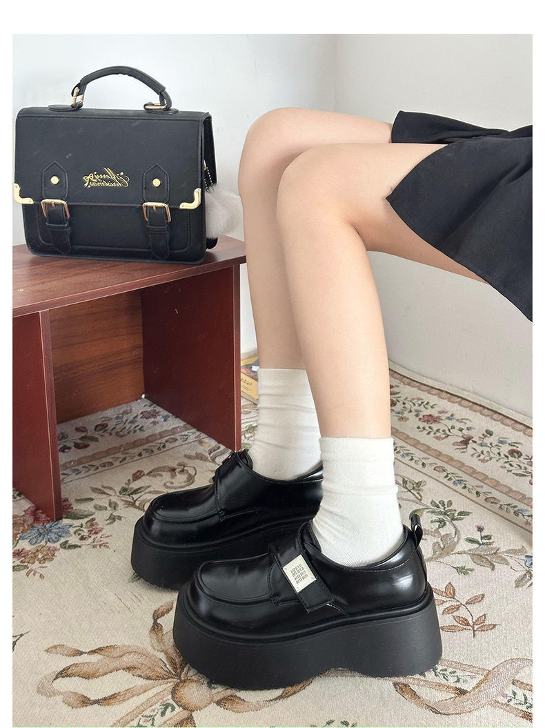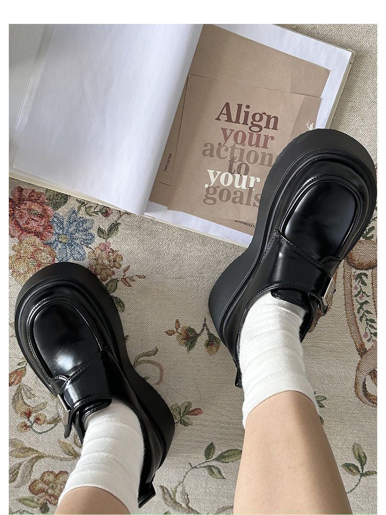 올 매치 여성용 작은 머핀 두꺼운 밑창 LeFo 신발 2024 여름 새로운 패션 간단한 복고풍 작은 가죽 신발스토어 가기
