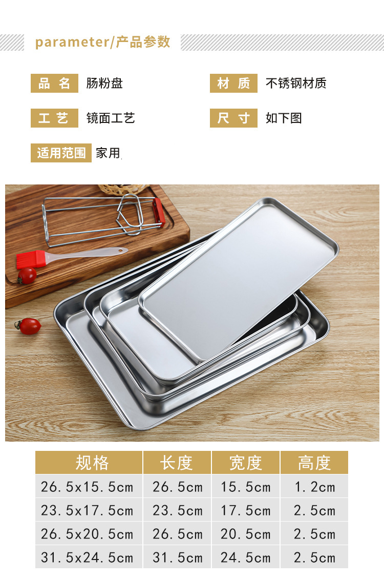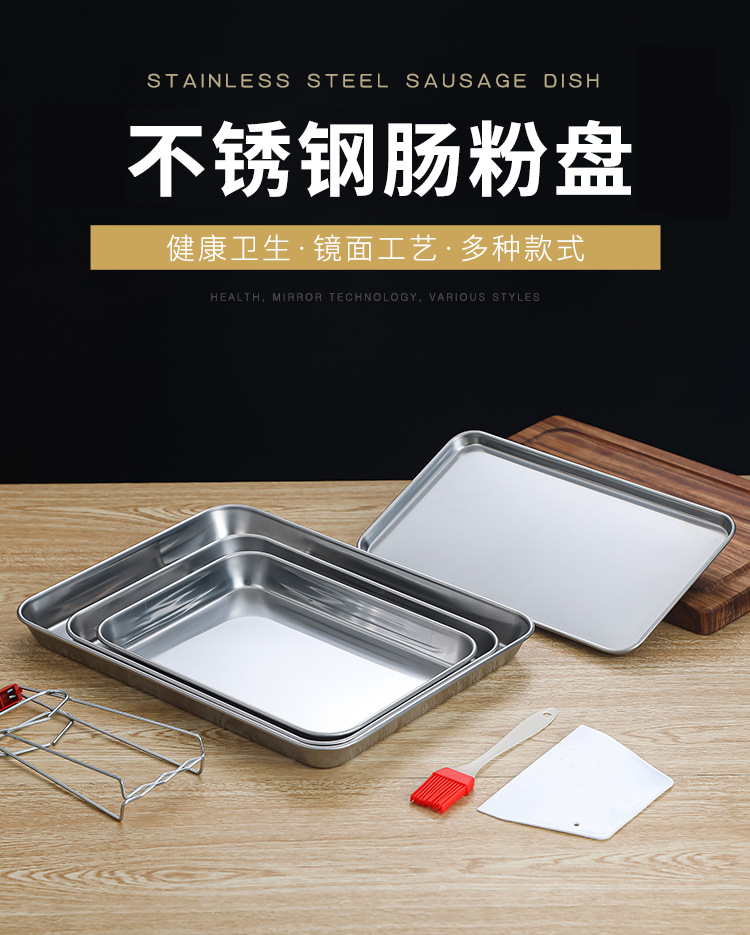 가정용 광동 쌀 그릇 특수 스팀 플레이트 직사각형 스테인레스 스틸 플레이트 플랫 바닥 트레이 쿨 스킨 파우더 플레이트 도구 세트