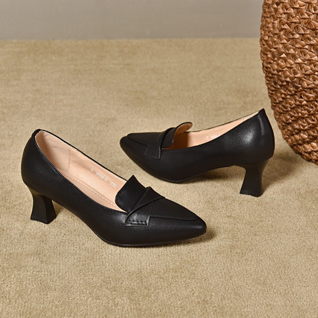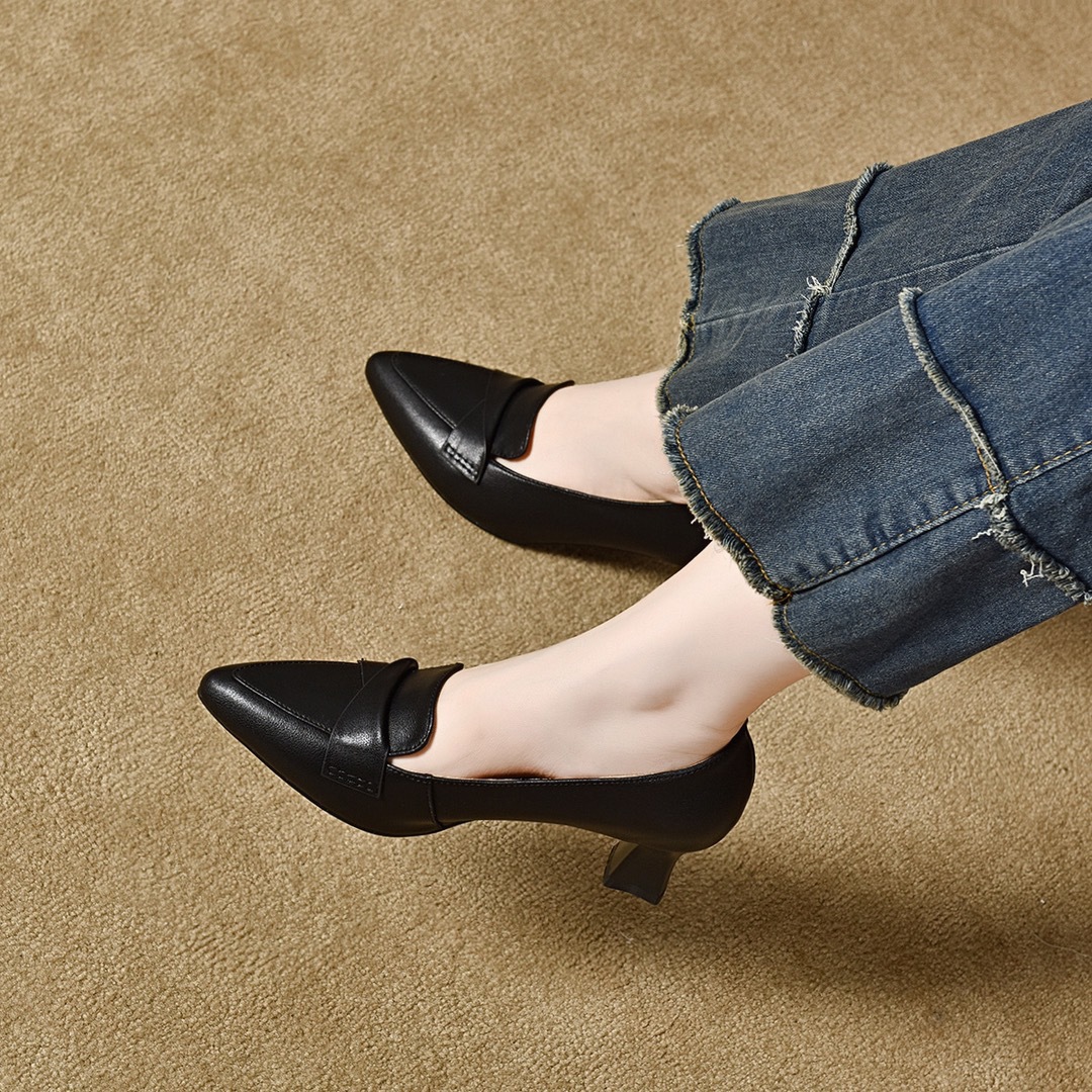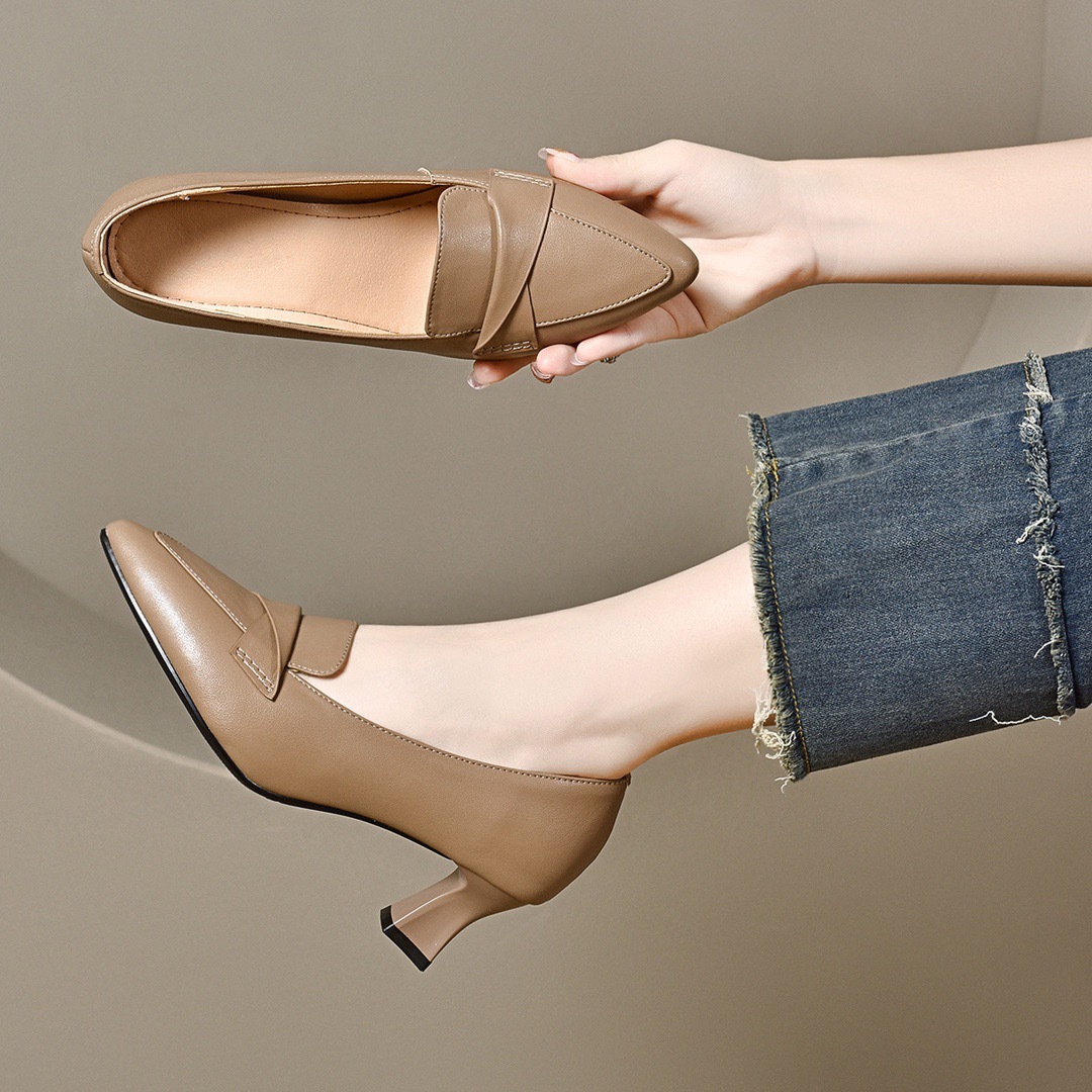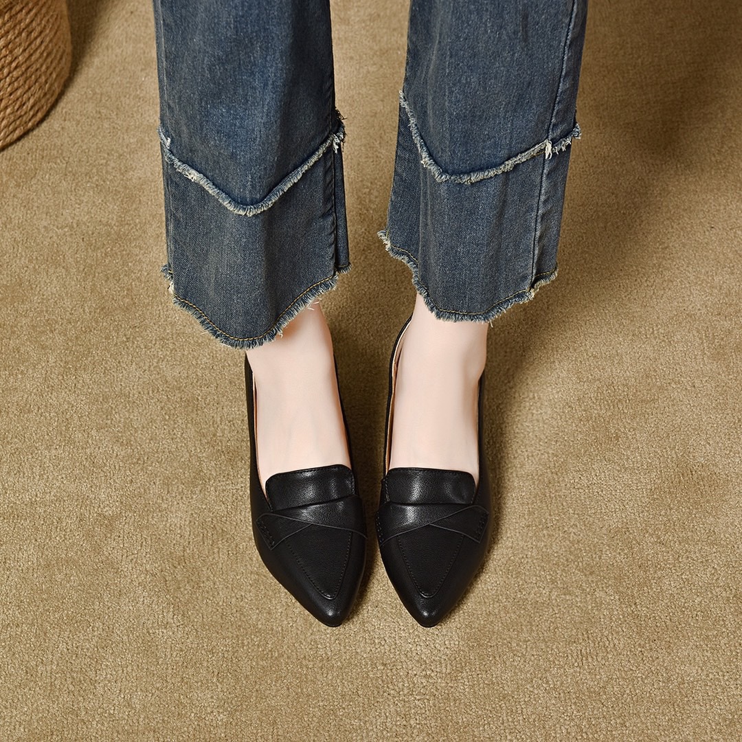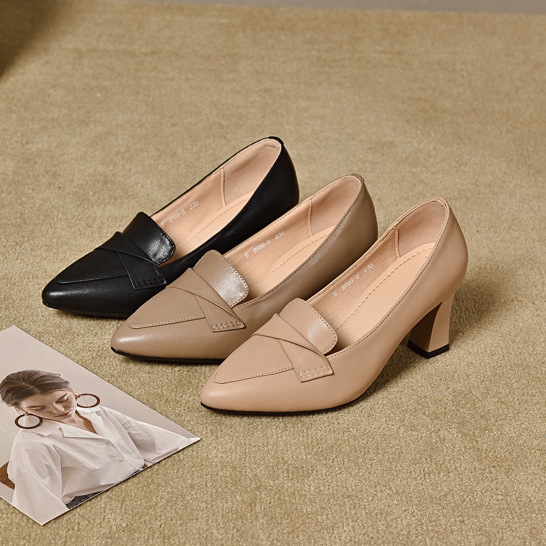 정품 가죽 수제 여성용 신발 로우 힐 포인팅 슈퍼 소프트 칼프 스킨 싱글 레이어 신발 여성 미드 입 로우 힐 뉴 캐주얼 올 매치 슈즈