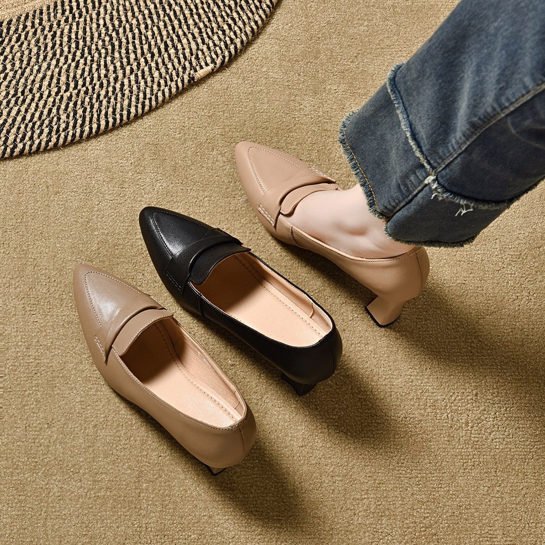 정품 가죽 수제 여성용 신발 로우 힐 포인팅 슈퍼 소프트 칼프 스킨 싱글 레이어 신발 여성 미드 입 로우 힐 뉴 캐주얼 올 매치 슈즈스토어 가기