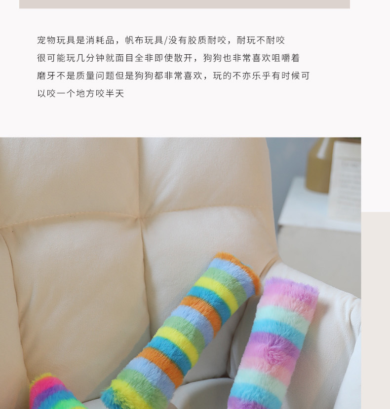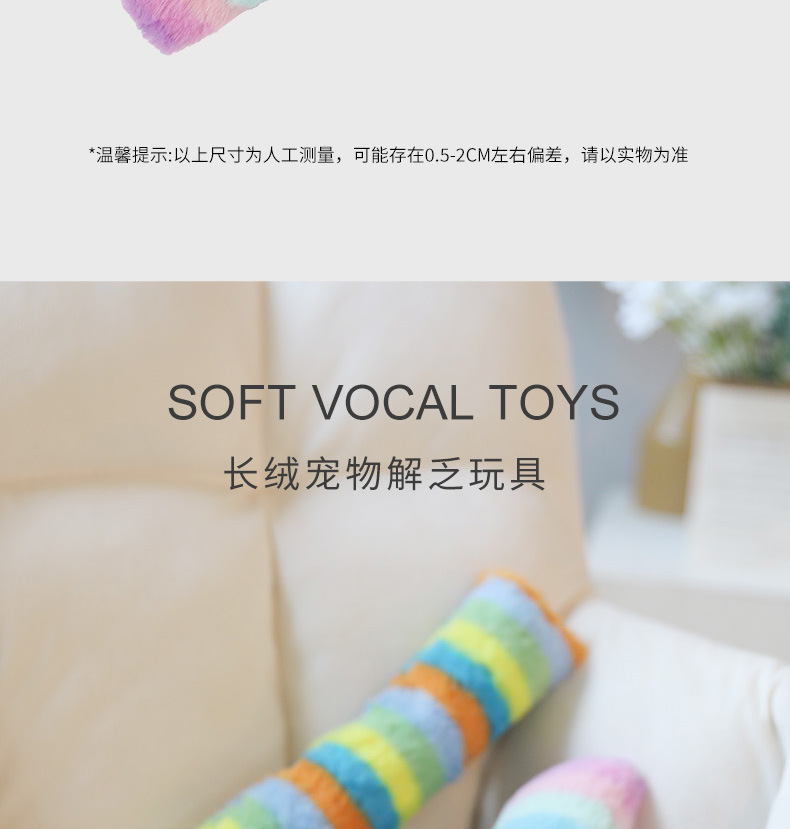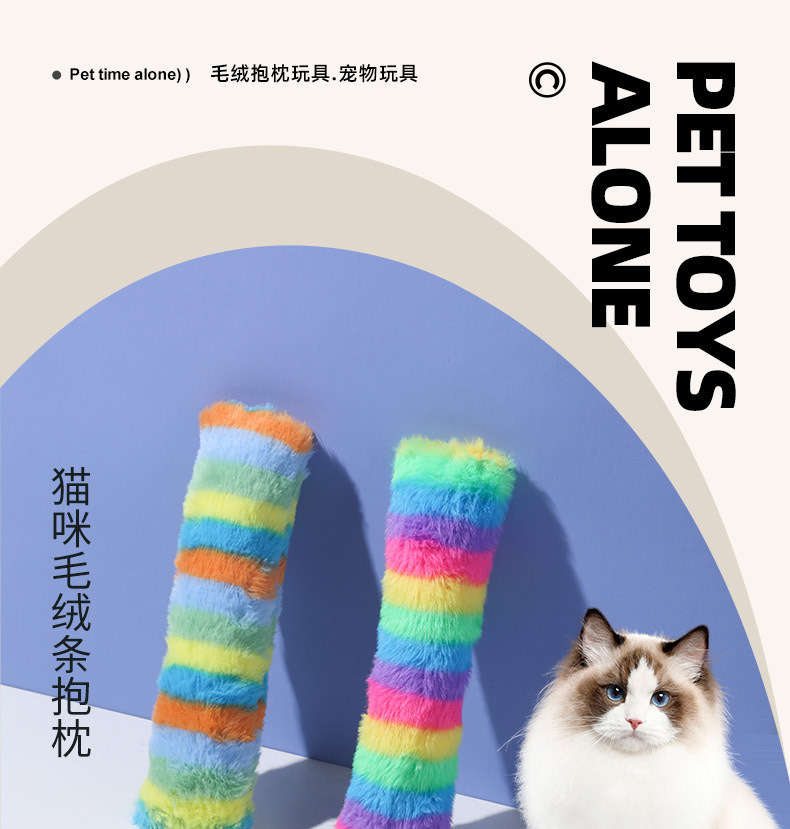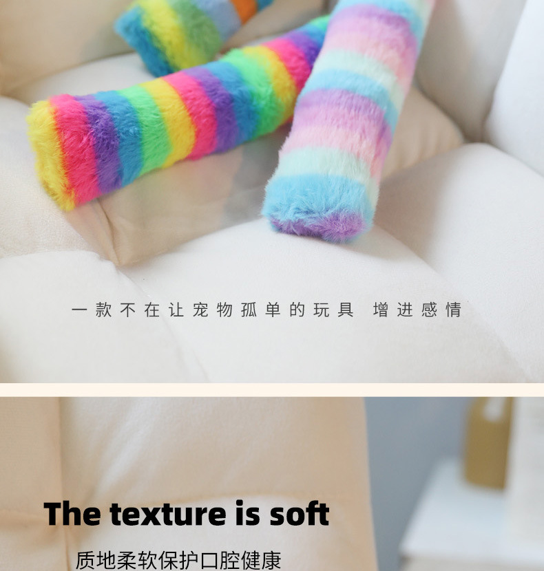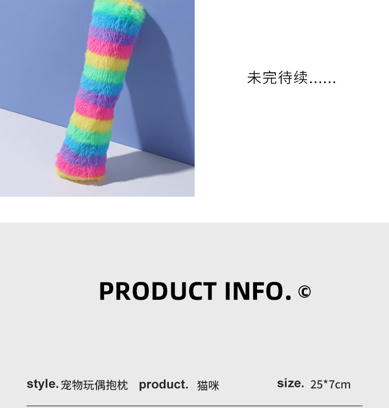 애완 동물 용품 레인보우 봉제 긴 베개 고양이 자기 안녕 장난감 개박 소리 대화 형 장난감