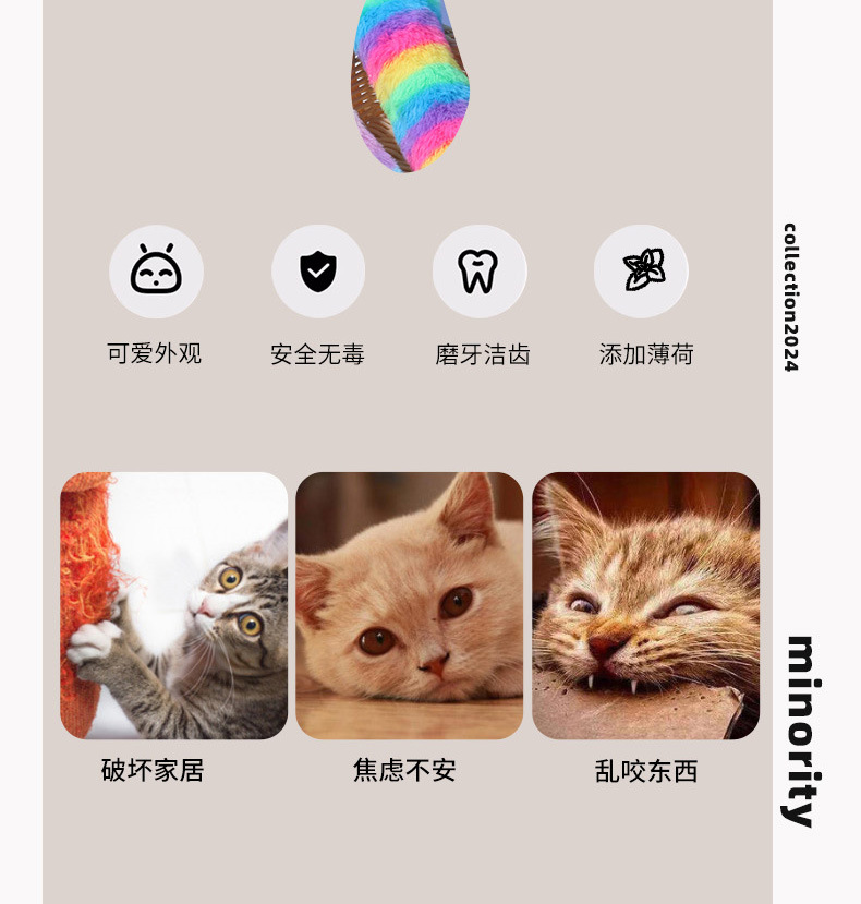 애완 동물 용품 레인보우 봉제 긴 베개 고양이 자기 안녕 장난감 개박 소리 대화 형 장난감스토어 가기