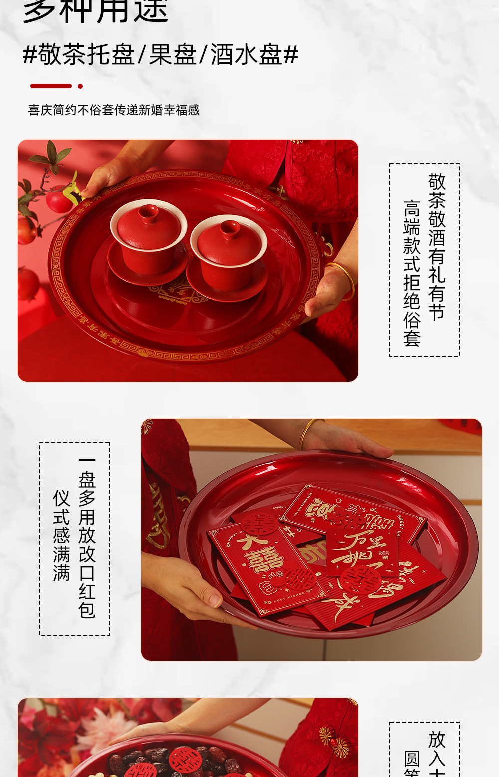 웨딩 축제 과일 플레이트 거실 차 테이블 세트 플레이트 새로운 웨딩 연회 신부 차 해피 트레이 웨딩 용품