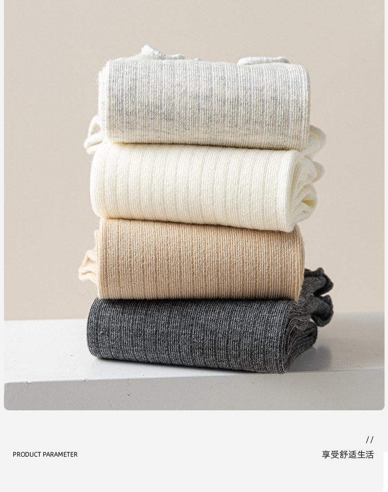 가을과 겨울 일본 단색 레이스 더미 양말 여성 한국식 아카데미 스타일 수직 줄무늬 여성 양말 빈티지 미드 튜브 양말