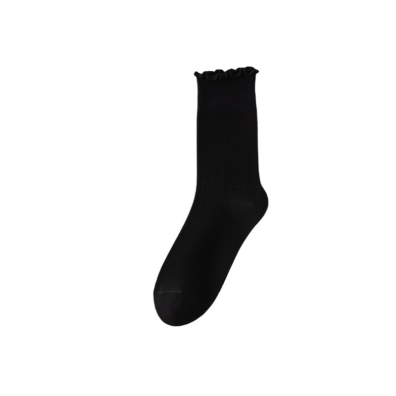 가을과 겨울 일본 단색 레이스 더미 양말 여성 한국식 아카데미 스타일 수직 줄무늬 여성 양말 빈티지 미드 튜브 양말스토어 가기