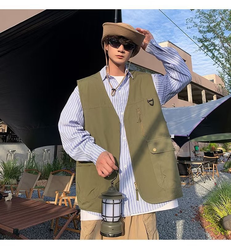 아메리칸 스타일 빈티지 작업복 조끼 남자 여름 얇은 산 야외 캠핑 재킷 코트 멀티 포켓 조끼