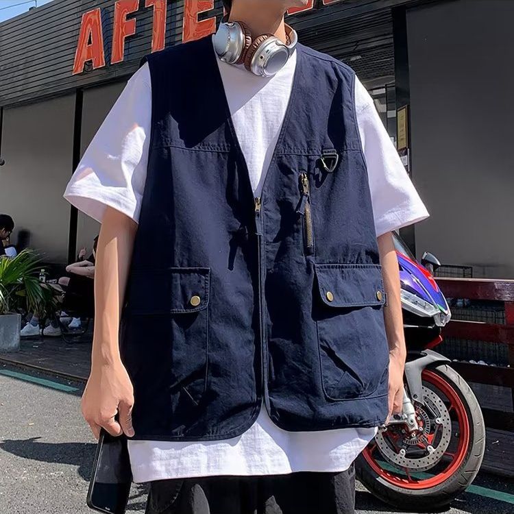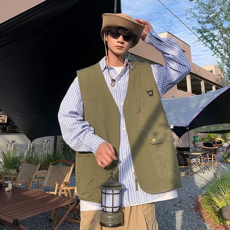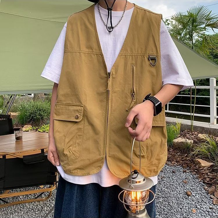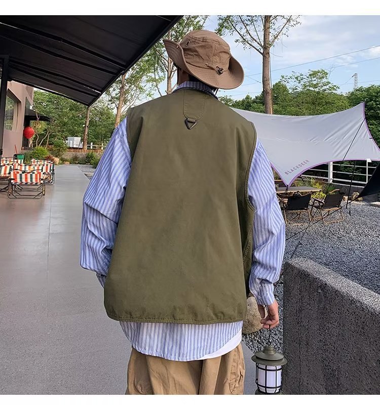 아메리칸 스타일 빈티지 작업복 조끼 남자 여름 얇은 산 야외 캠핑 재킷 코트 멀티 포켓 조끼스토어 가기