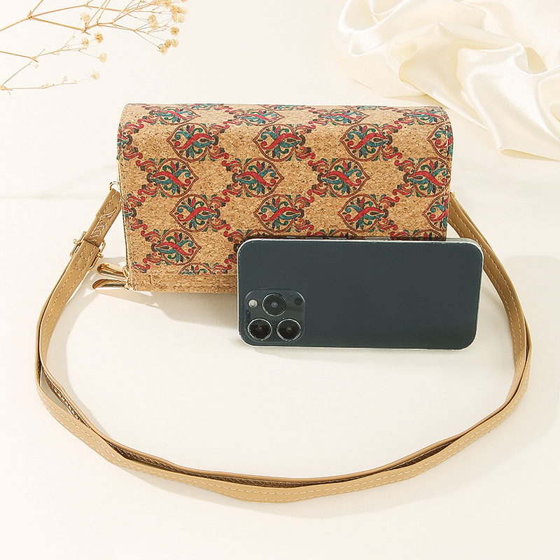 原创复古多功能女士斜挎包手机包 葡萄牙软木
