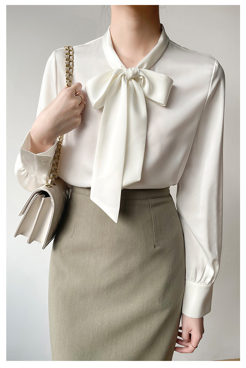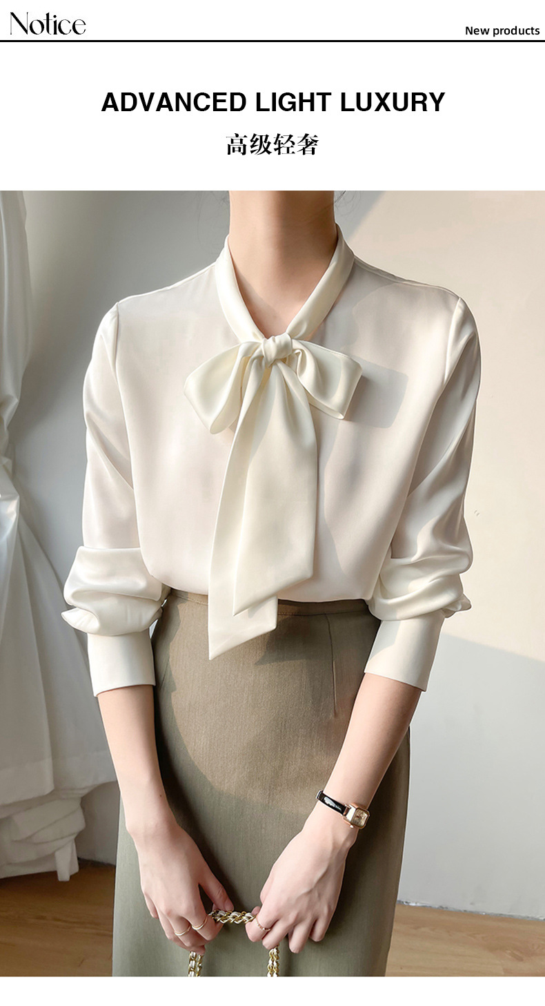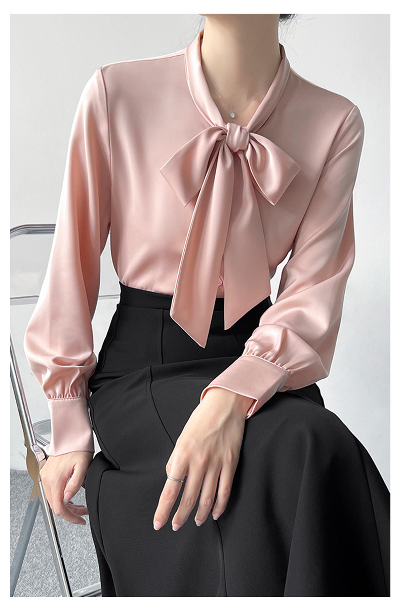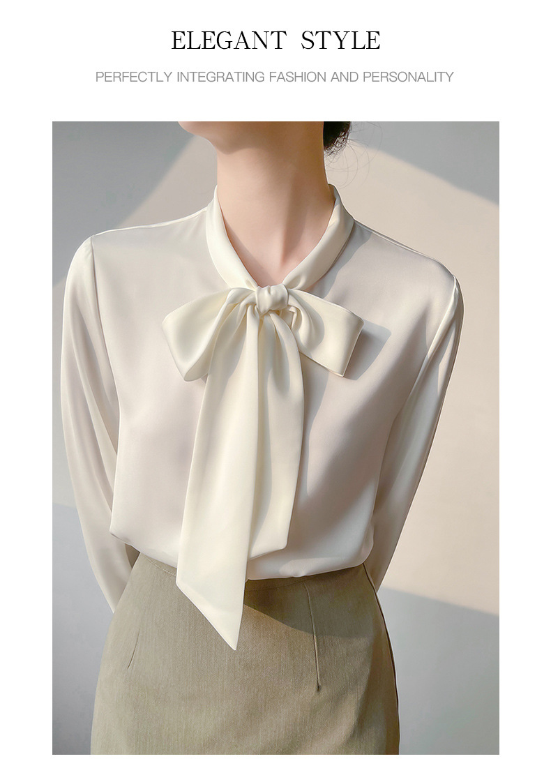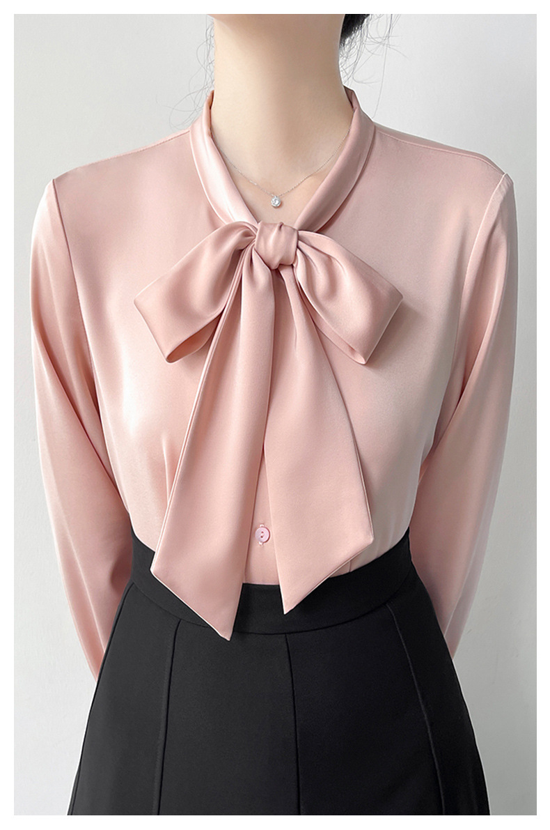 2026년 초봄 신상 고급 새틴 직장인 통근용 리본 스트랩 셔츠 여성스럽고 슬림한 탑스토어 가기