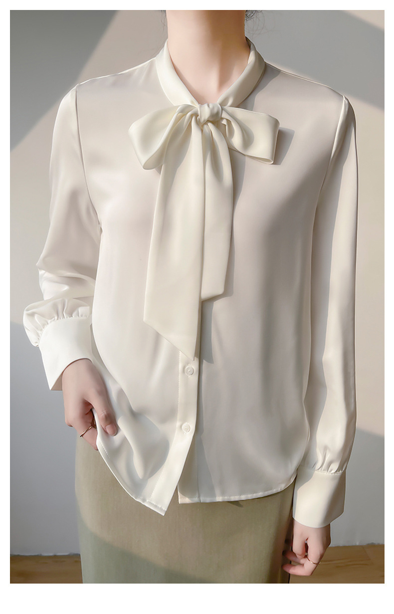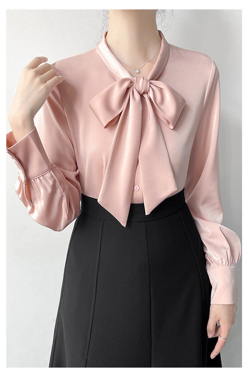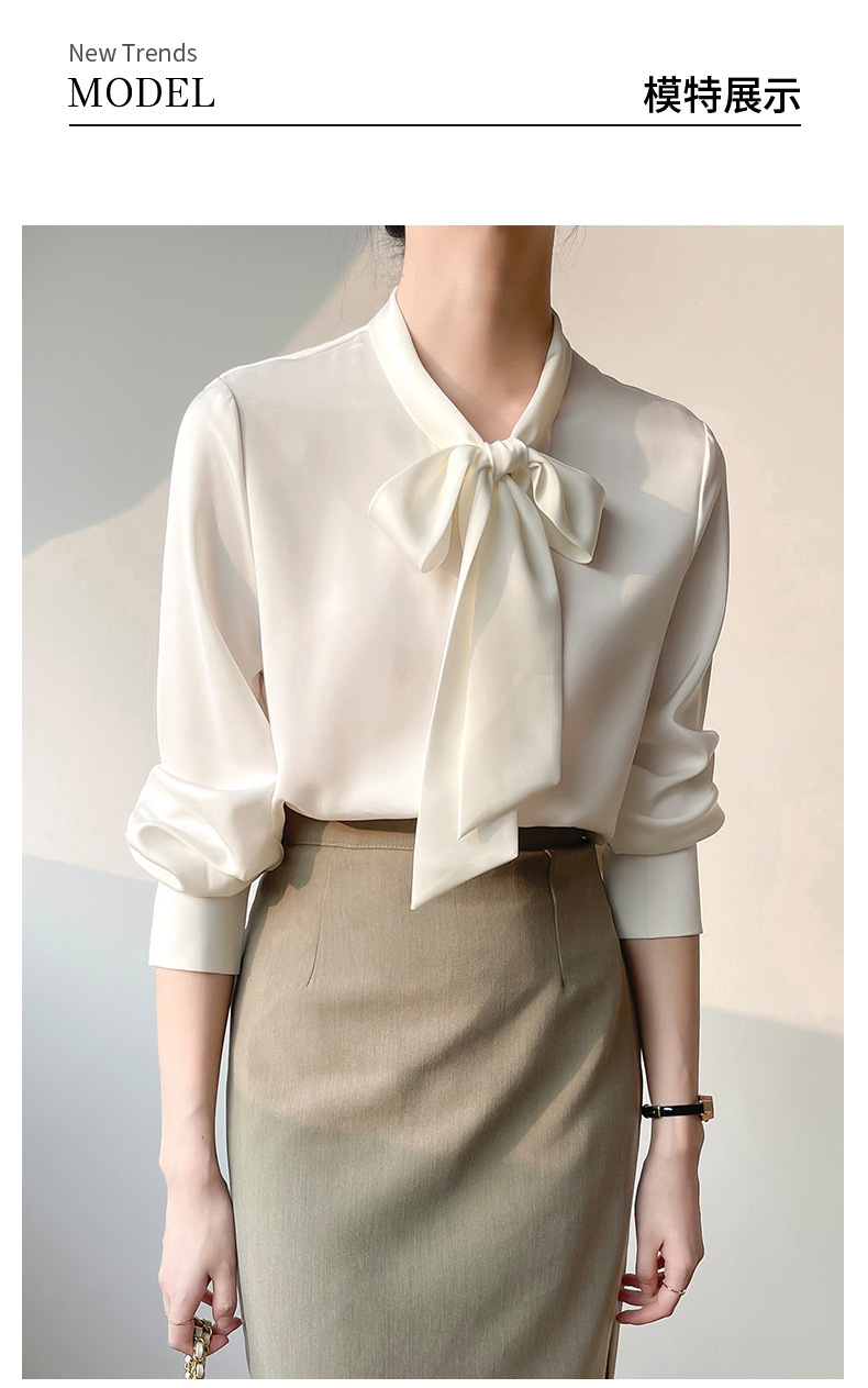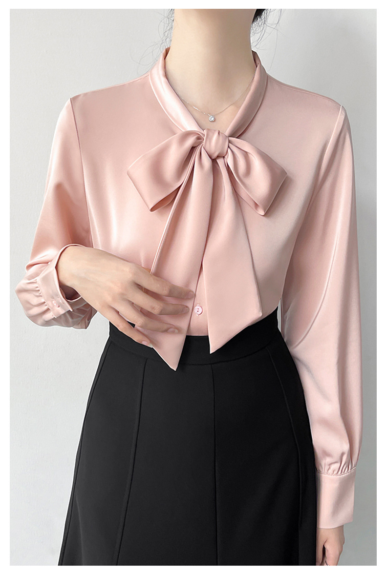 2026년 초봄 신상 고급 새틴 직장인 통근용 리본 스트랩 셔츠 여성스럽고 슬림한 탑스토어 가기