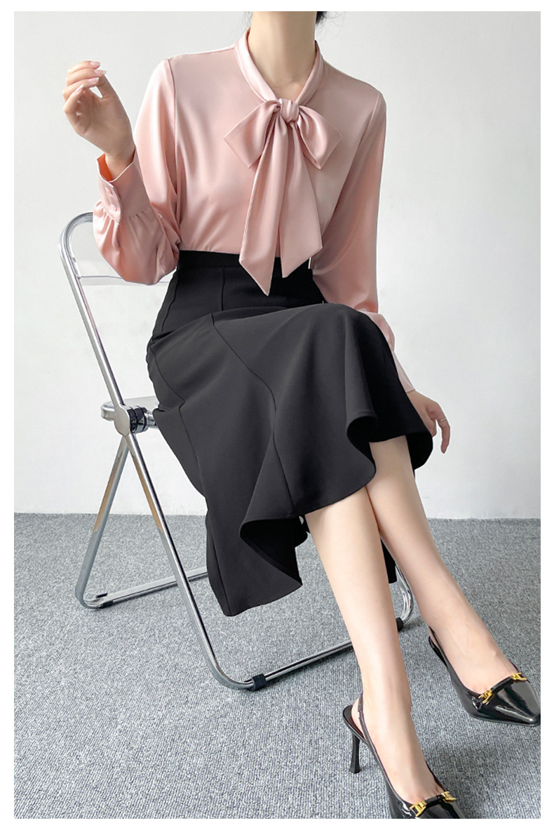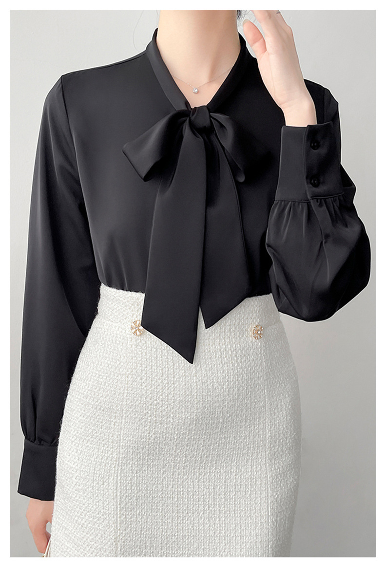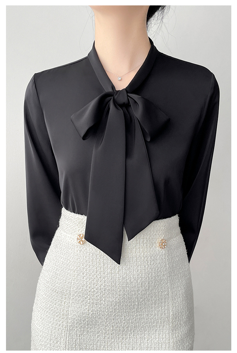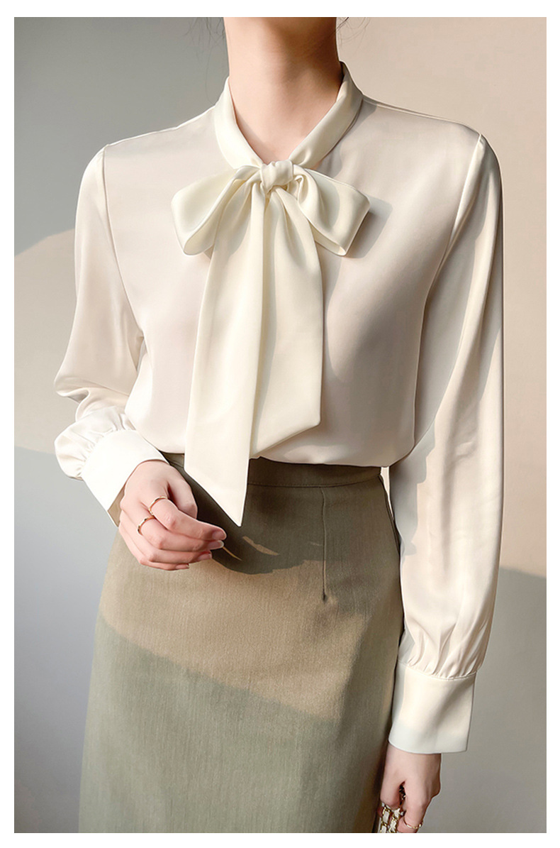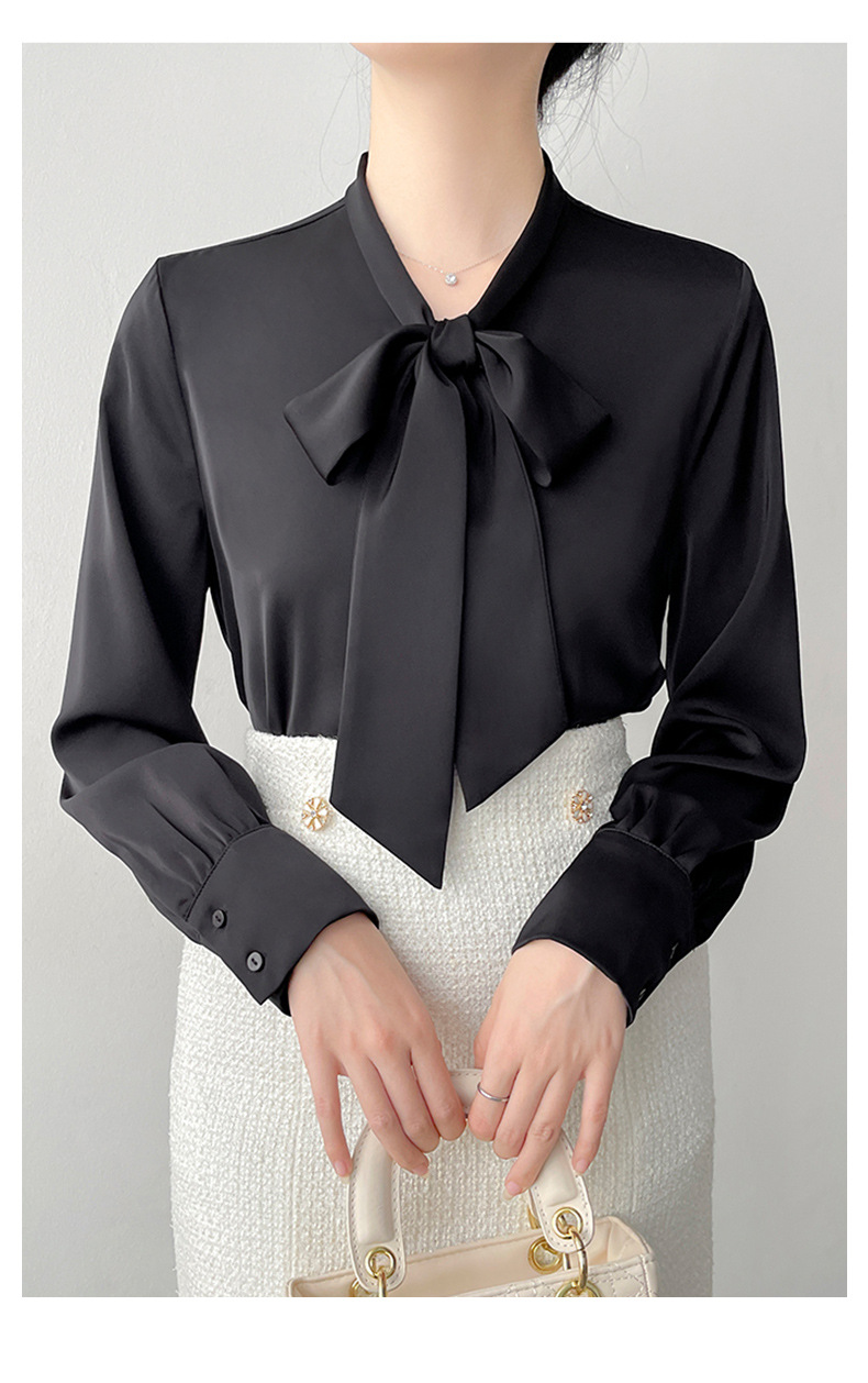 2026년 초봄 신상 고급 새틴 직장인 통근용 리본 스트랩 셔츠 여성스럽고 슬림한 탑스토어 가기