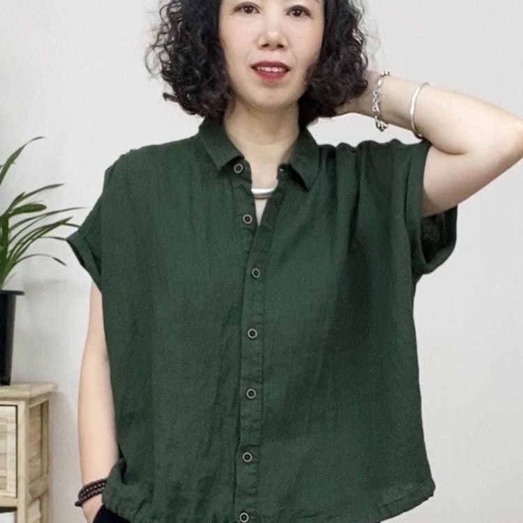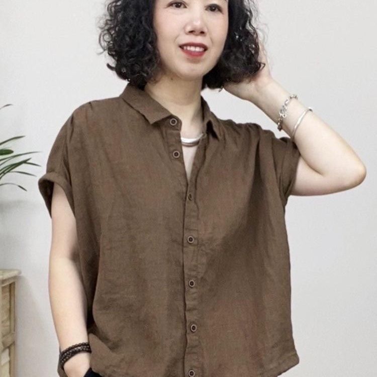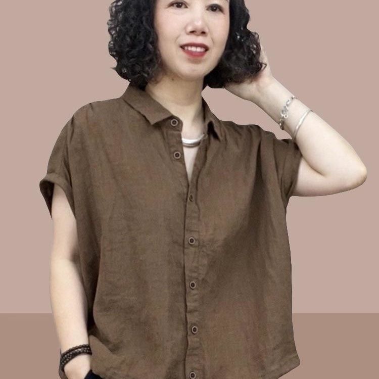 리넨 셔츠 여성용 반팔 서양식 플러스 사이즈 어머니의 느슨한 캐주얼 코튼 및 린넨 탑