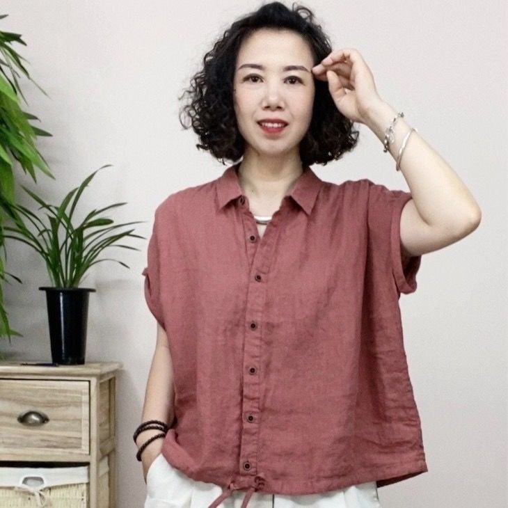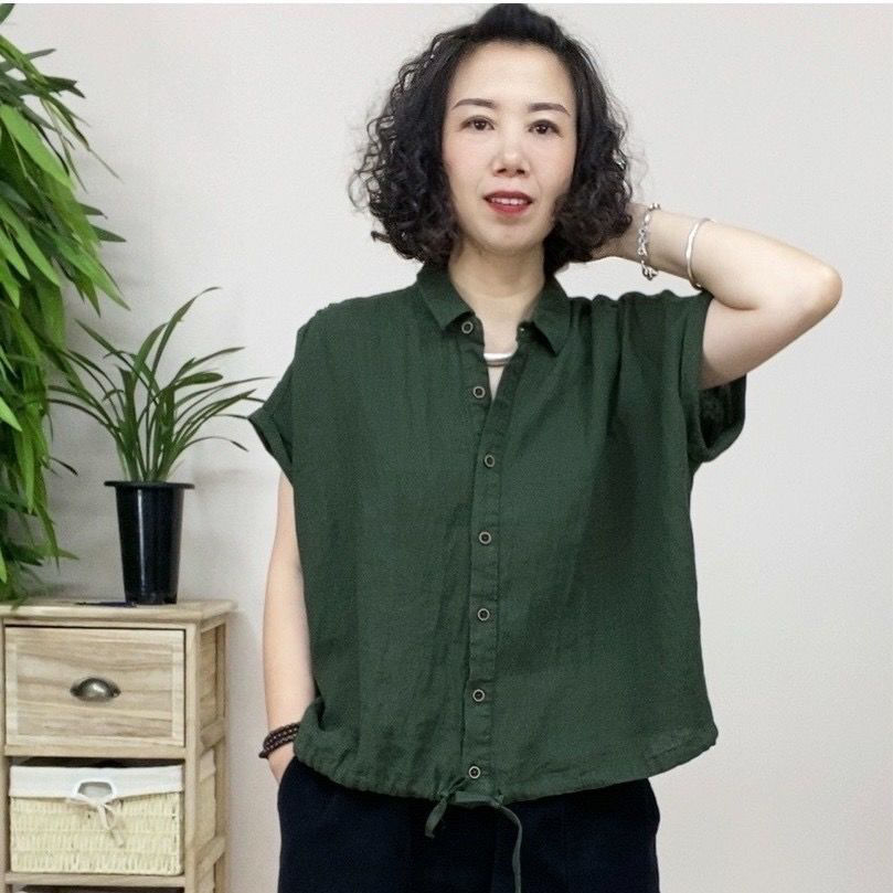 리넨 셔츠 여성용 반팔 서양식 플러스 사이즈 어머니의 느슨한 캐주얼 코튼 및 린넨 탑스토어 가기
