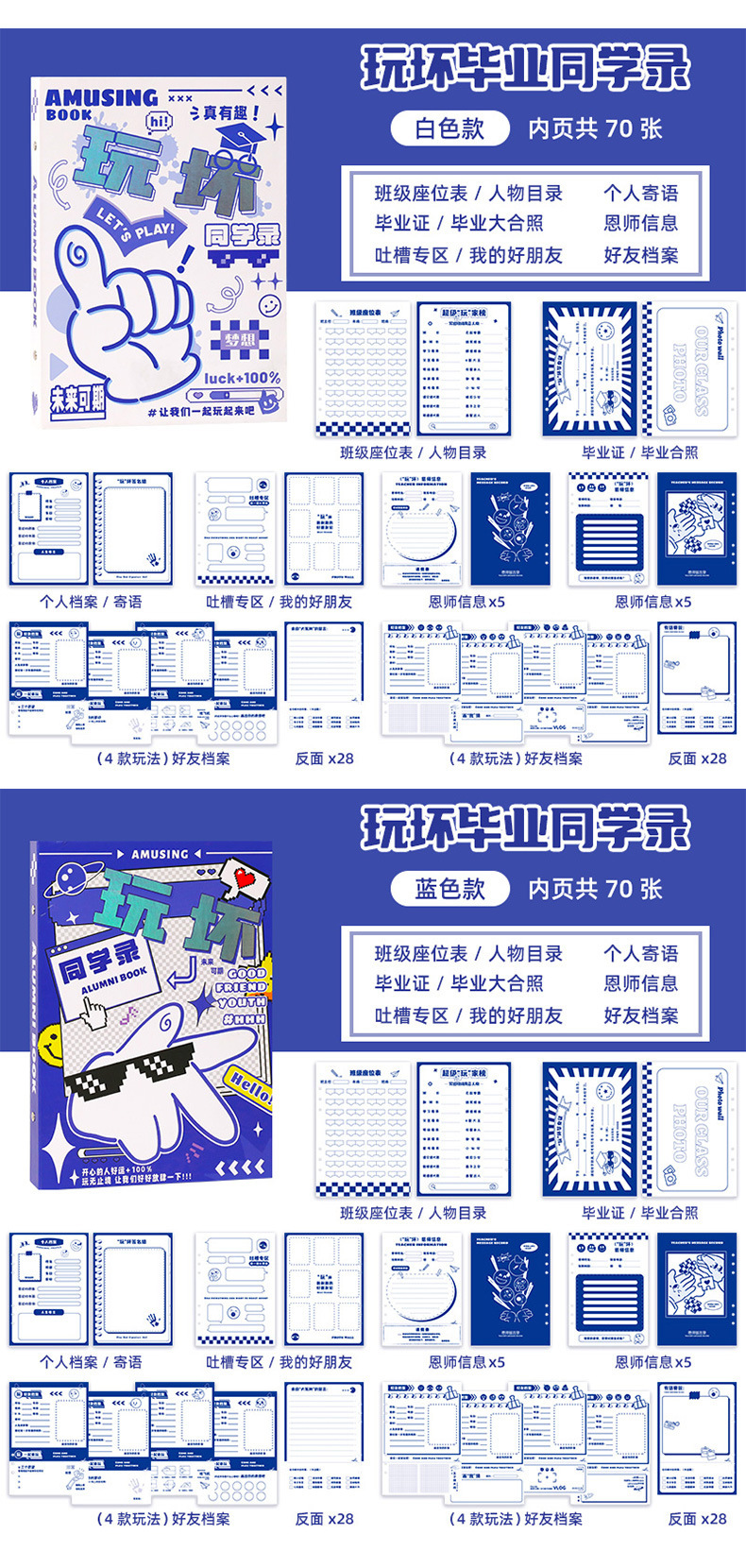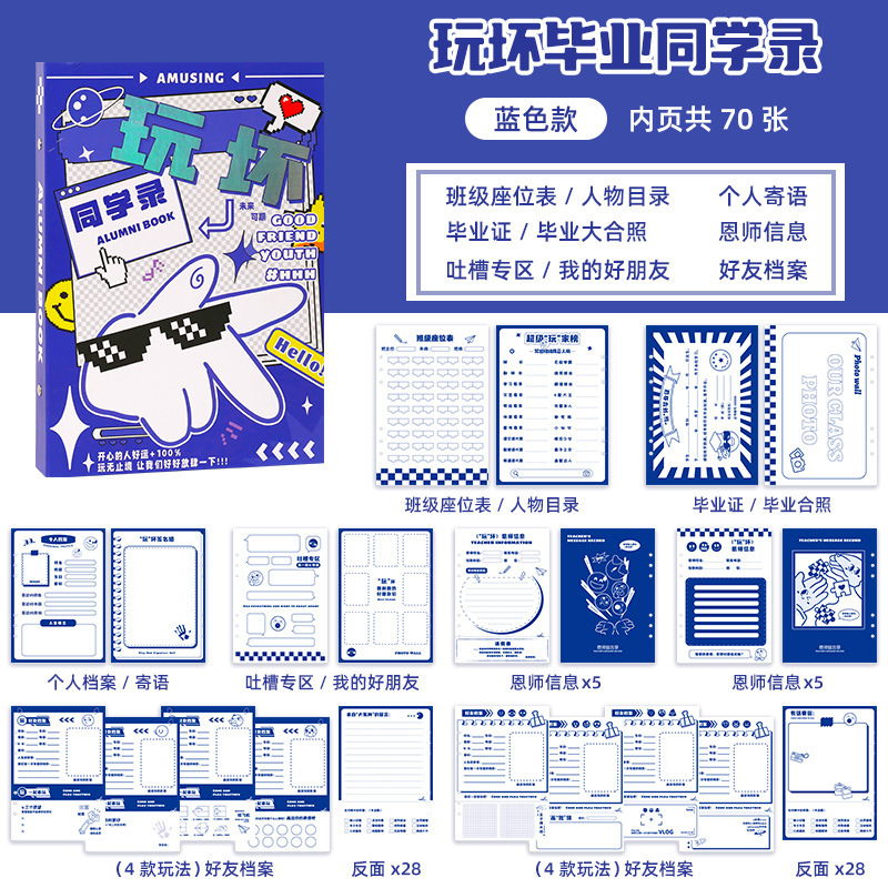 플레이 나쁜 동급생 기록 높은 Yan 가치 졸업 기념 느슨한 잎 책 창조적 인 감압 재미있는 어린이 성장 기념 책 도매