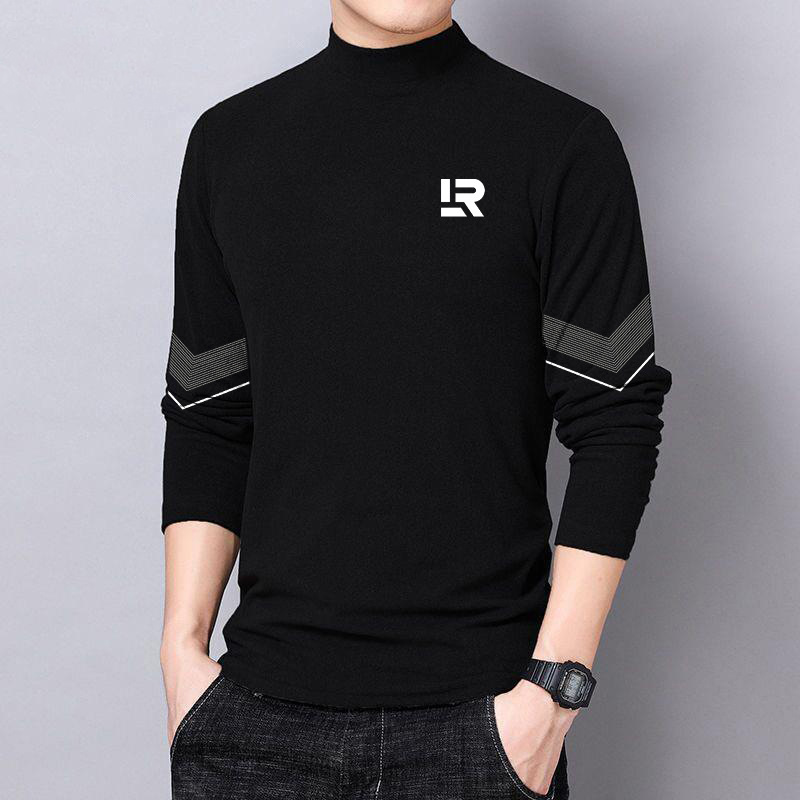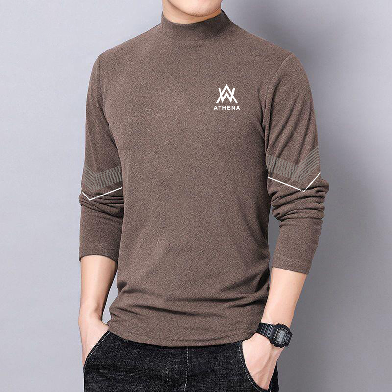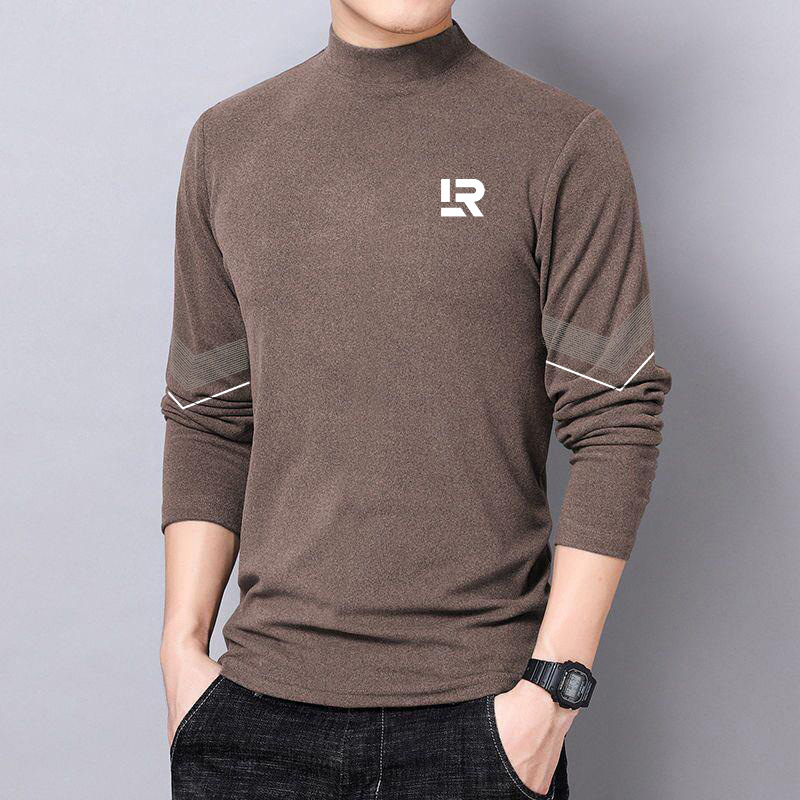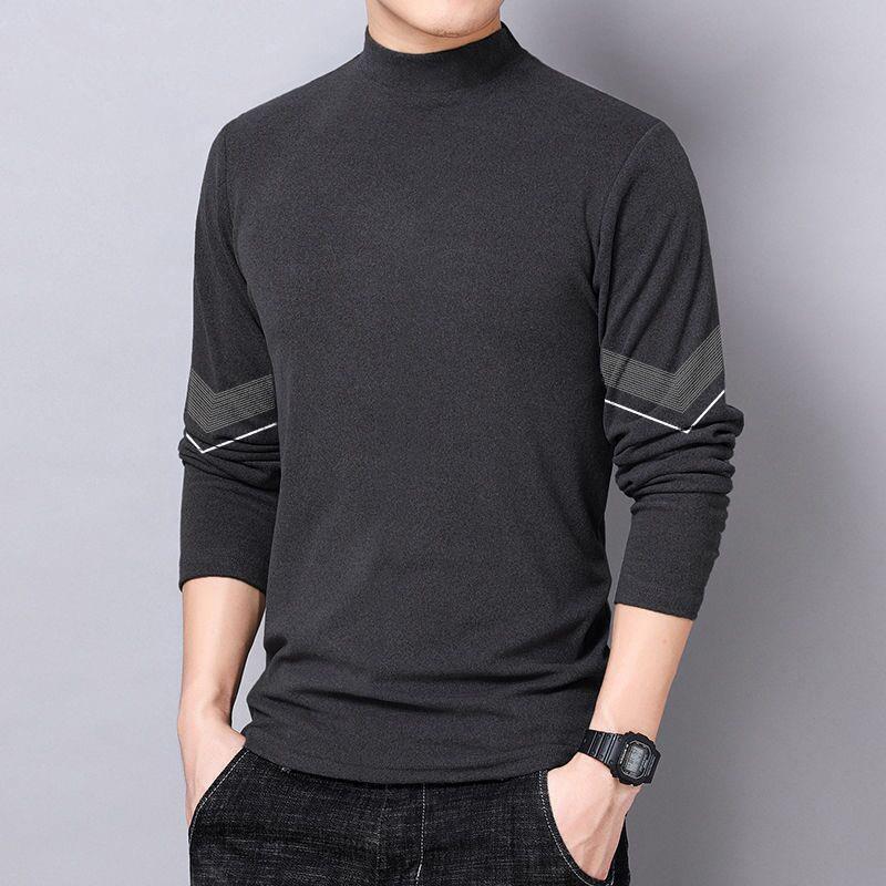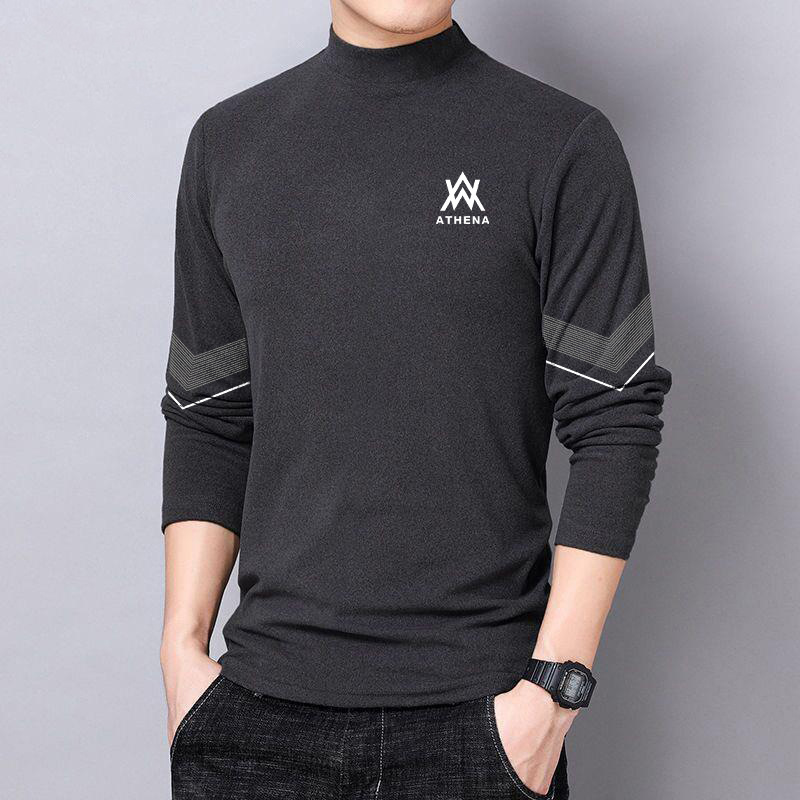반 높이 칼라 양면 양털베이스 셔츠 남성용 긴팔 티셔츠 탑 옷 대학생 유행 브랜드 남성 내가을옷