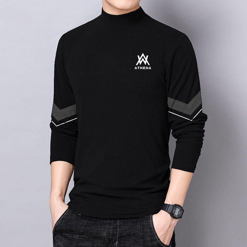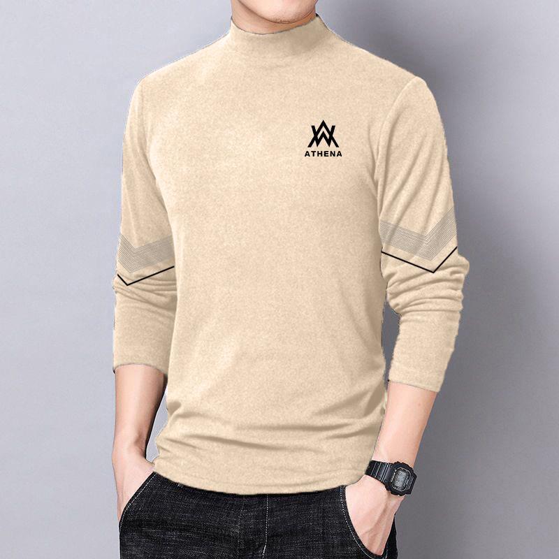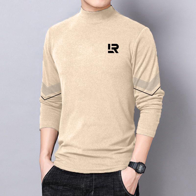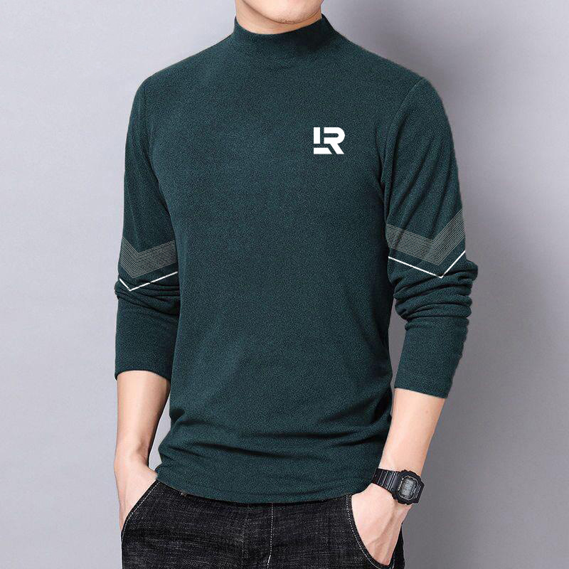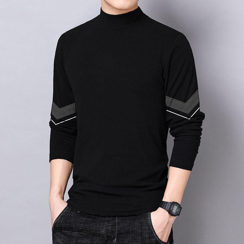 반 높이 칼라 양면 양털베이스 셔츠 남성용 긴팔 티셔츠 탑 옷 대학생 유행 브랜드 남성 내가을옷