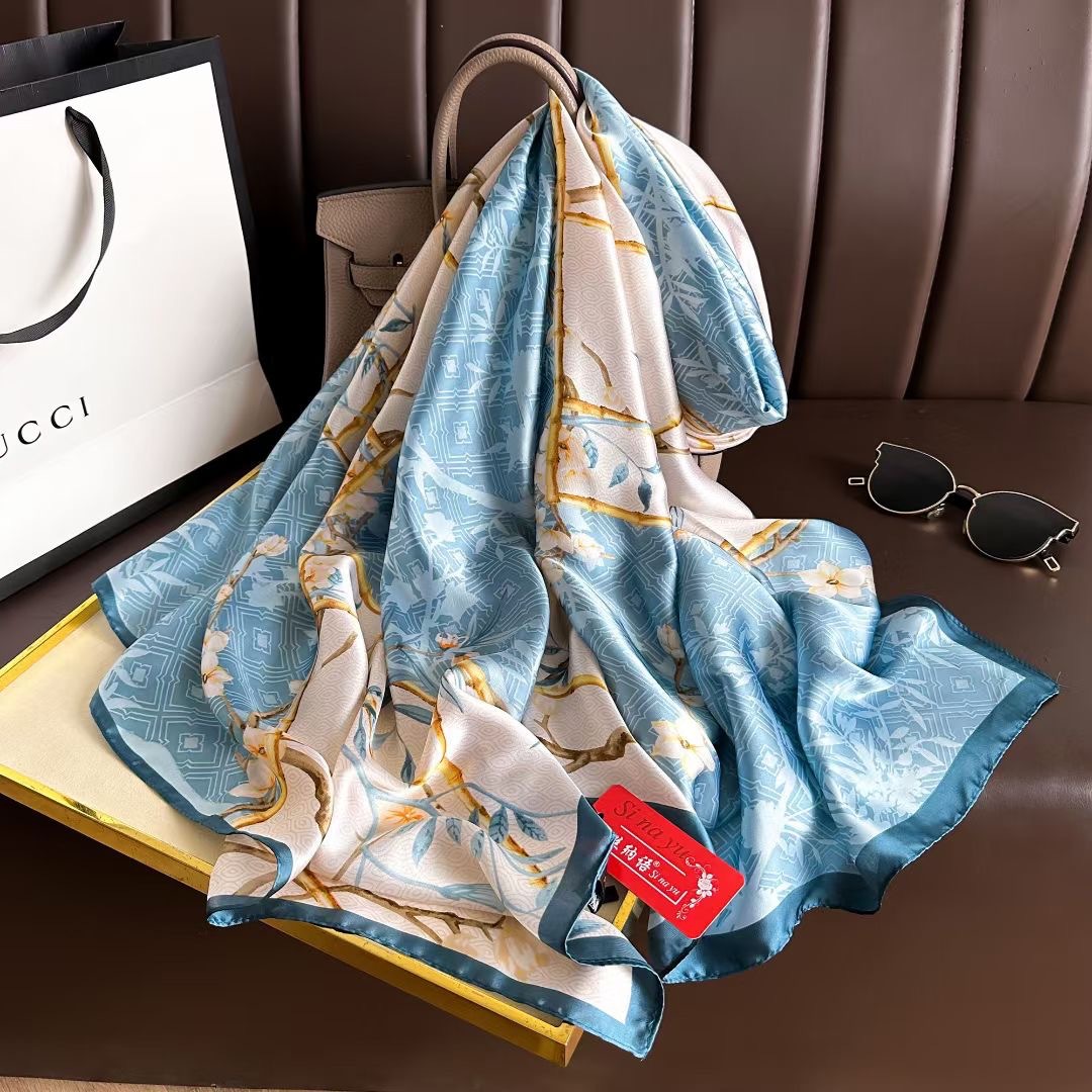 여성용 실크 스카프, 실크 멀버리 실크 여름용 얇은 숄, 2026년 신상 엄마 헤드스카프, 어르신 선물용 스카프스토어 가기