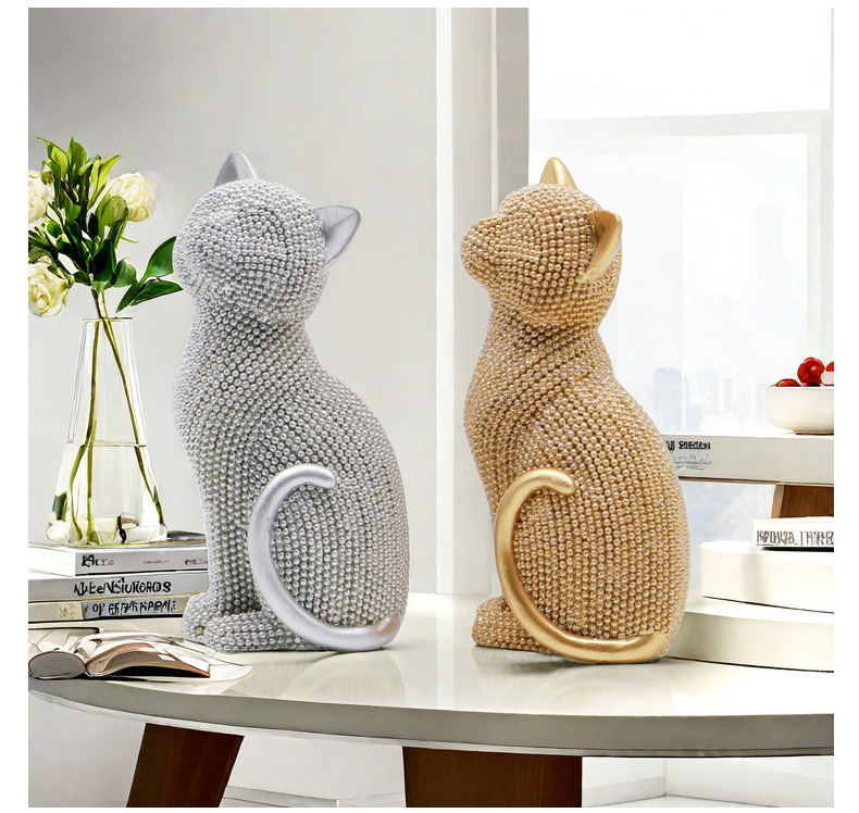 현대 빛 럭셔리 스타일 구슬 고양이 장식품 거실 홈 입구 장식 창조적 인 수지 공예 선물스토어 가기