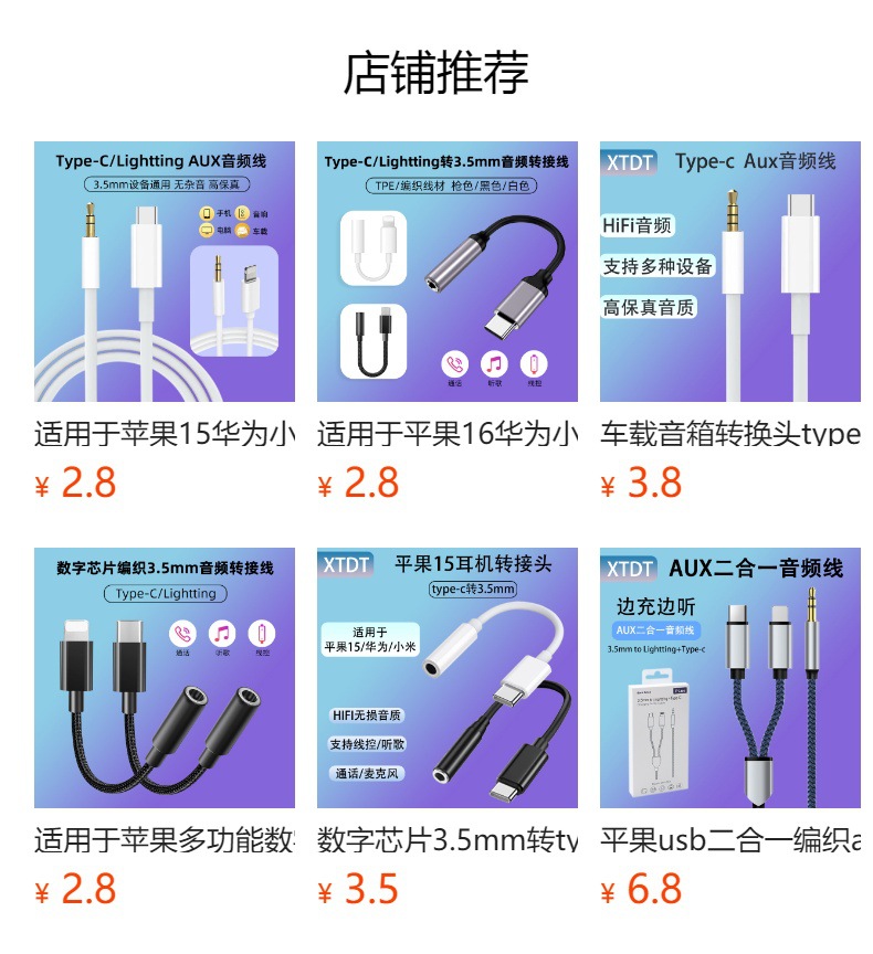 Typec转3.5车载aux编织音频连接线 适用于华为苹果手机数字音频线