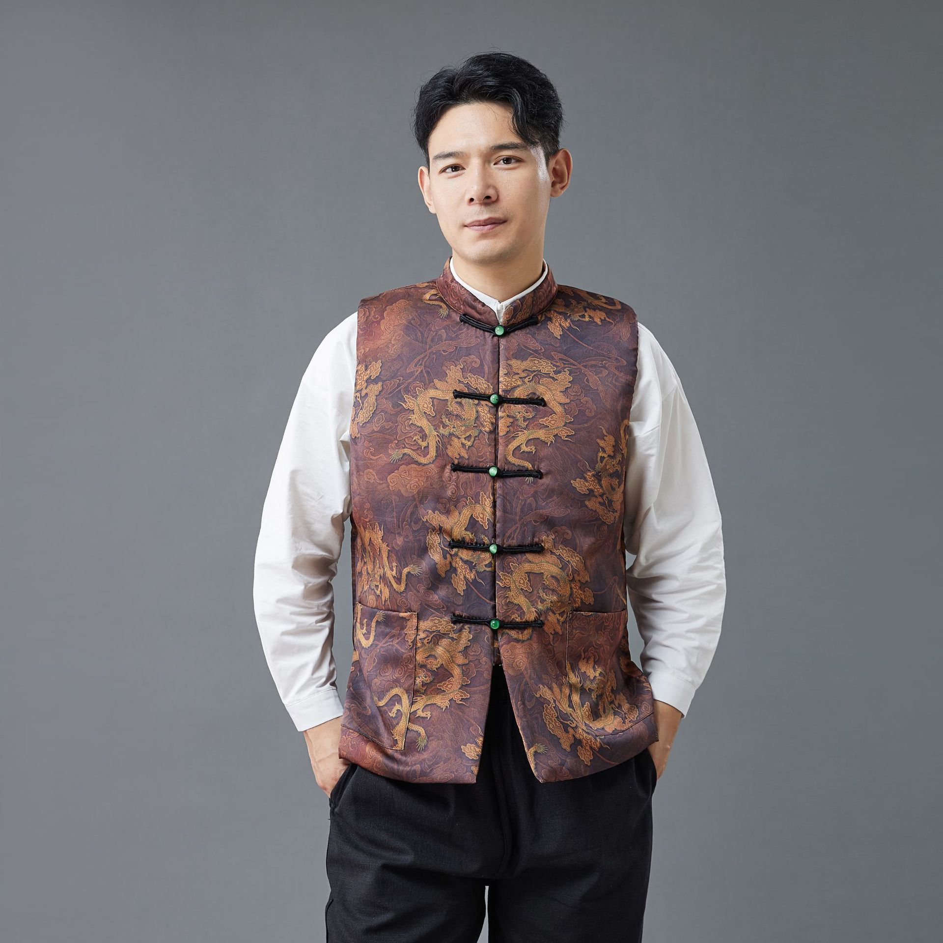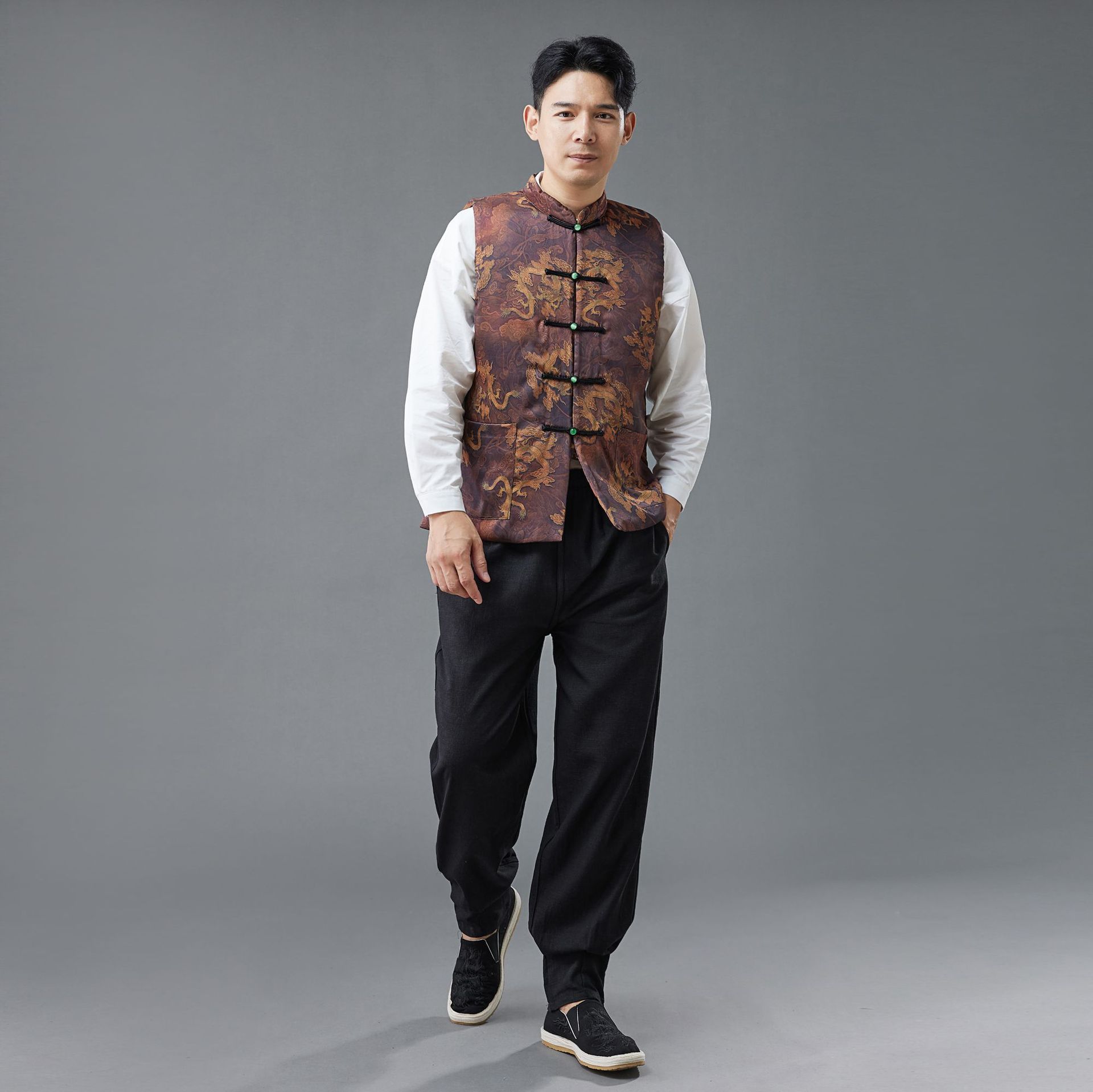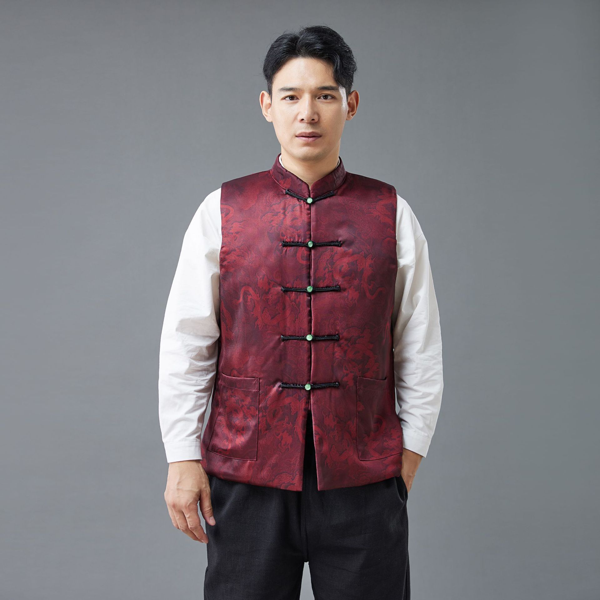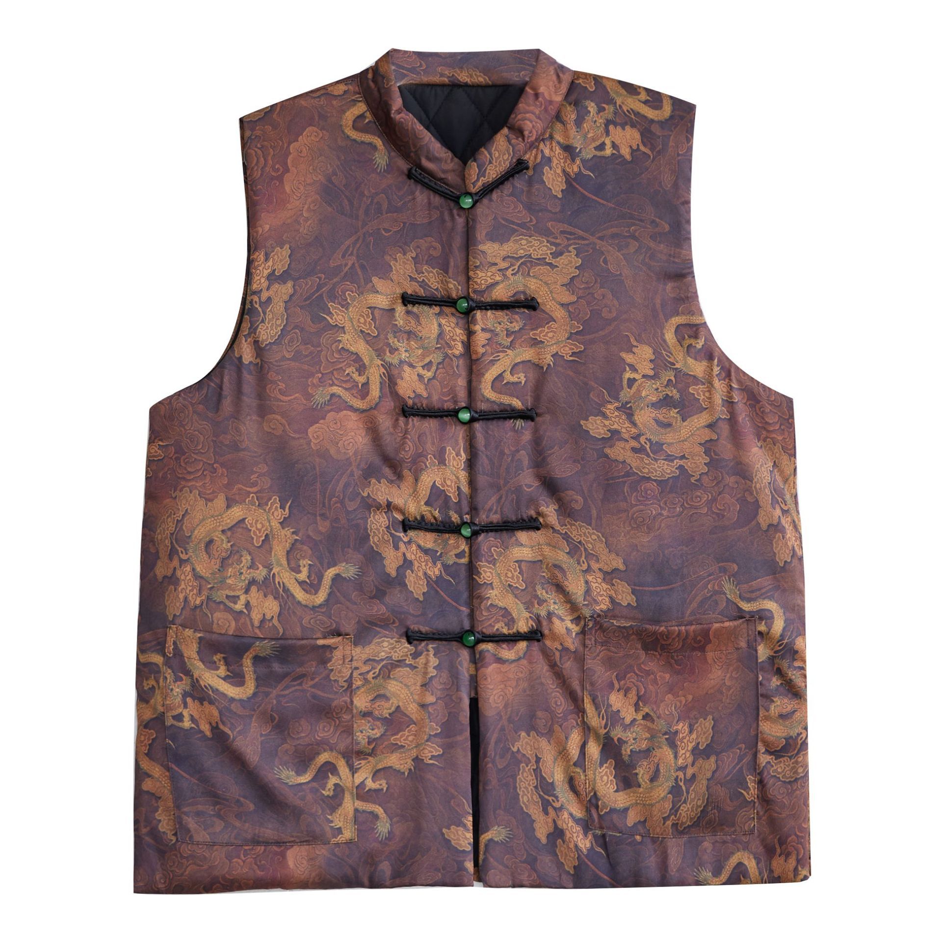 材质:丝缎印花 垂顺柔软 不易皱  手工盘扣加玉扣点缀夹棉款马甲,厚薄适中