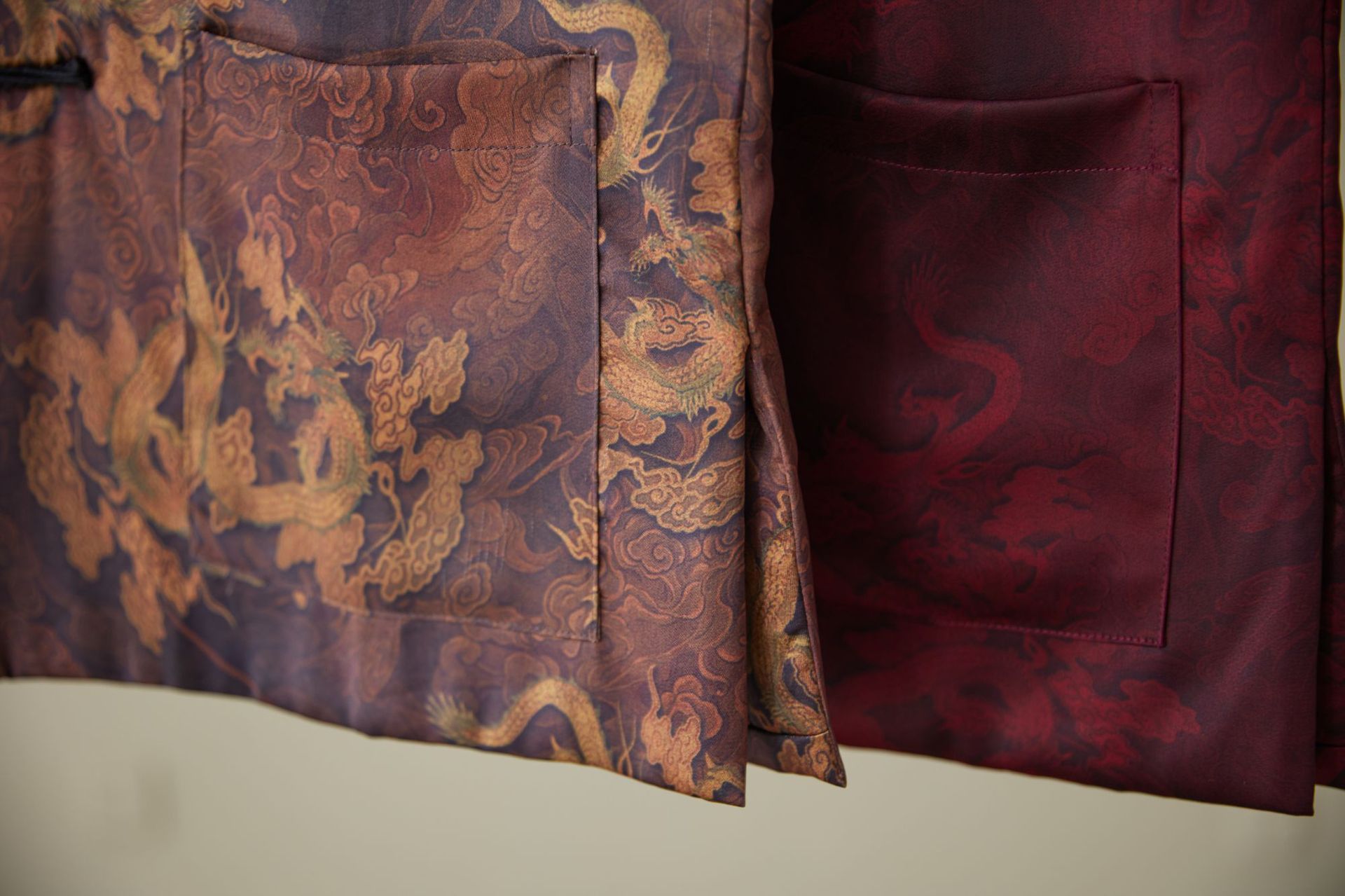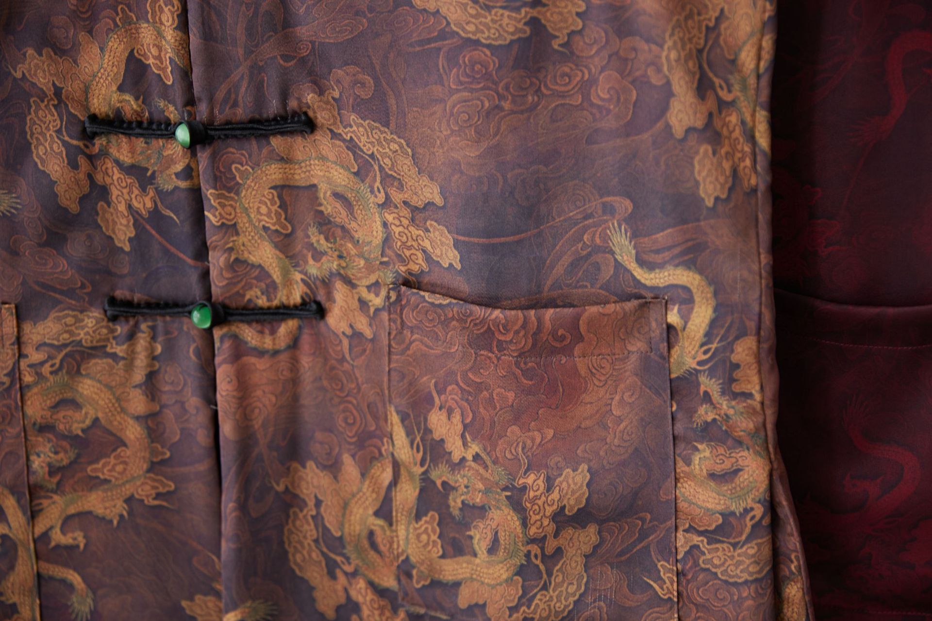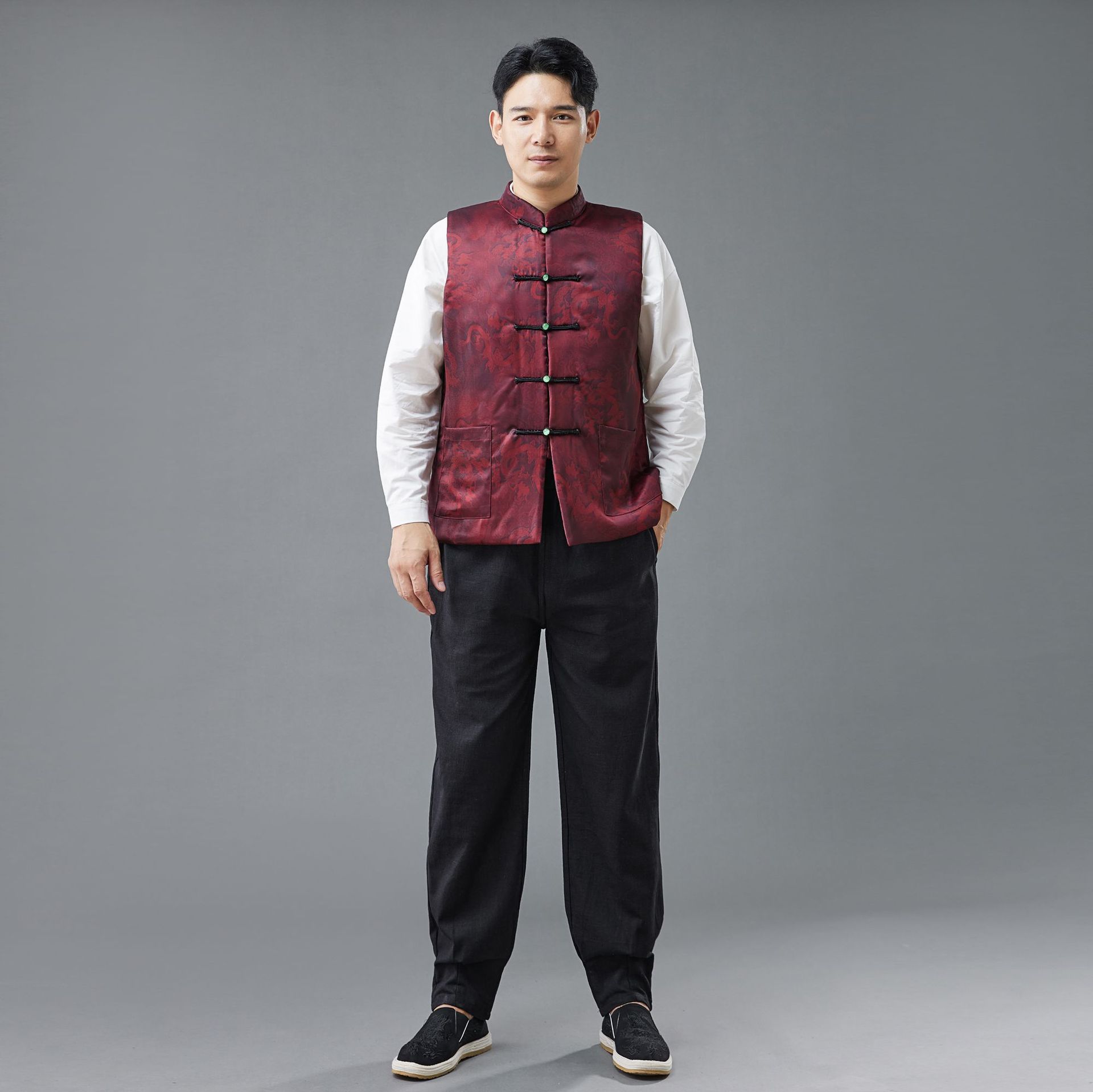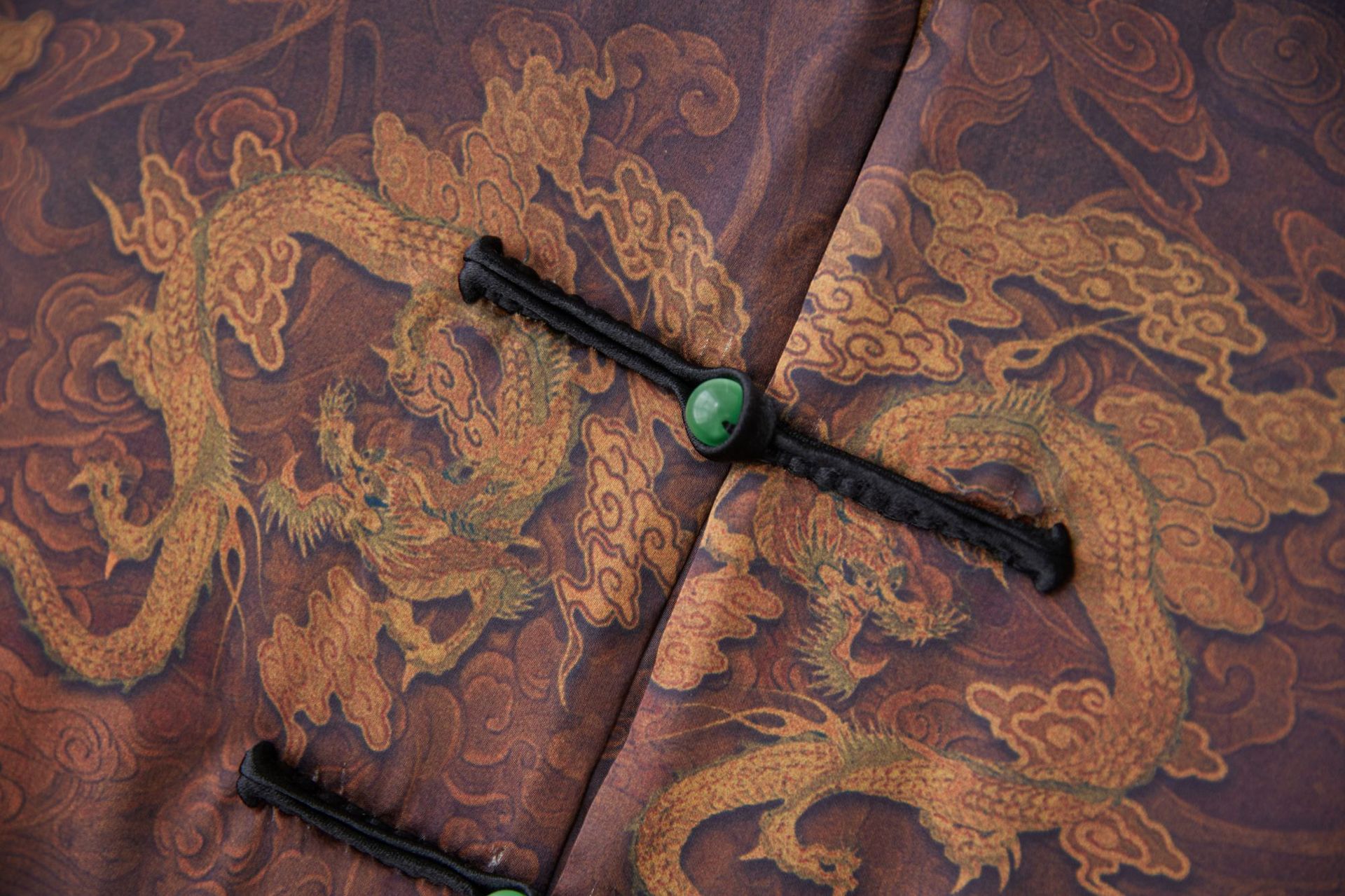 材质:丝缎印花 垂顺柔软 不易皱  手工盘扣加玉扣点缀夹棉款马甲,厚薄适中