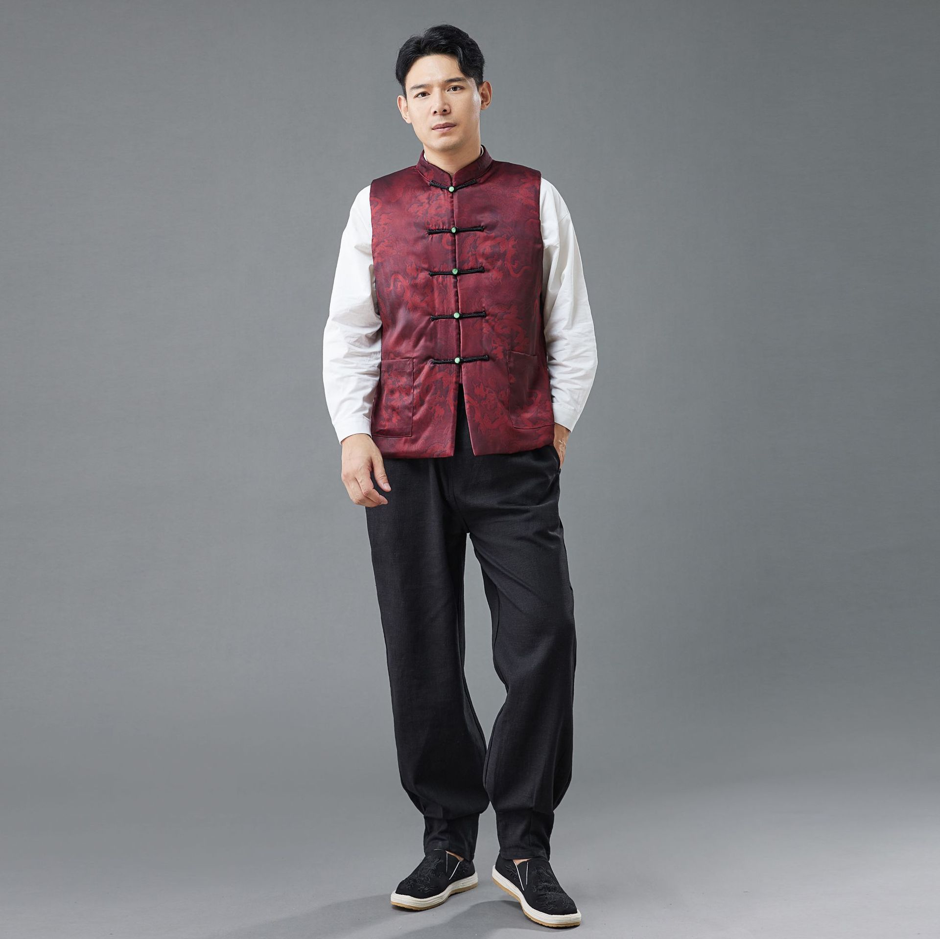 마판 천 옷 Guofeng 남성용 담요 코튼 조끼 1 라인 버클 및 버클 탕 세트 면화 패딩 코트가있는 남성용 담요