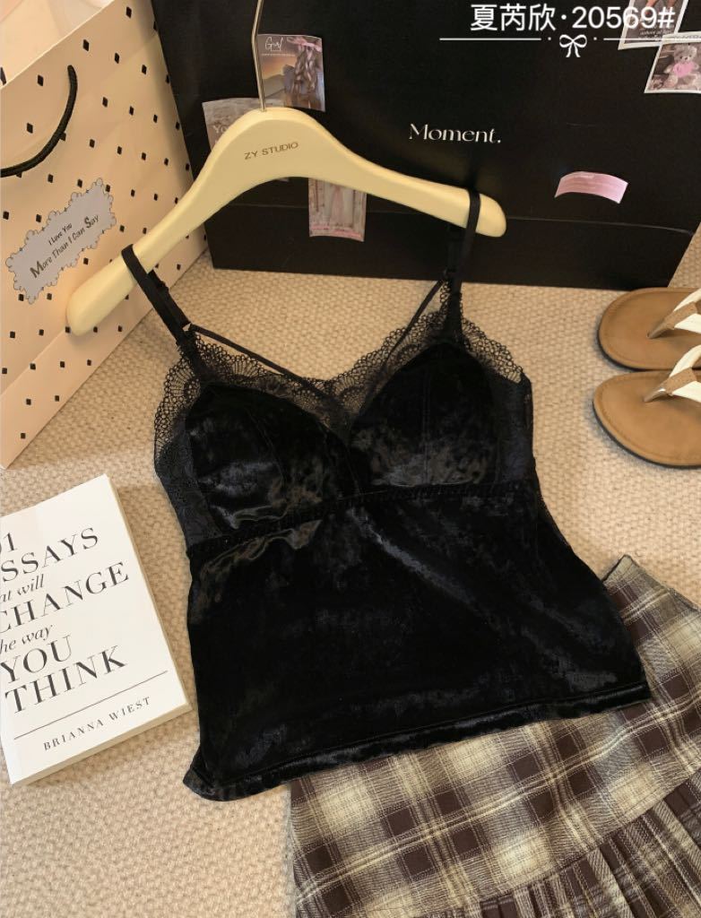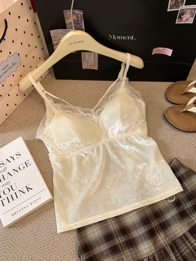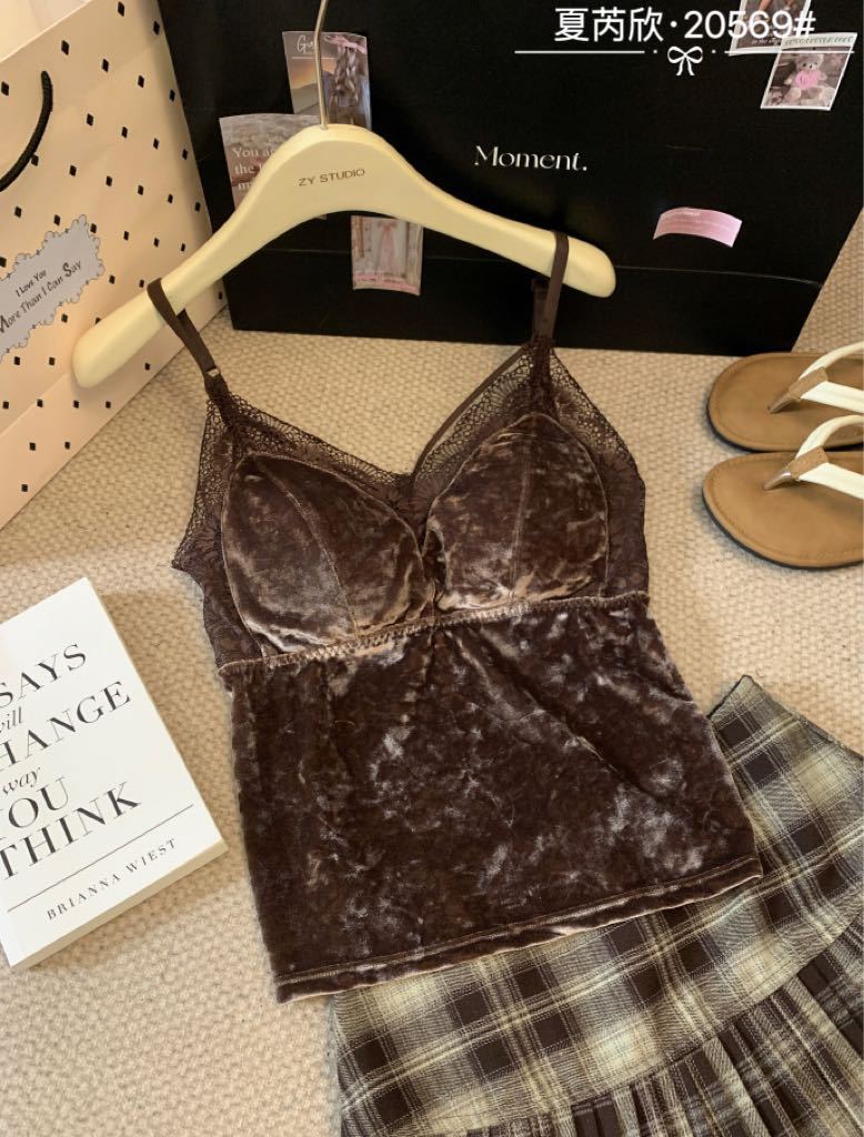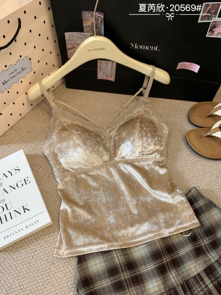 Velvet Camisole 여성의 봄과 여름 새로운 섹시한 내부 착용 외부 착용 원피스 슬림베이스 뷰티 백 (가슴 패드 포함)스토어 가기