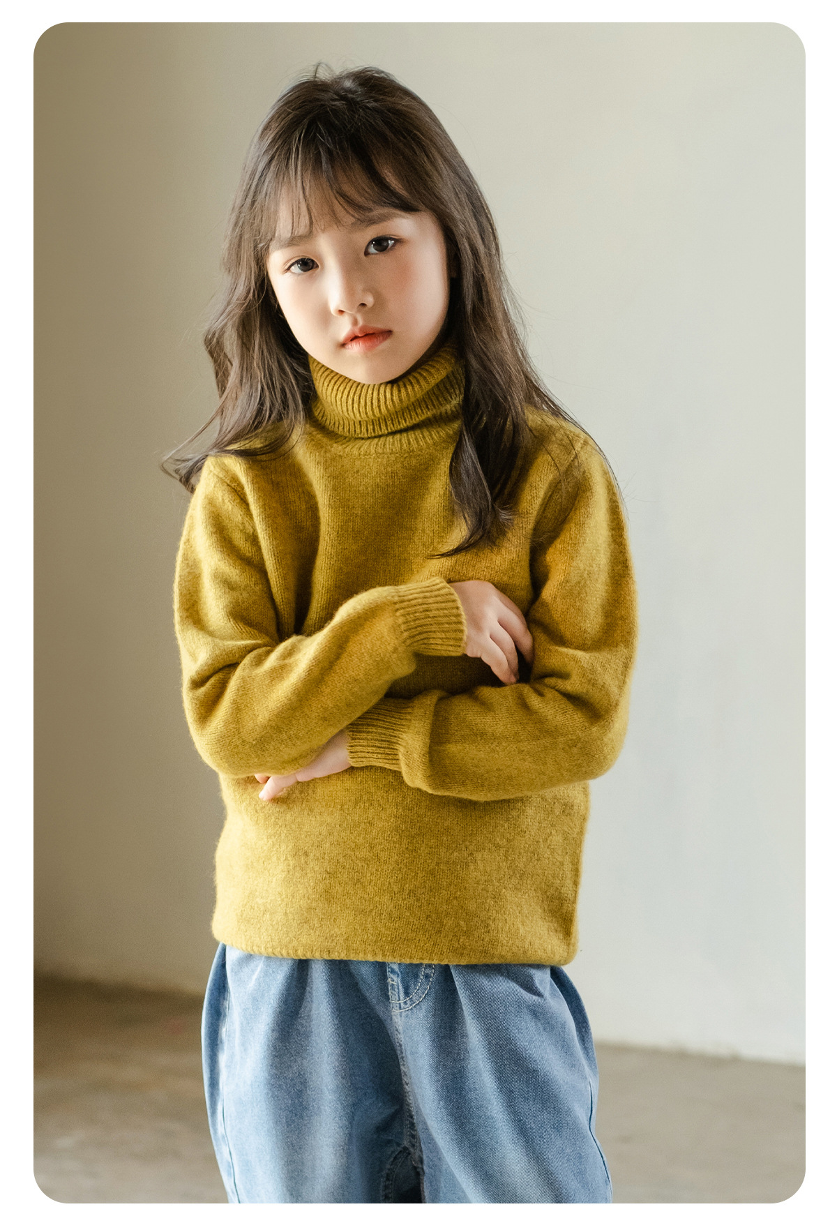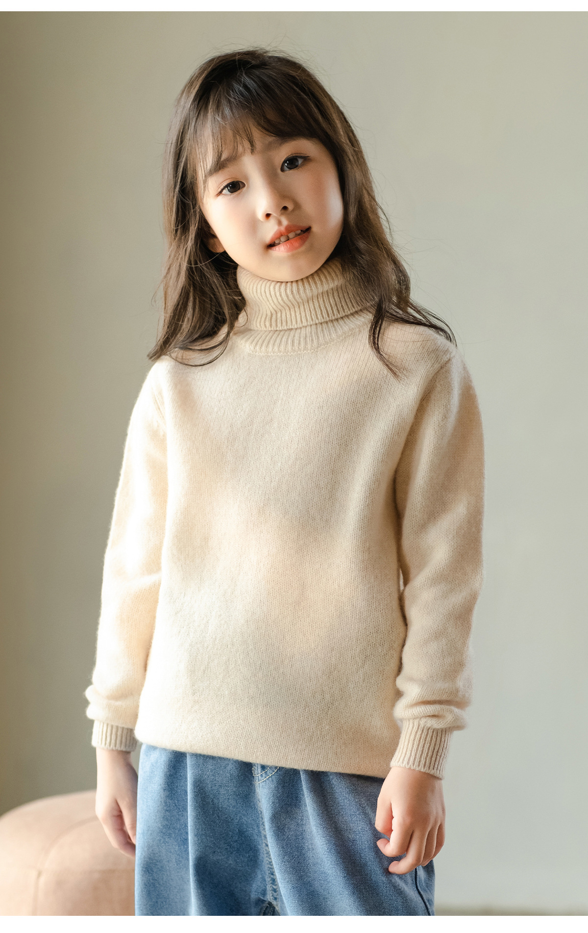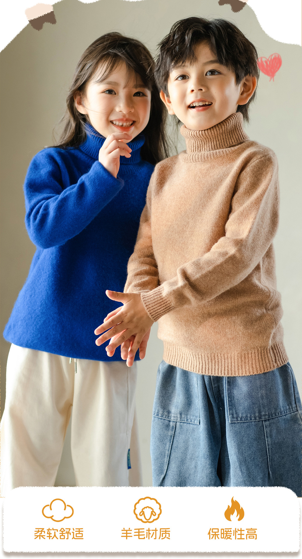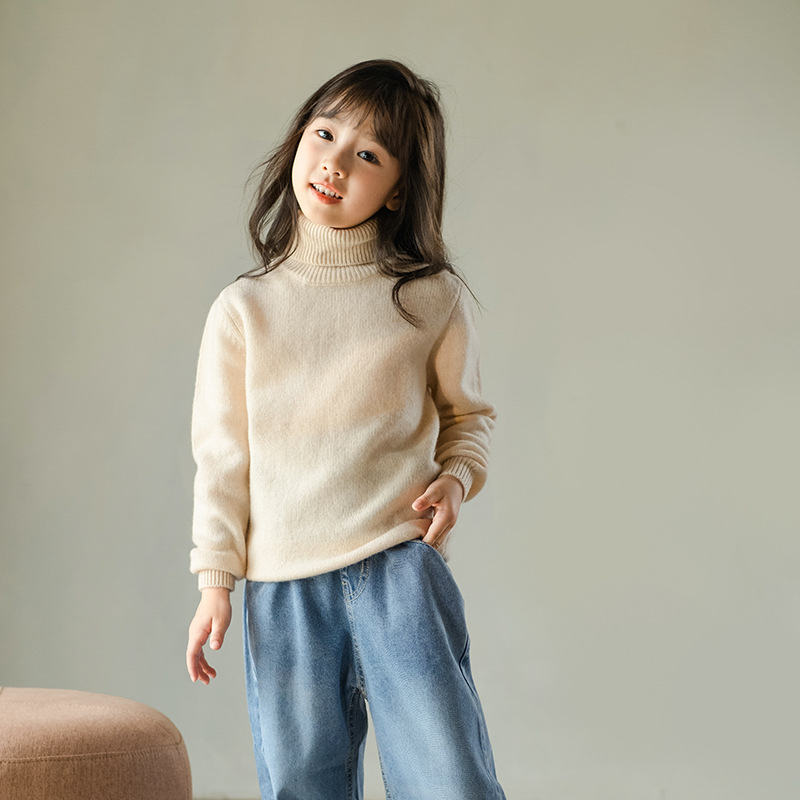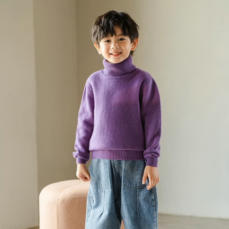 가을 겨울 이중 레이어 아동용 순모 스웨터, 하이 칼라 니트 스웨터, 심플한 스웨터, 남녀 아동복, 부드러운 상의스토어 가기