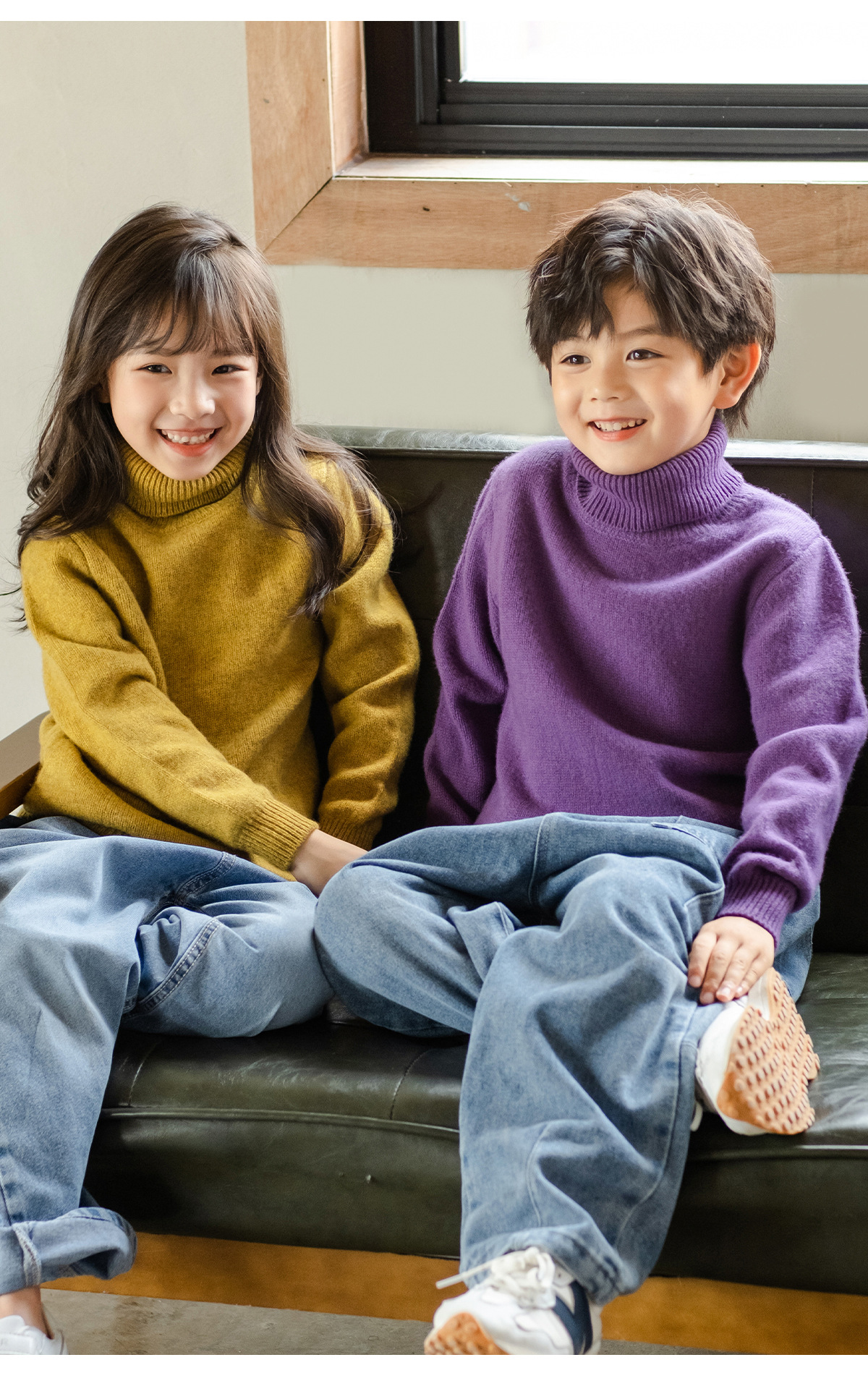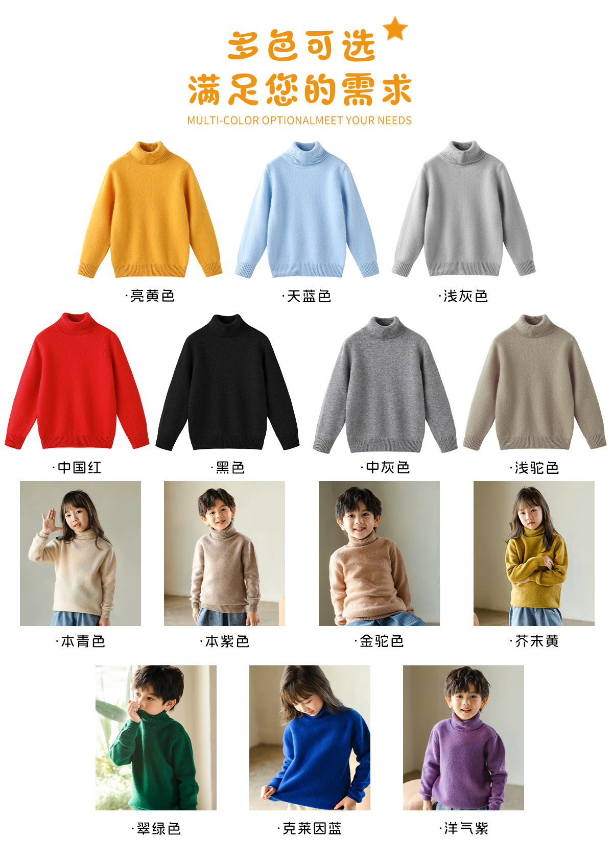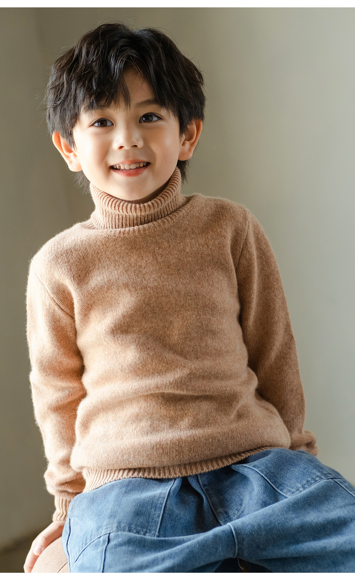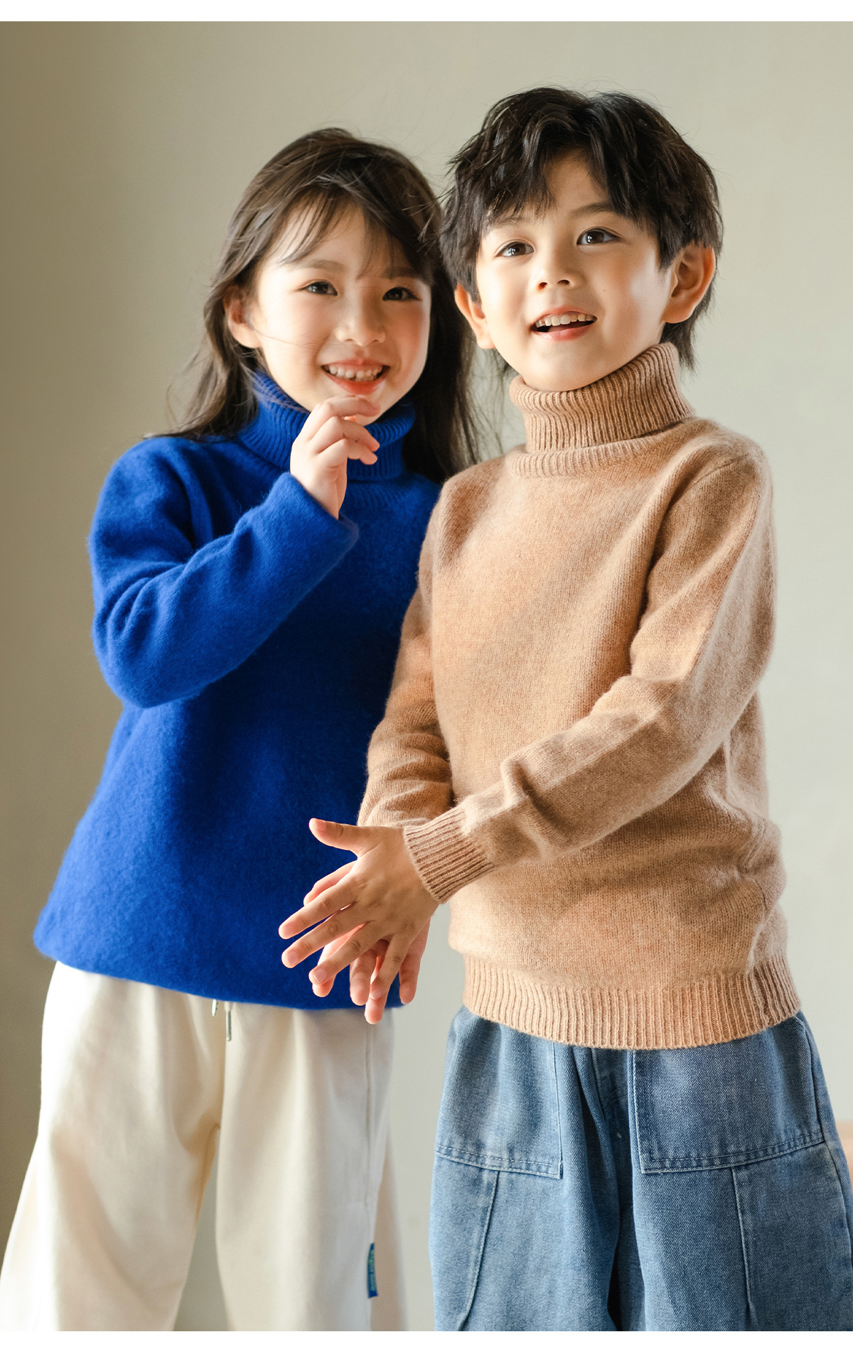 가을 겨울 이중 레이어 아동용 순모 스웨터, 하이 칼라 니트 스웨터, 심플한 스웨터, 남녀 아동복, 부드러운 상의스토어 가기