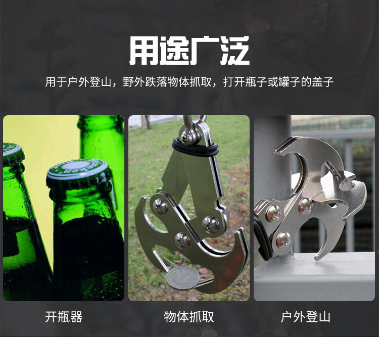 야외용 스테인리스 등산용 후크 중력 후크 플라이 타이거 클로 다기능 안전 생존 접이식 등반 후크