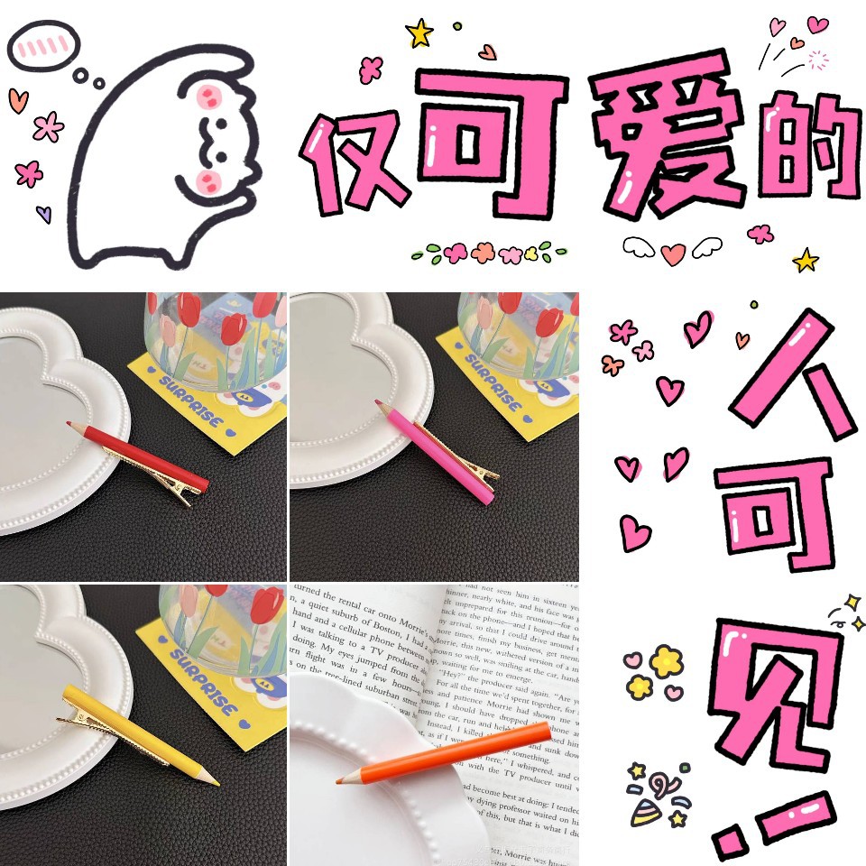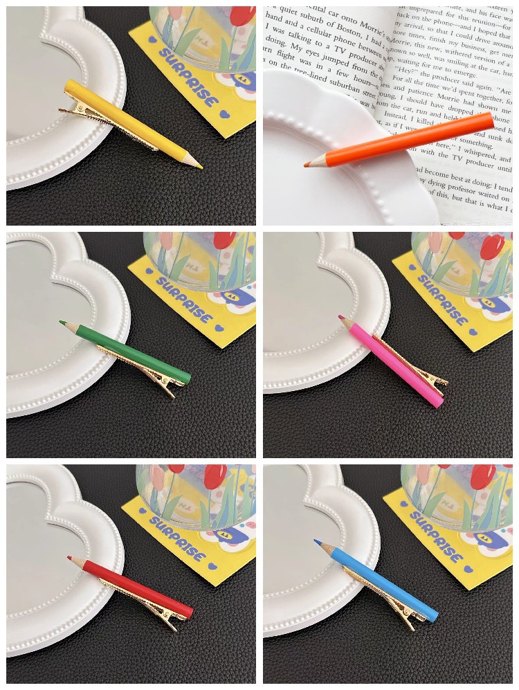 귀여운 재미 안티 리얼 연필 헤어핀 헤어 액세서리 사이드 뱅 헤어핀 뱅이 깨진 헤어 클립 헤드웨어 여성용 클립