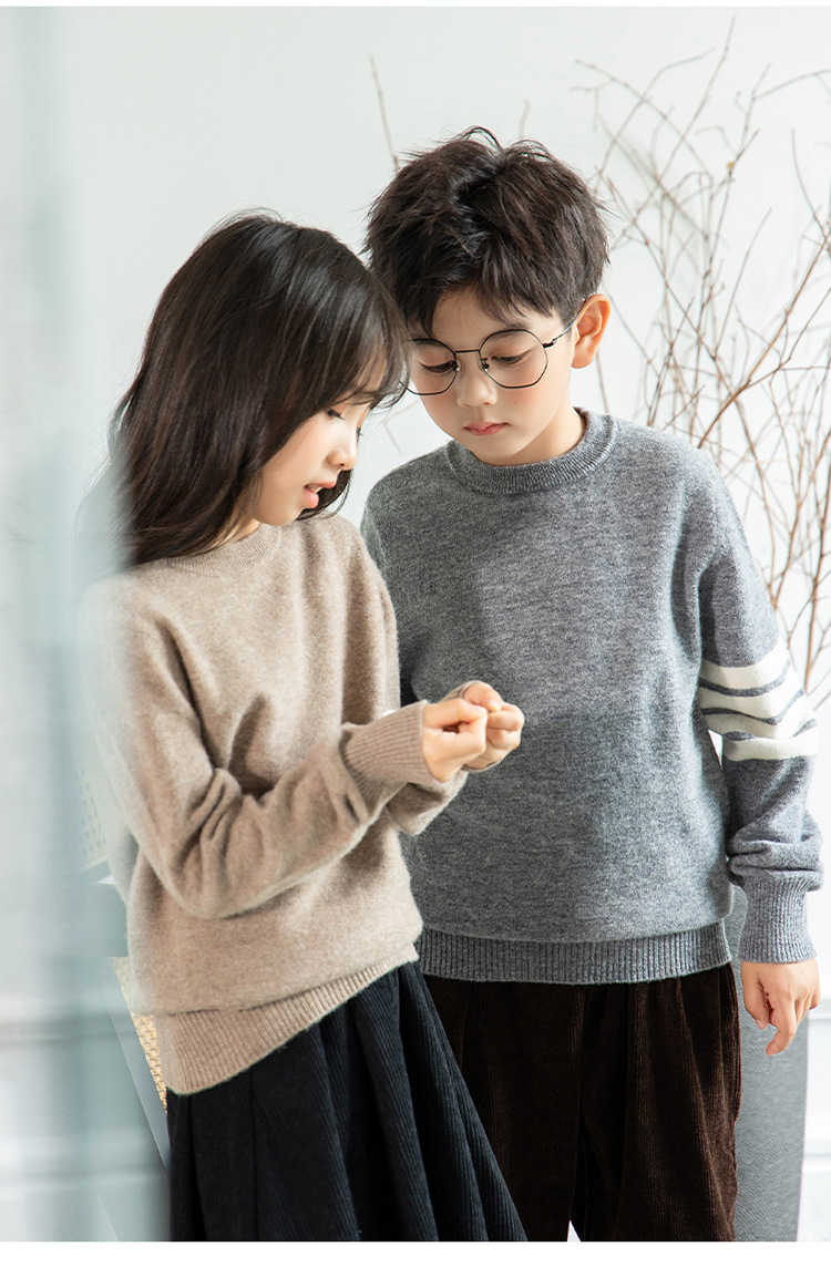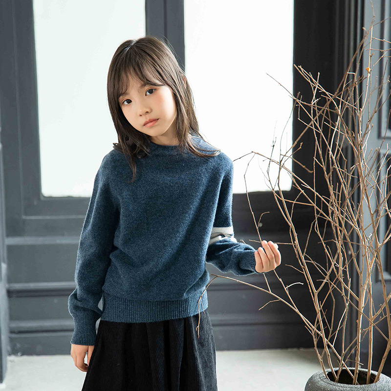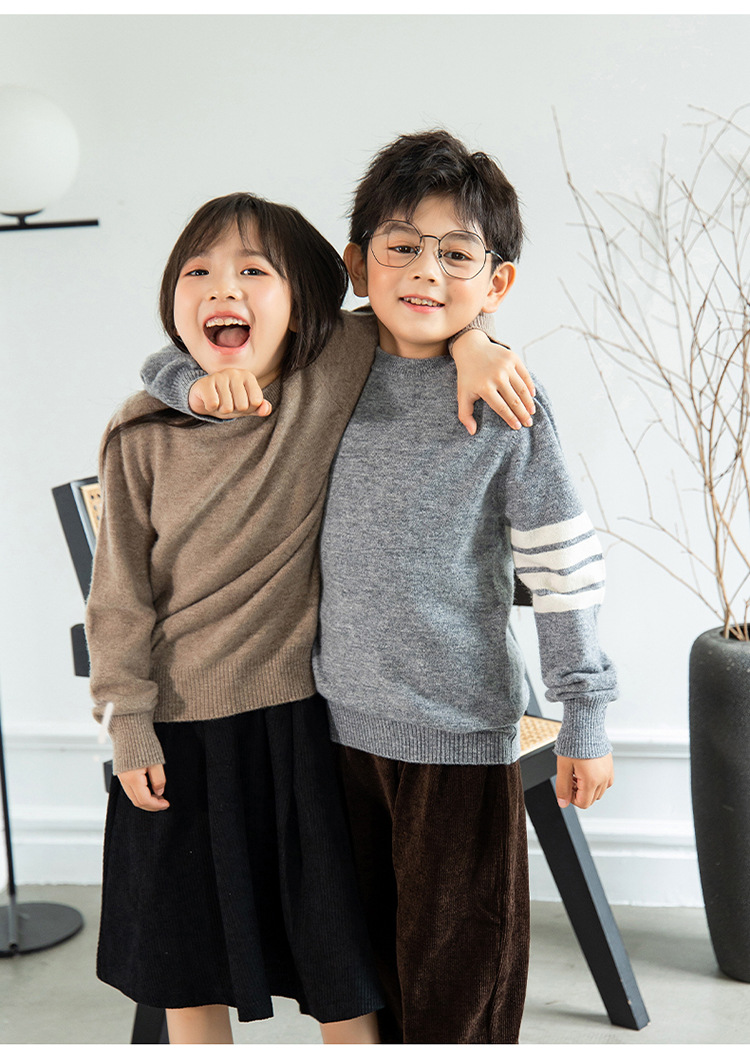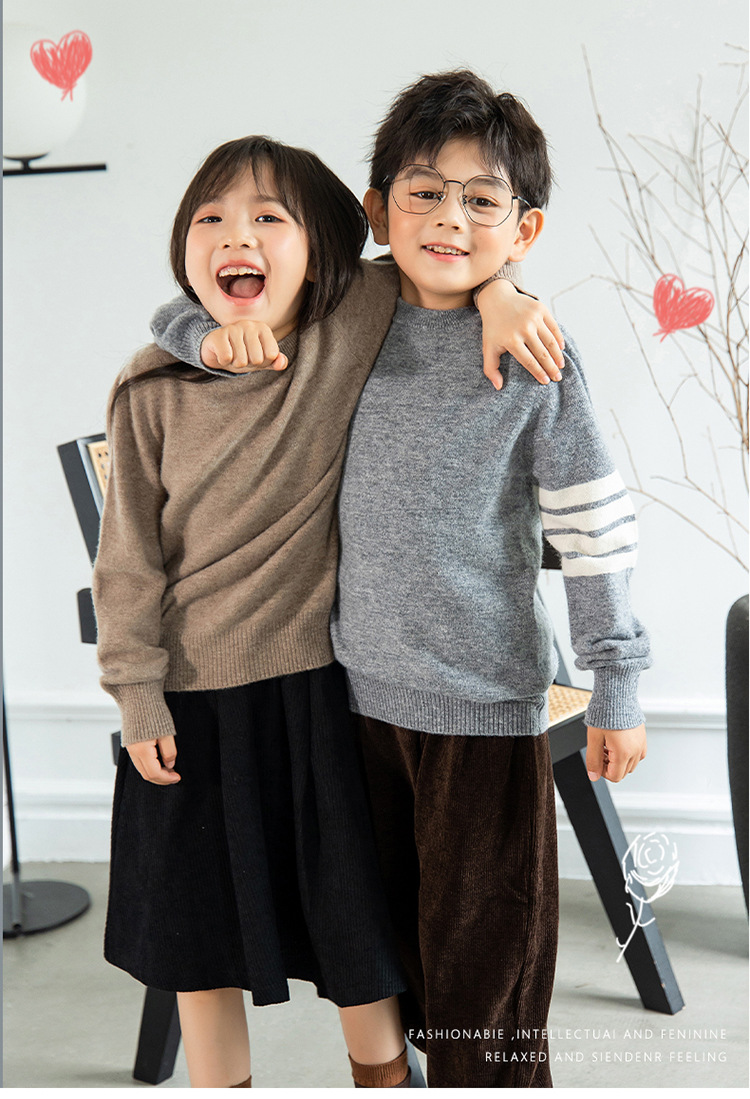 가을과 겨울 새로운 어린이 100 순수 양모 니트 스웨터 소년 소녀를위한 풀 오버 컬러 매칭베이스 셔츠 베이비 루즈 스웨터