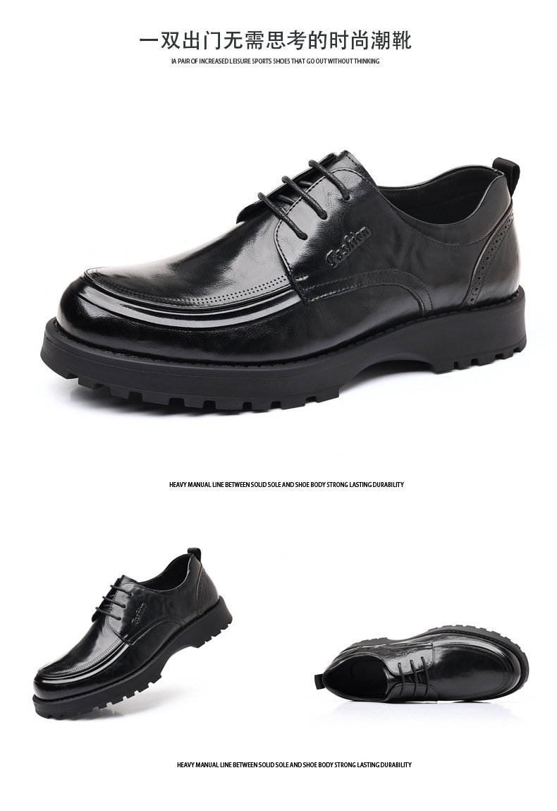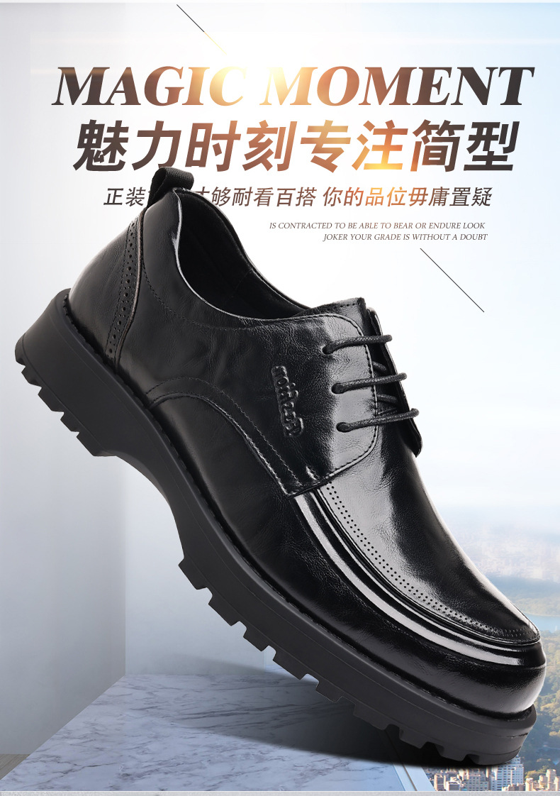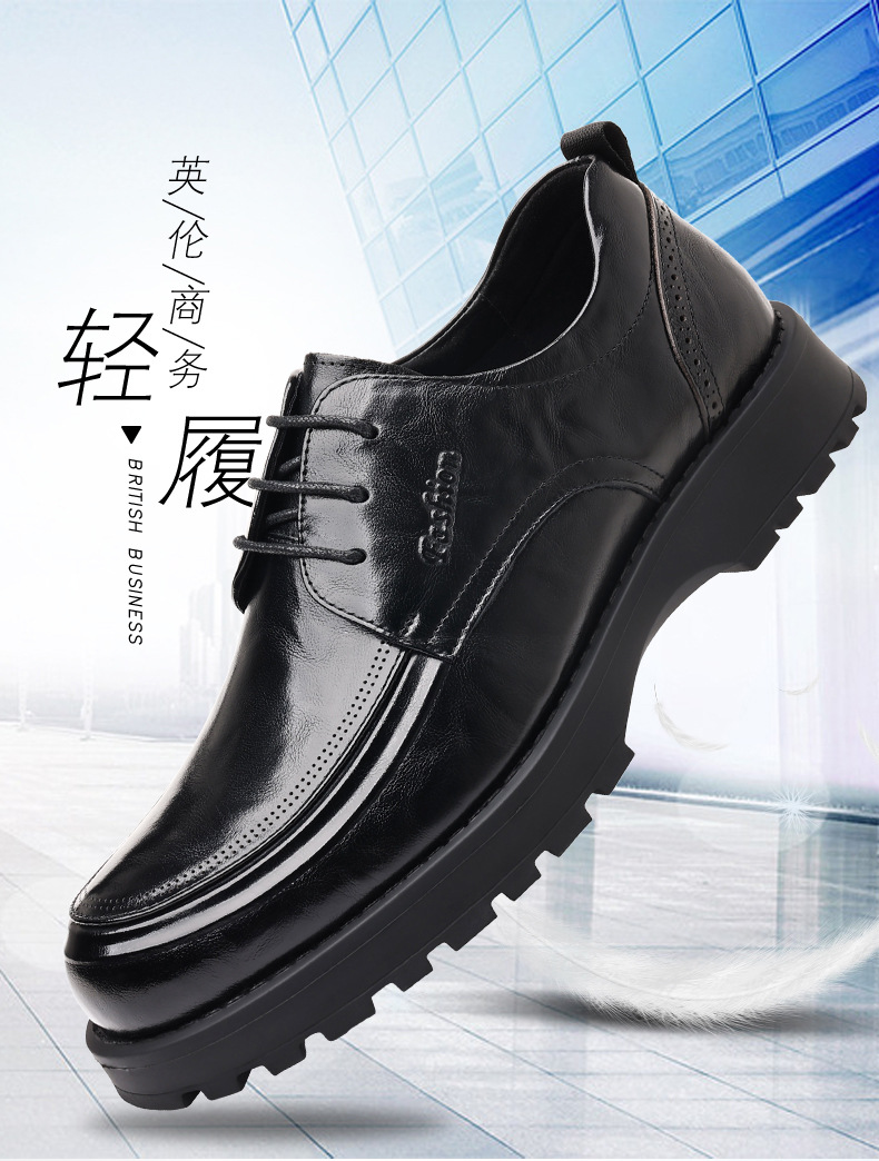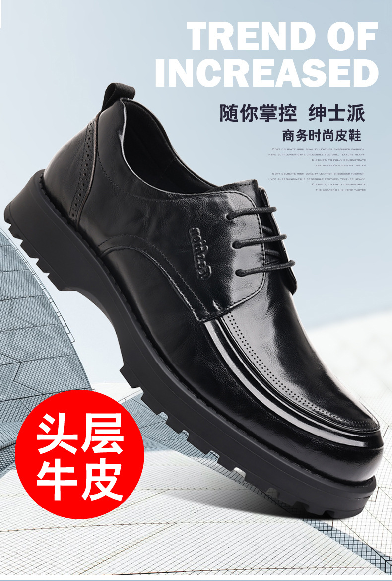 탑 레이어 Cowhide 새로운 남성 비즈니스 캐주얼 가죽 신발 경량 두꺼운 단독 높이 증가 남성 신발 유행 정품 가죽 싱글 신발 남성용스토어 가기